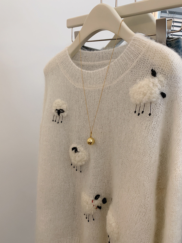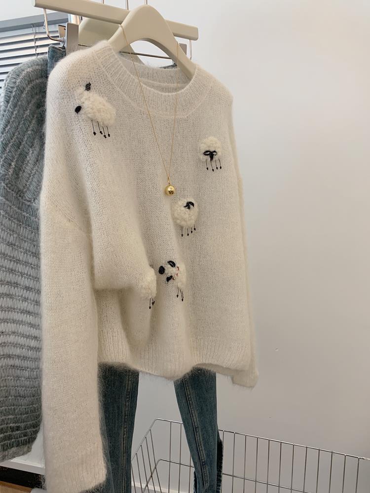 풀오버 느슨한 Mohair Outer 스웨터 가을 및 겨울 게으른 스타일 하이 엔드 스웨터 탑 여성 디자인 센스 틈새스토어 가기