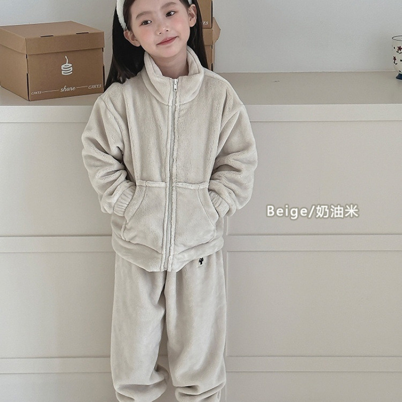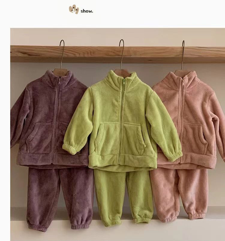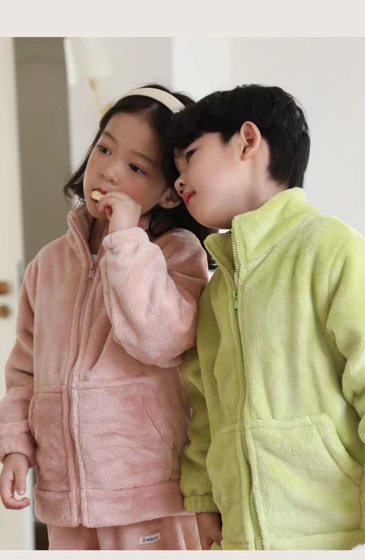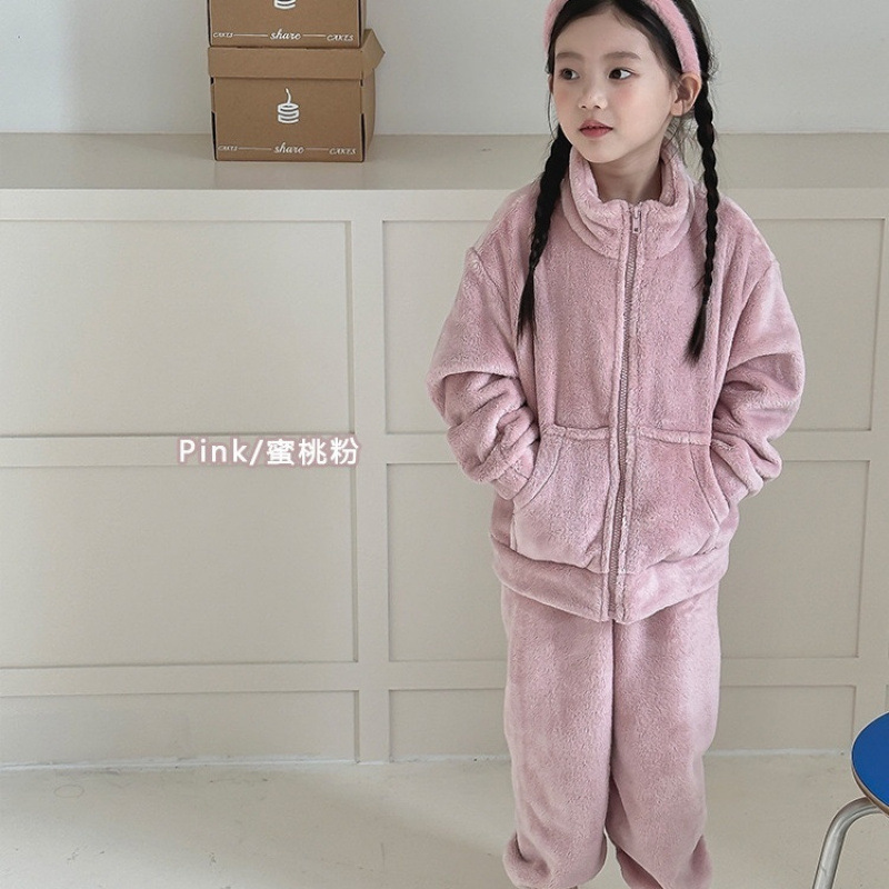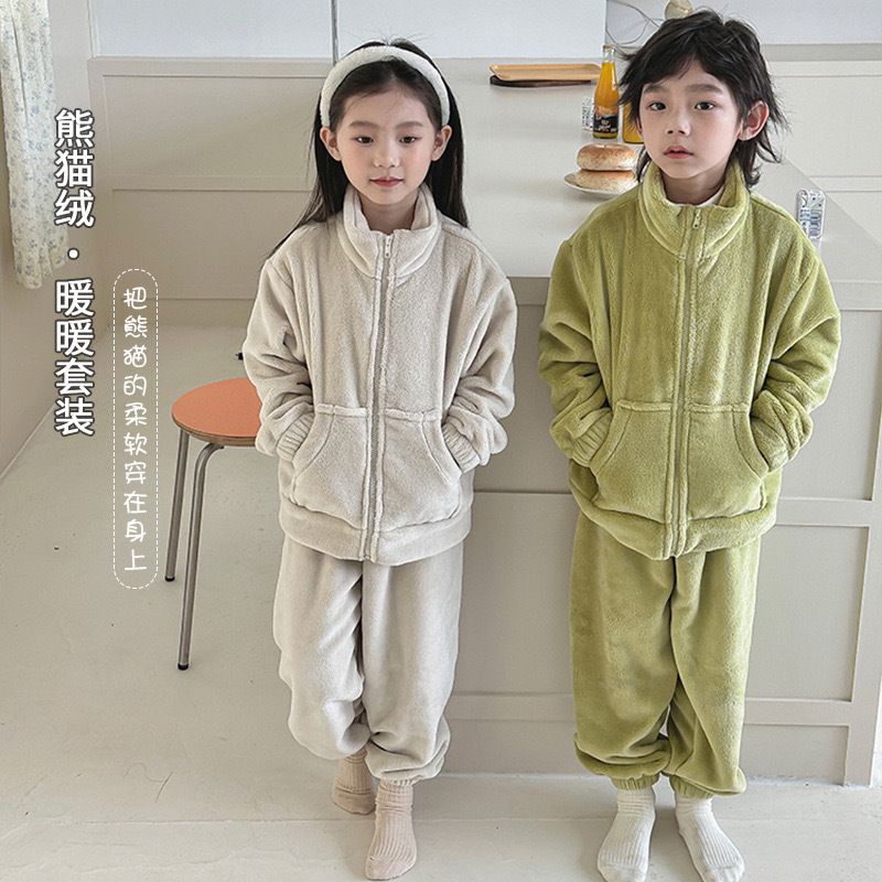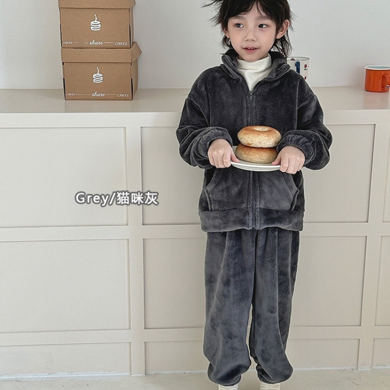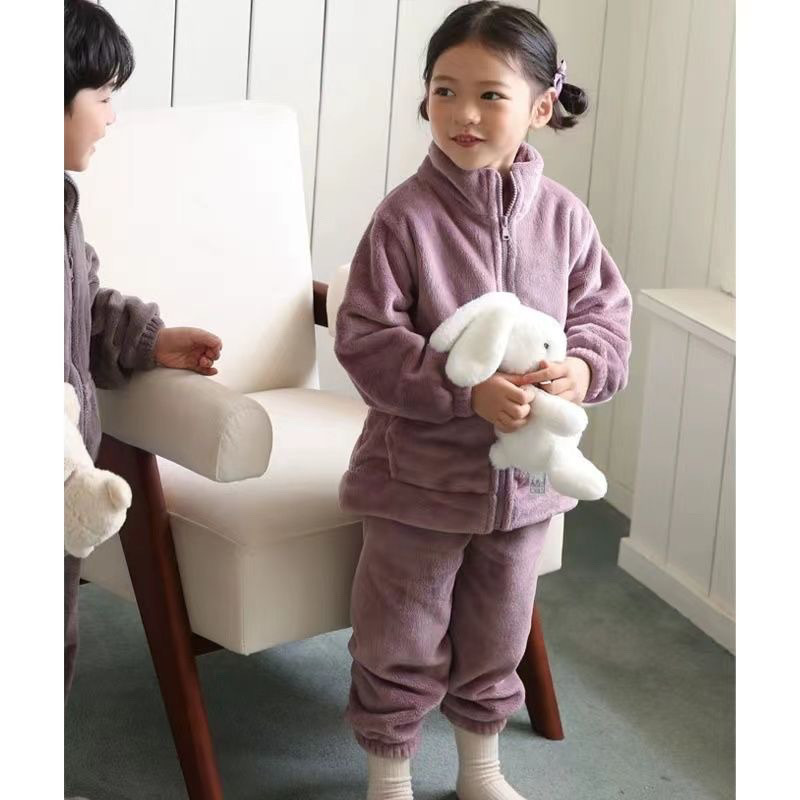 2024 년 어린이 가을/겨울 플란넬 파자마 세트 컬러 소년과 소녀의 집 옷 긴 소매 바지 2 피스 속옷