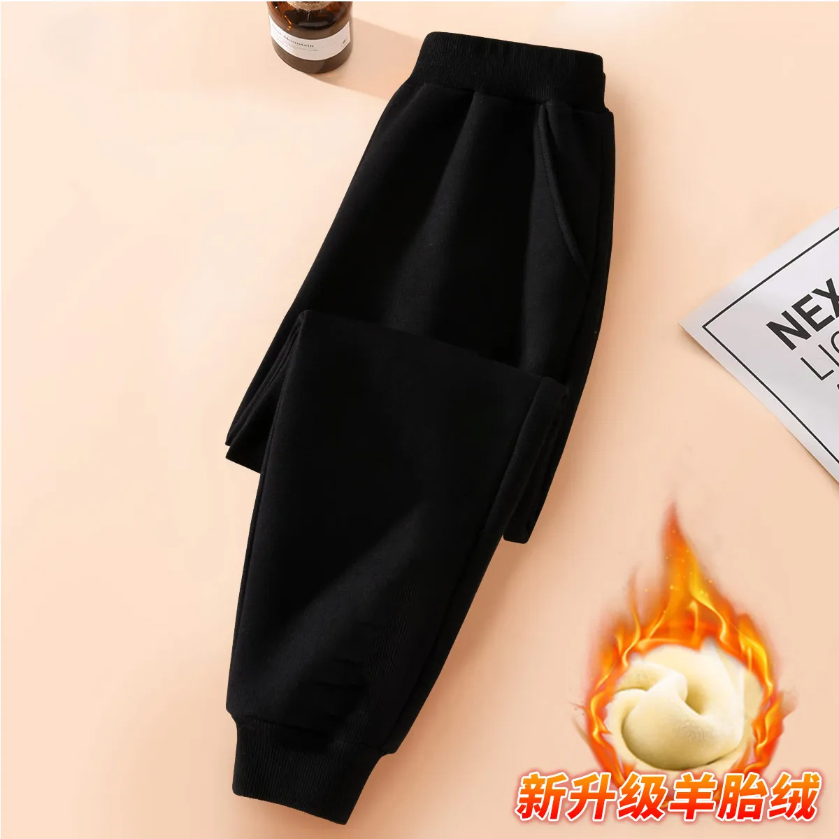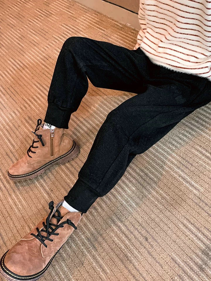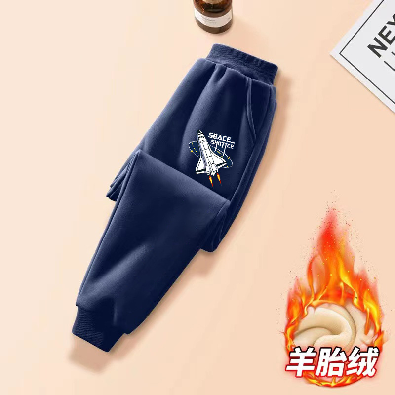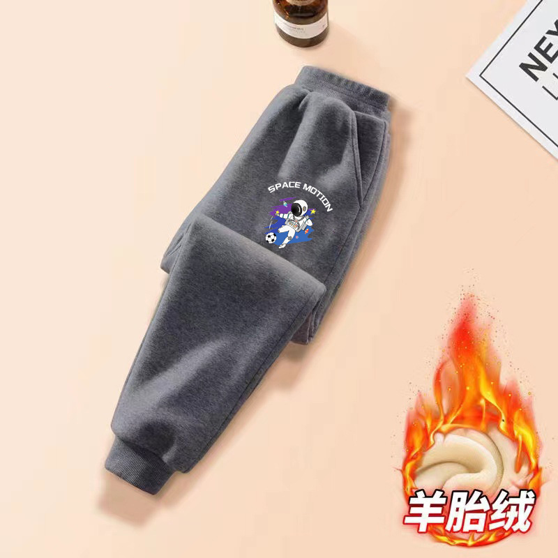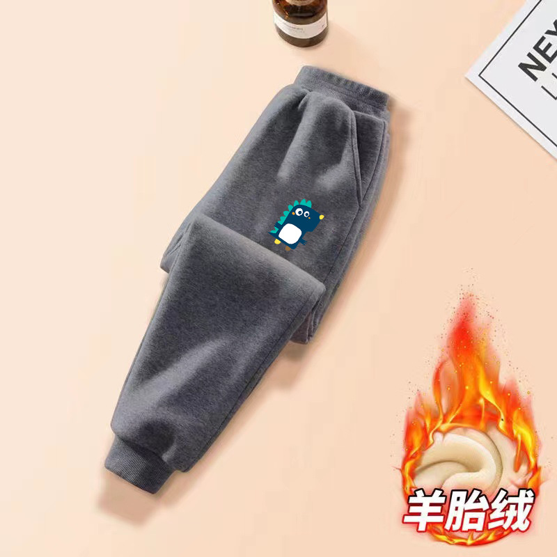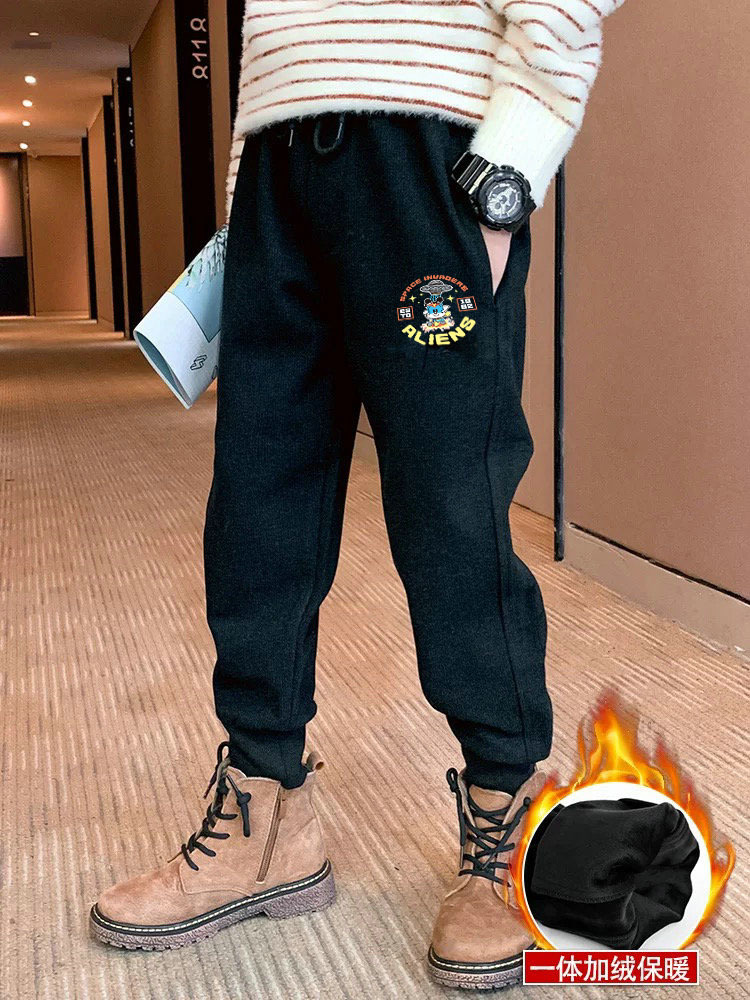중대형 어린이용 일체형 벨벳 보온 스포츠 바지 가을 겨울용 플러스 벨벳 아동 캐주얼 다용도 바지 트렌디한 스타일 중소형 어린이용스토어 가기