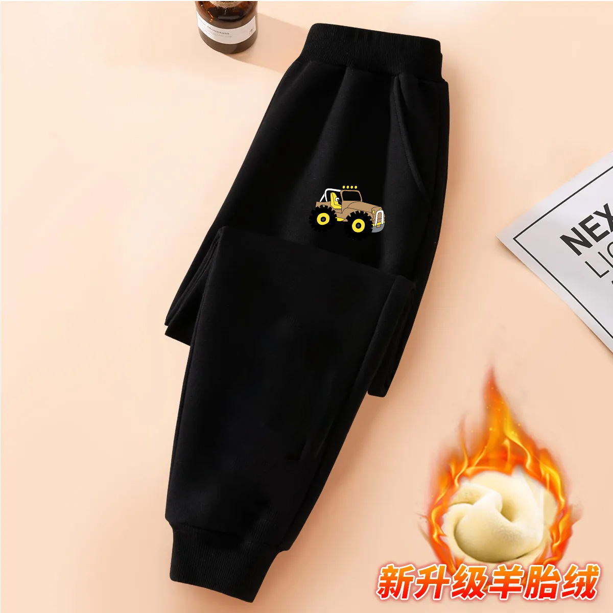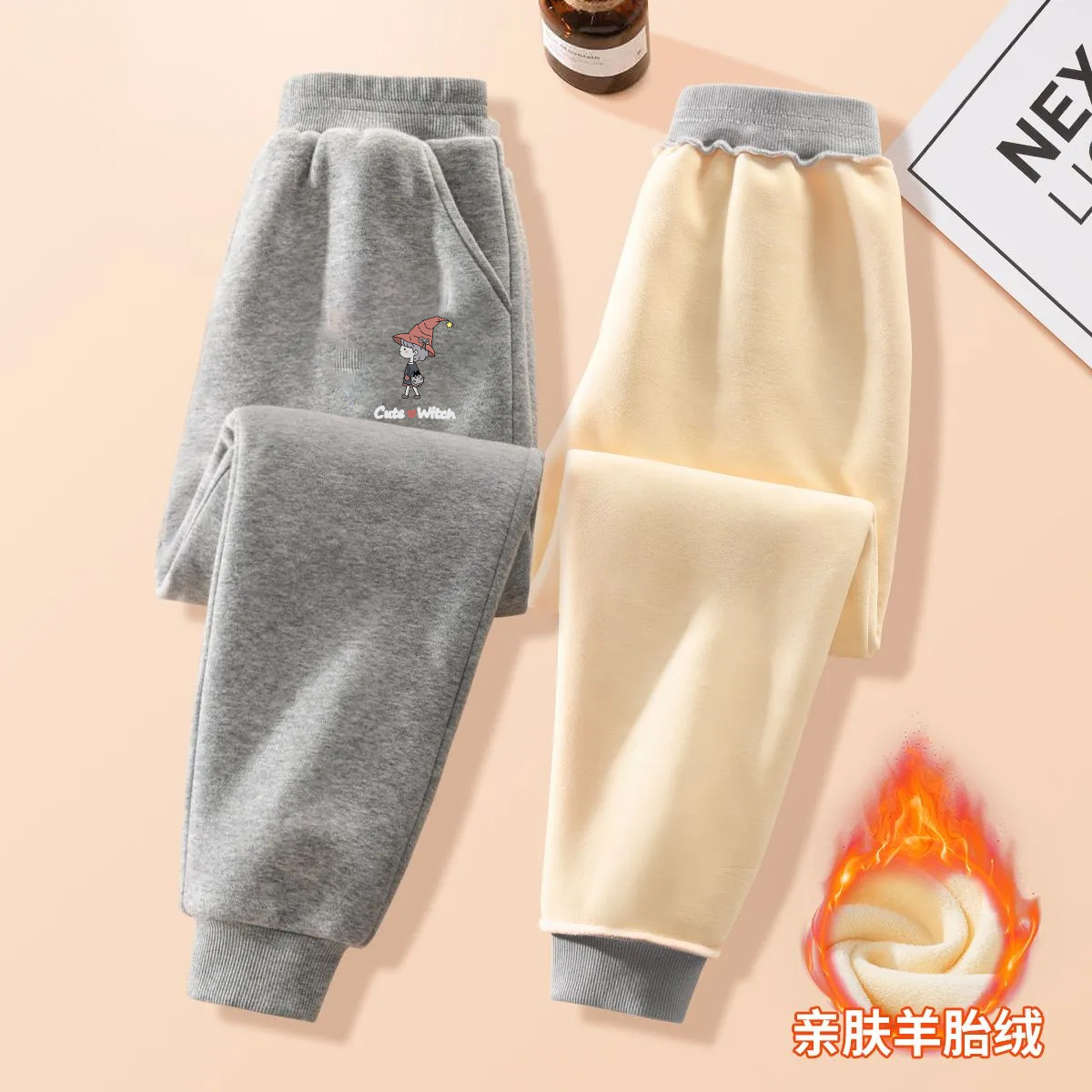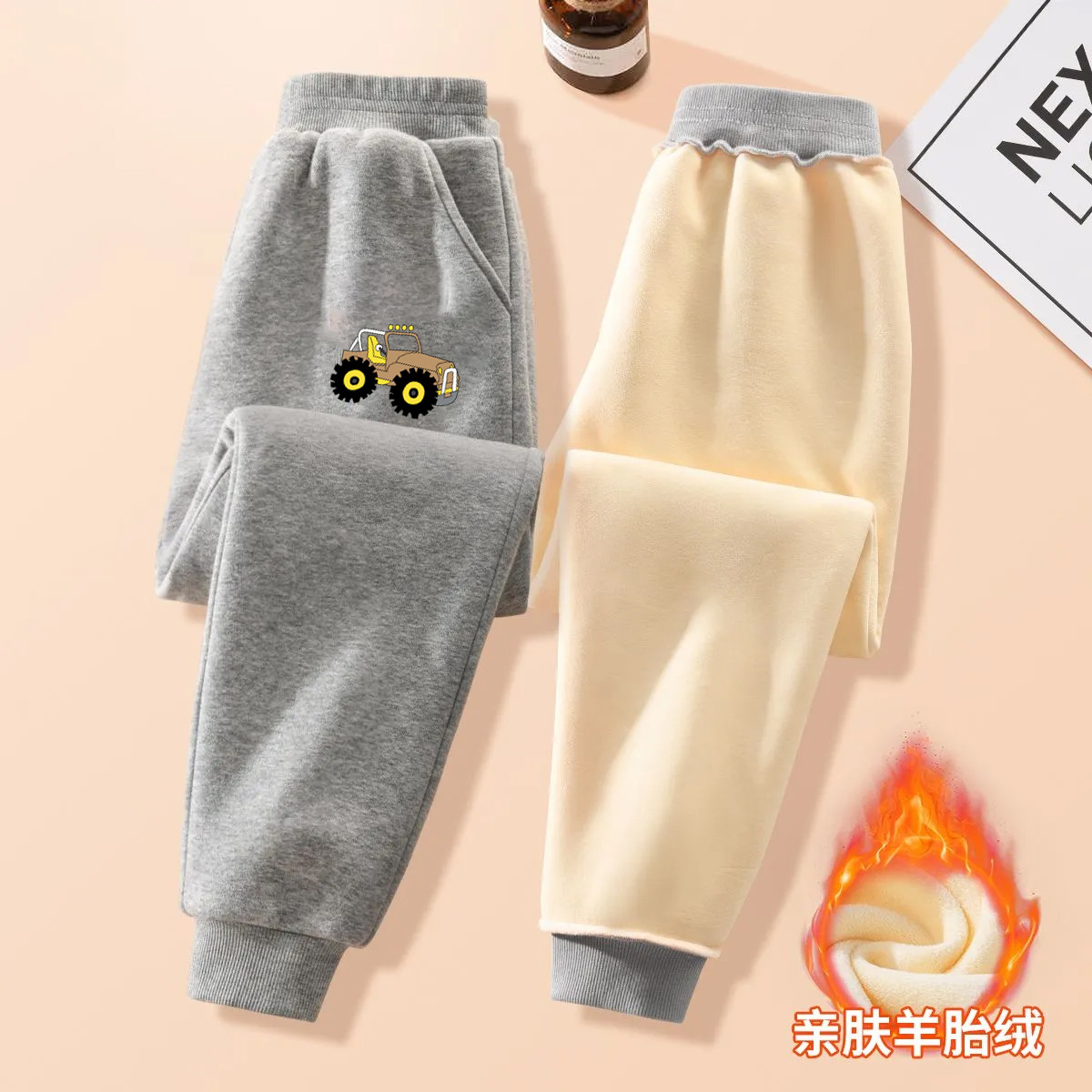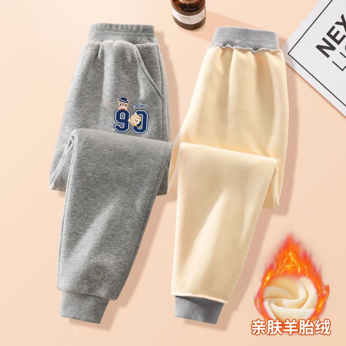 중대형 어린이용 일체형 벨벳 보온 스포츠 바지 가을 겨울용 플러스 벨벳 아동 캐주얼 다용도 바지 트렌디한 스타일 중소형 어린이용스토어 가기