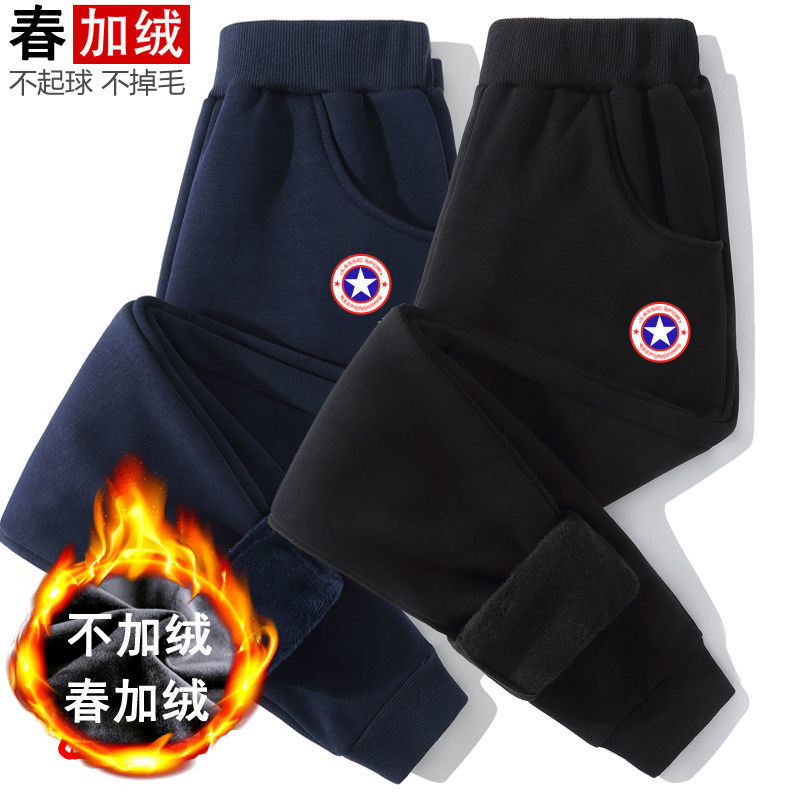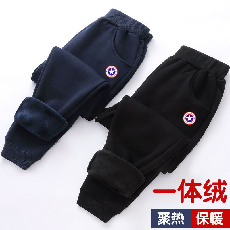 중대형 어린이용 일체형 벨벳 보온 스포츠 바지 가을 겨울용 플러스 벨벳 아동 캐주얼 다용도 바지 트렌디한 스타일 중소형 어린이용