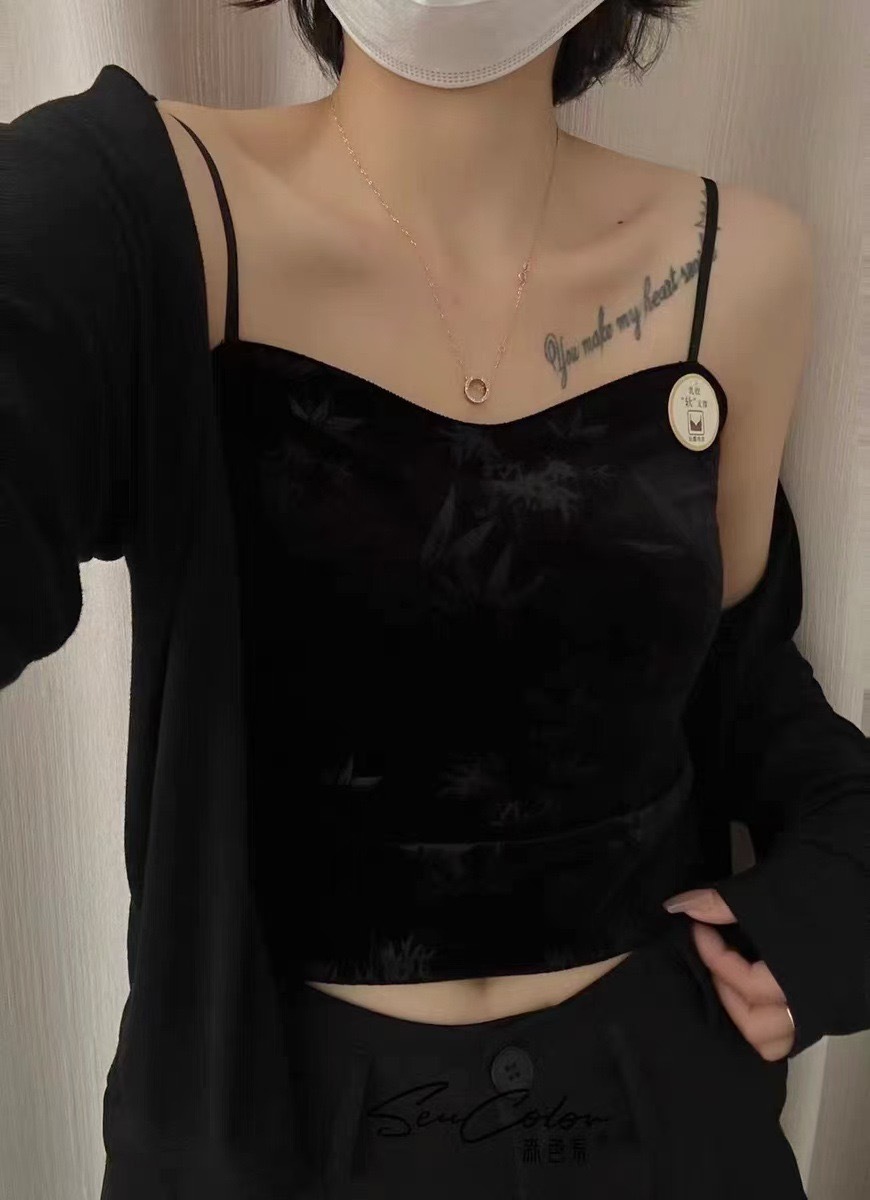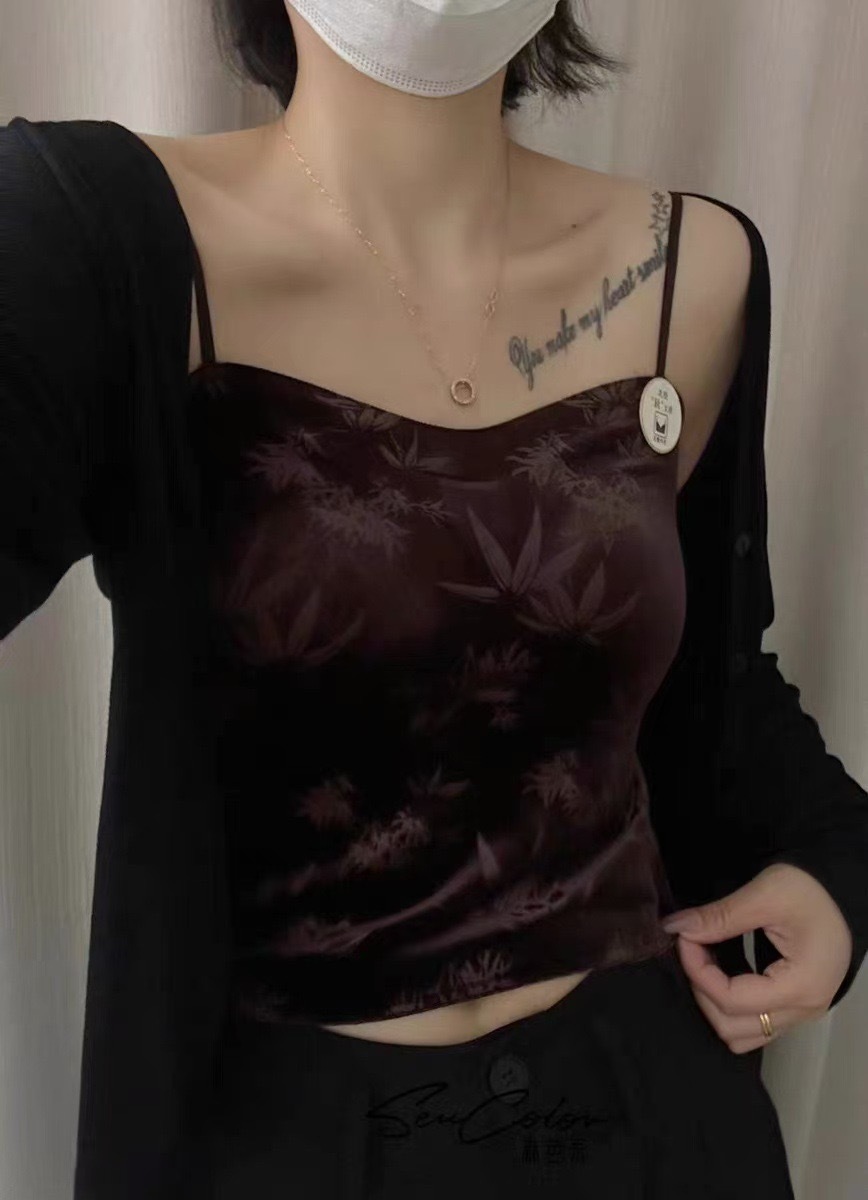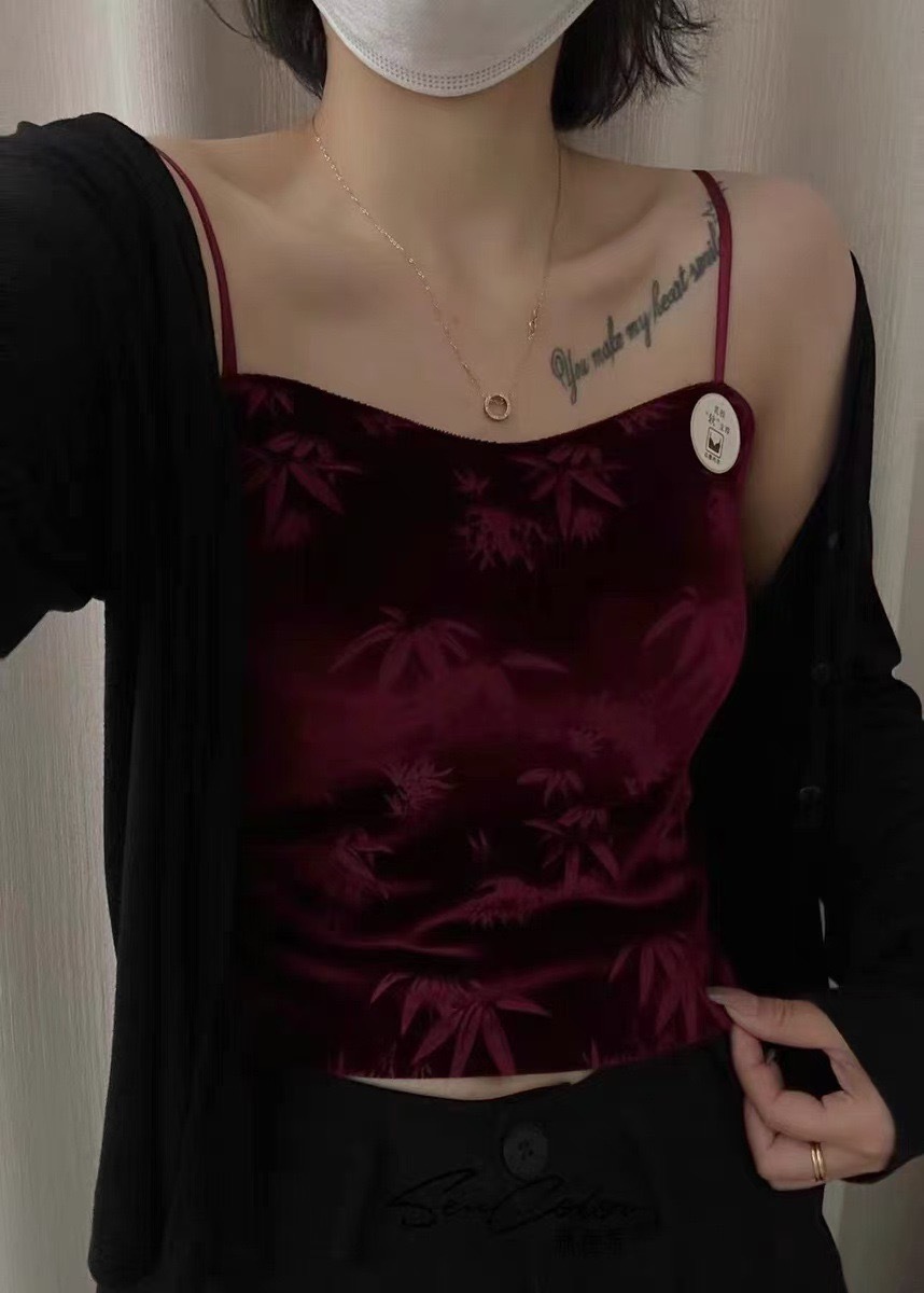 골든 벨벳 가을과 겨울 따뜻한 고정 컵 카미솔 여성의 아름다운 뒤 내부 외장 착용 베이스 대나무 그림자 인쇄 탑