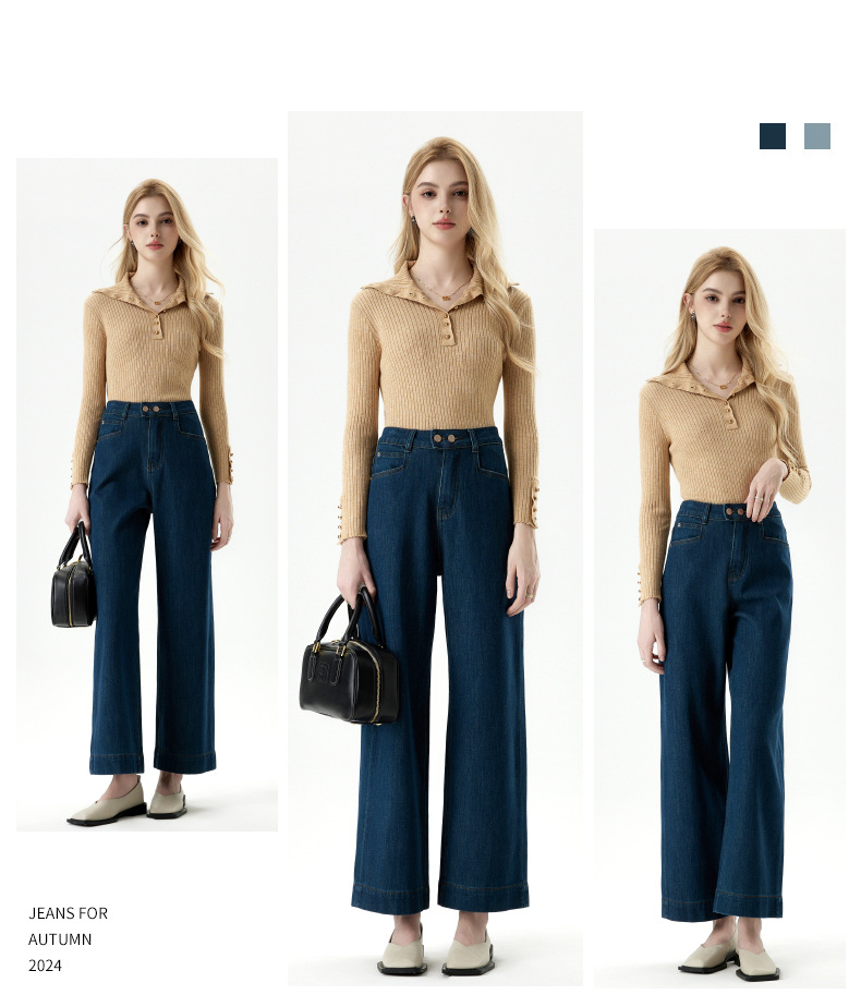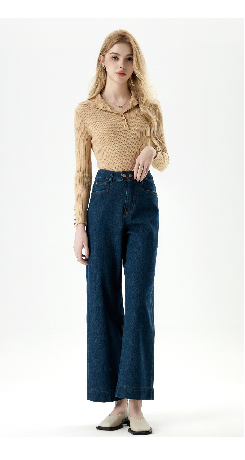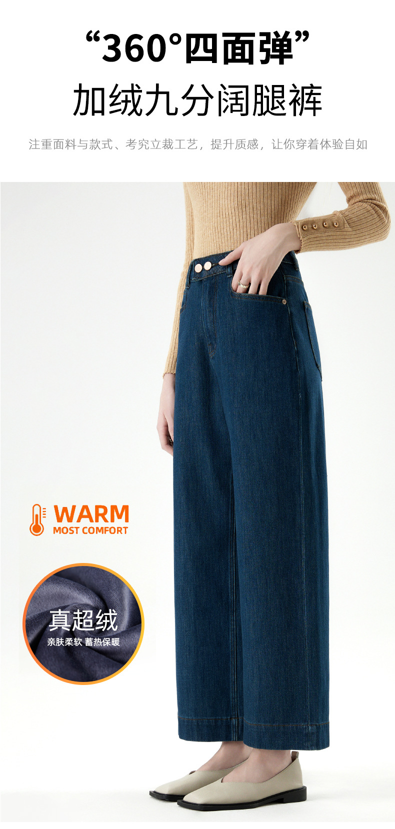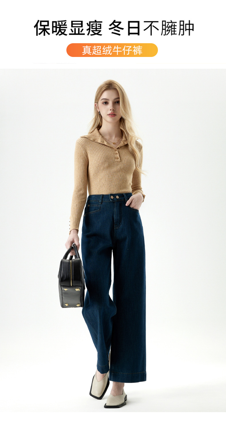가을과 겨울 2024 높은 허리 넓은 다리 슈퍼 소프트 벨벳 바지 여성 기모 라이크라 유니버설 2 버튼 청바지 여성스토어 가기