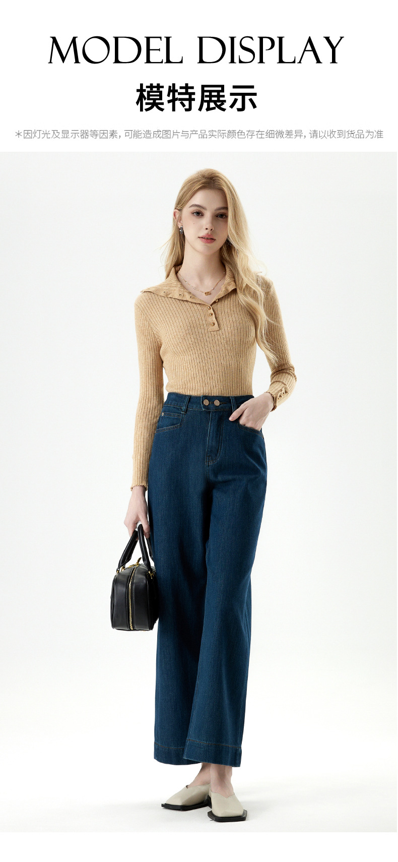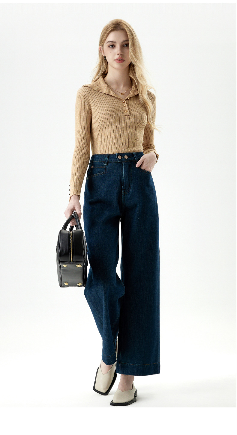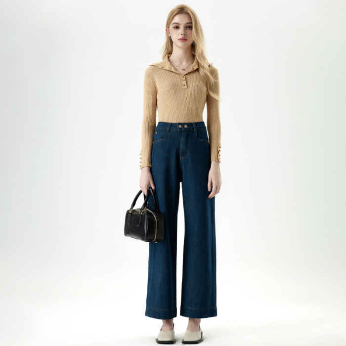 가을과 겨울 2024 높은 허리 넓은 다리 슈퍼 소프트 벨벳 바지 여성 기모 라이크라 유니버설 2 버튼 청바지 여성