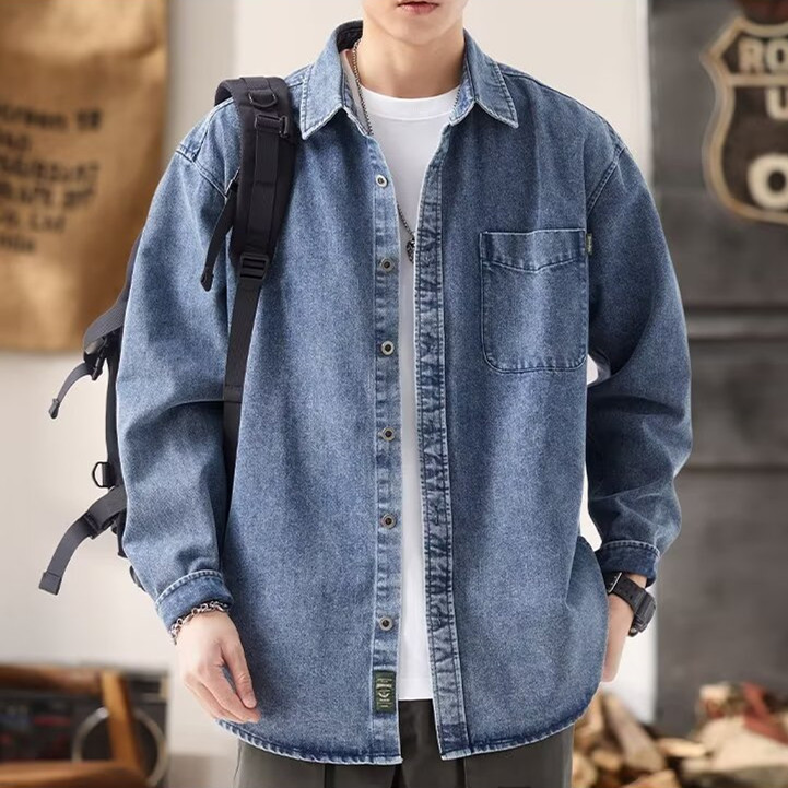 일본 스타일 Ins 레트로 패션 브랜드 데님 셔츠 소년 가을 느슨한 모든 경기 간단한 캐주얼 셔츠 재킷