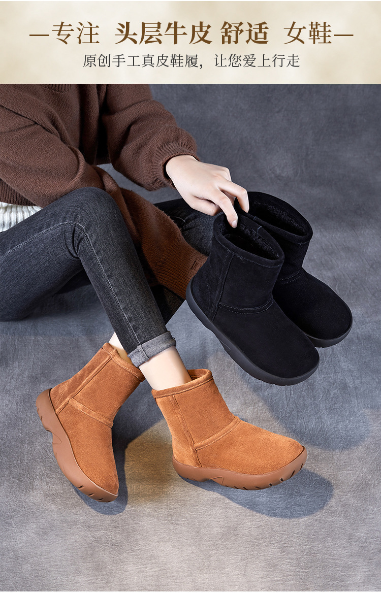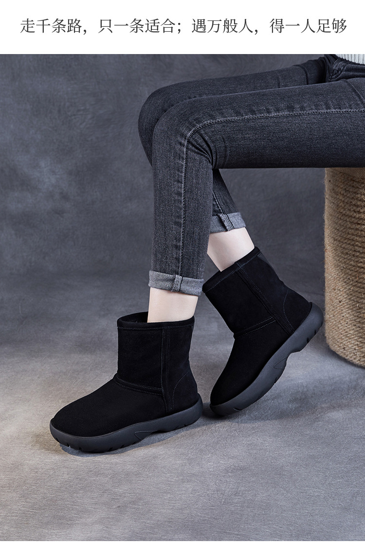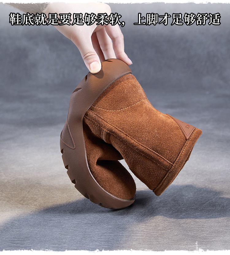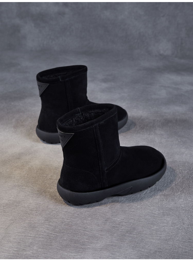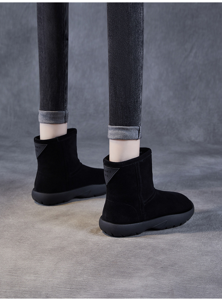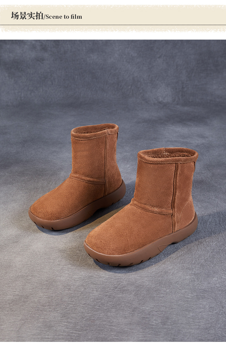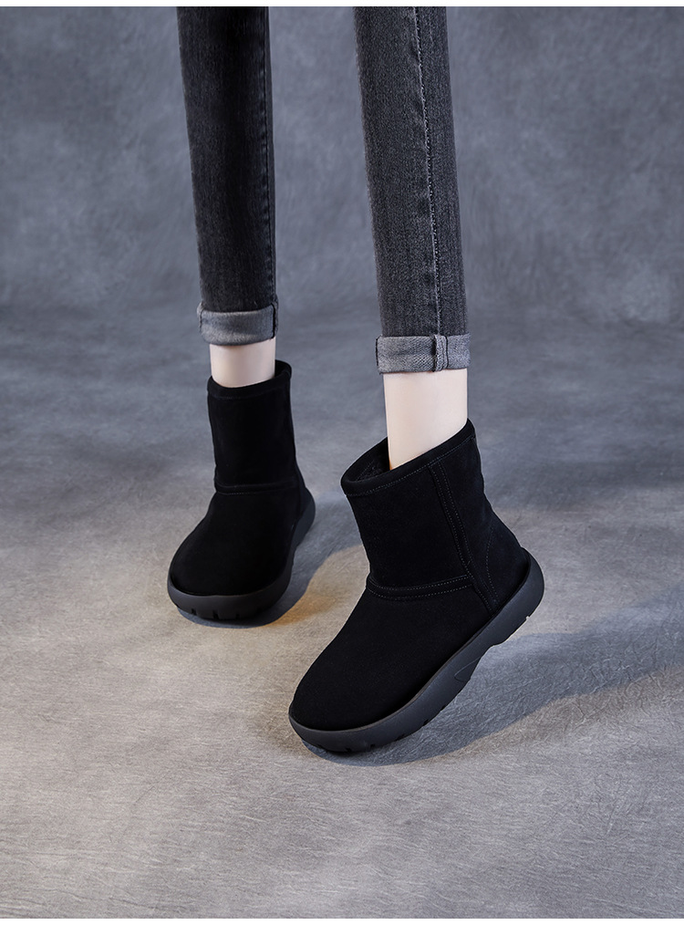 두꺼운 밑창 하이탑 코튼 패딩 신발 기모 두꺼운 스노우 부츠 여성용 2024 겨울 새 가죽 따뜻한 짧은 부츠 미드 배럴 부츠스토어 가기