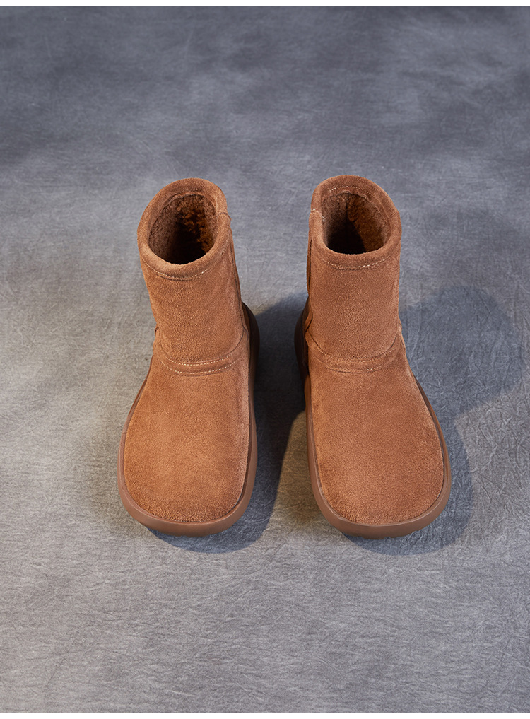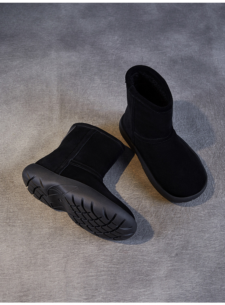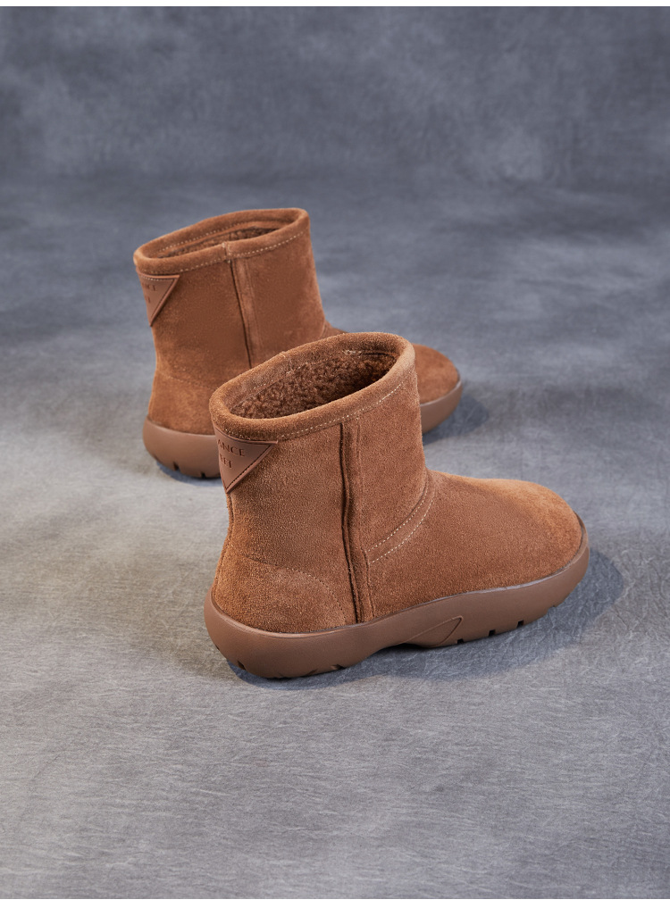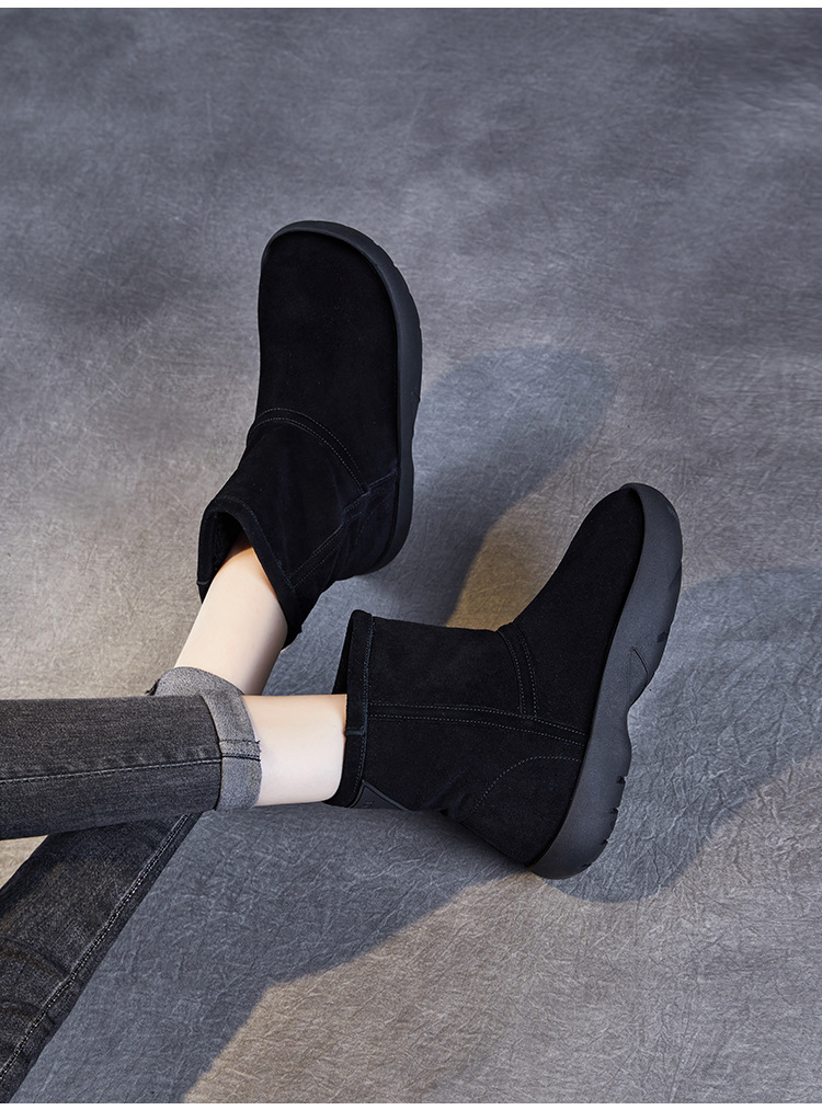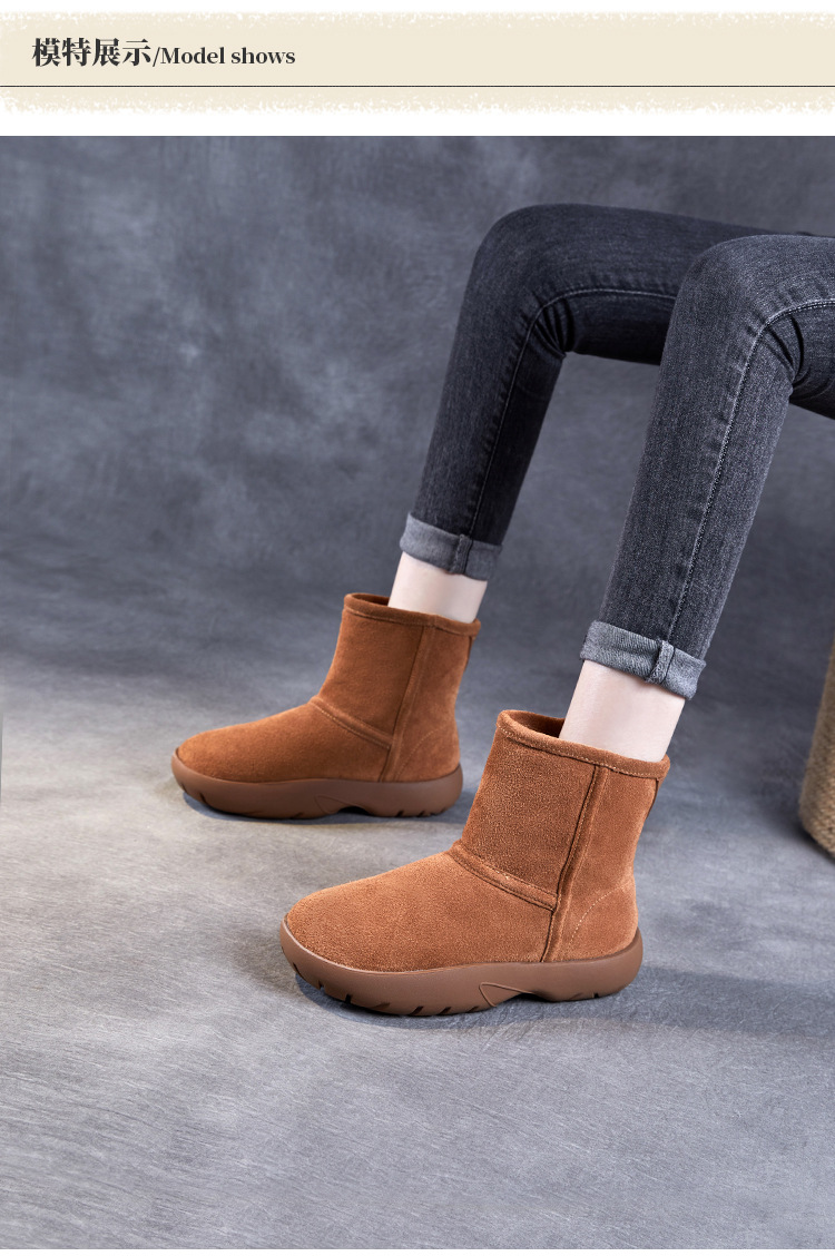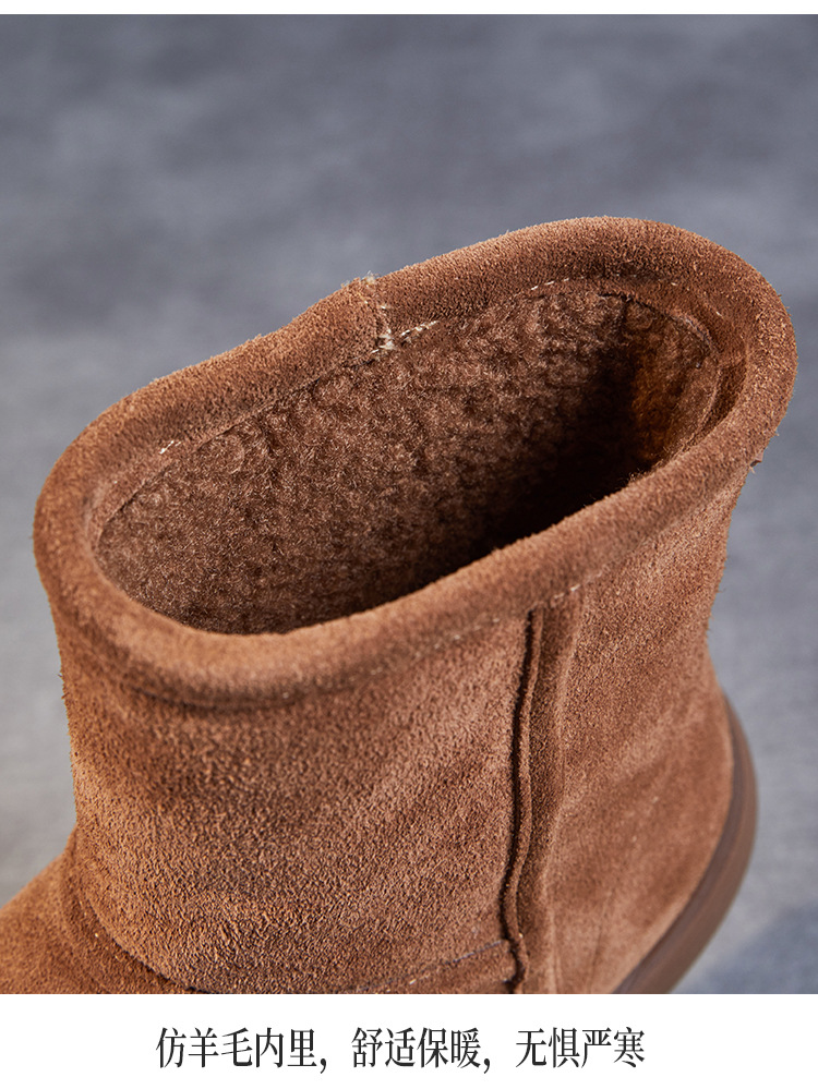 두꺼운 밑창 하이탑 코튼 패딩 신발 기모 두꺼운 스노우 부츠 여성용 2024 겨울 새 가죽 따뜻한 짧은 부츠 미드 배럴 부츠스토어 가기