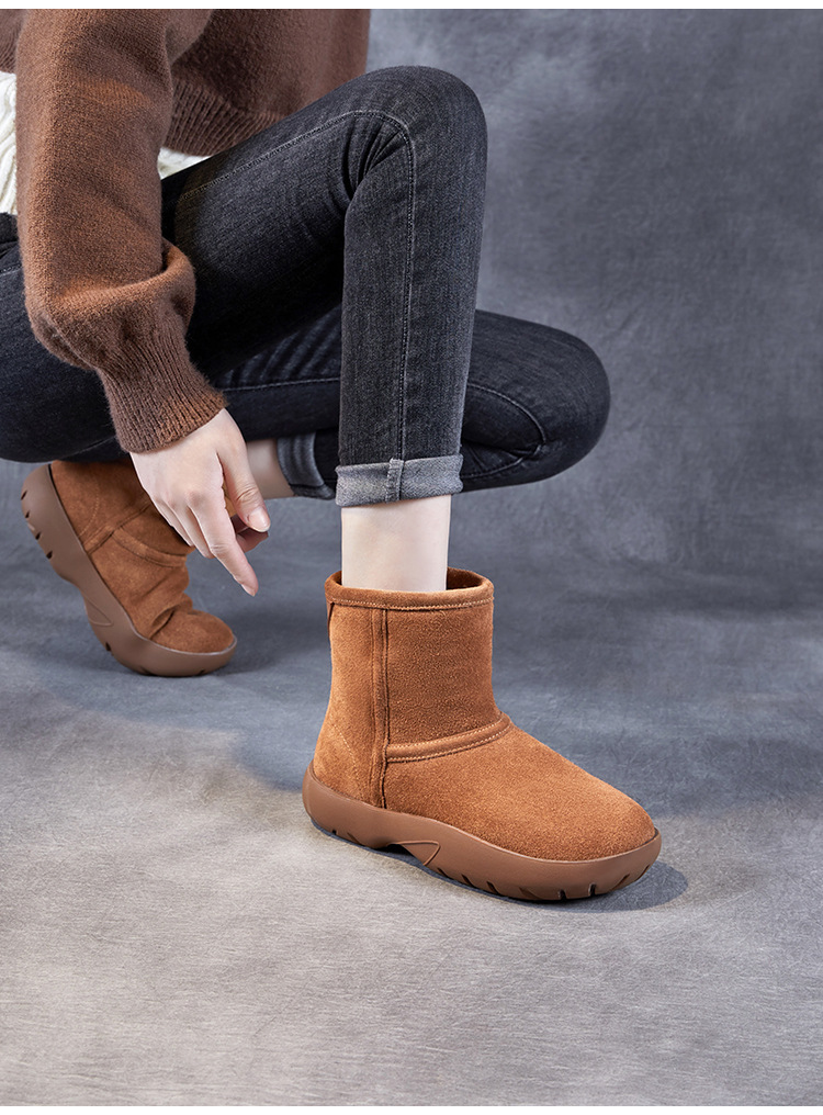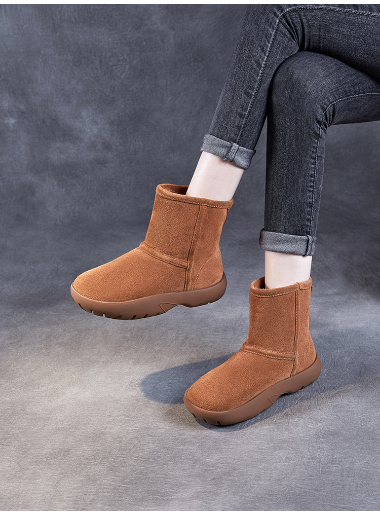 두꺼운 밑창 하이탑 코튼 패딩 신발 기모 두꺼운 스노우 부츠 여성용 2024 겨울 새 가죽 따뜻한 짧은 부츠 미드 배럴 부츠