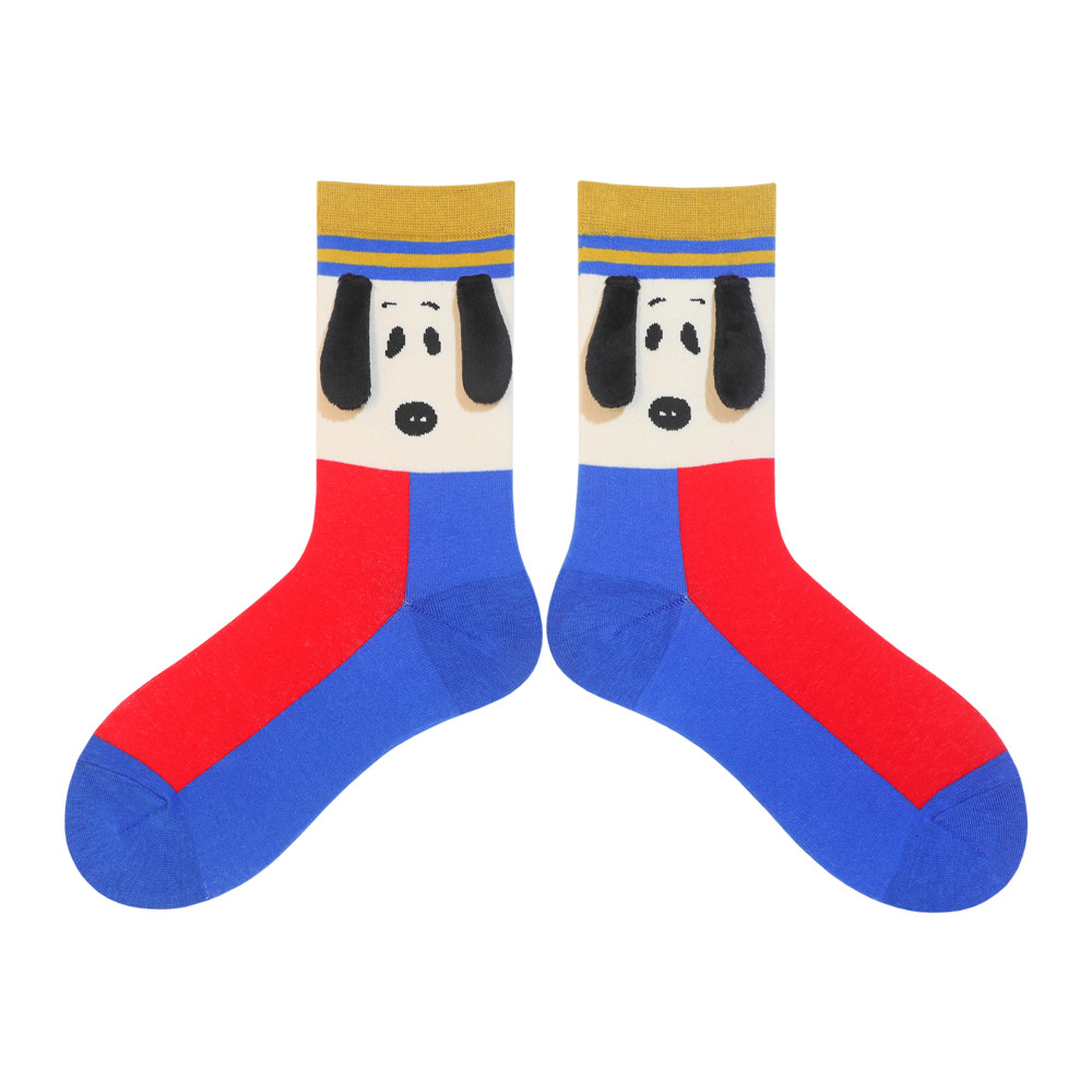 제나라 개 귀여운 만화 개 봄과 가을 시즌 수 놓은 큰 귀 반전 여성 양말을 착용 할 수 있습니다