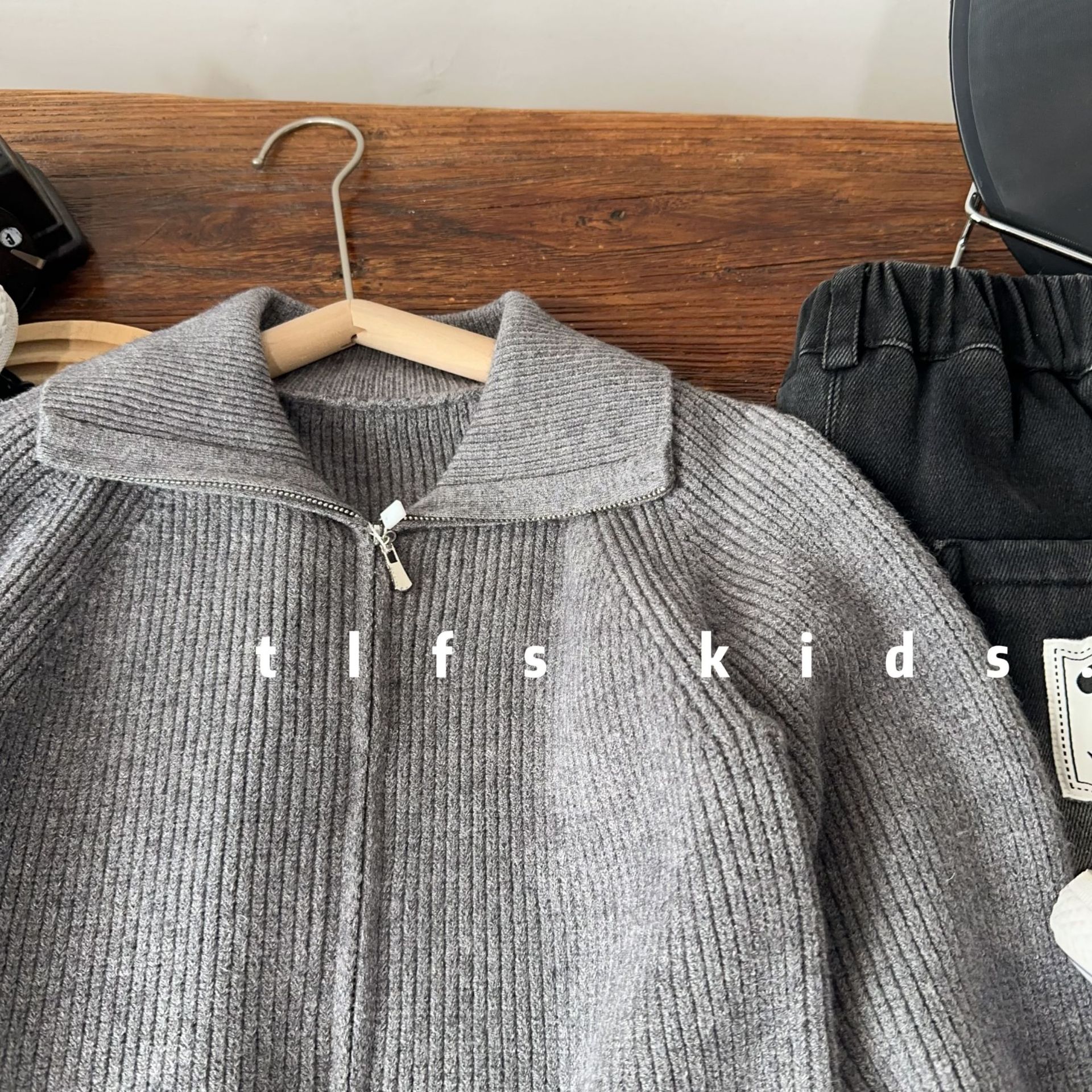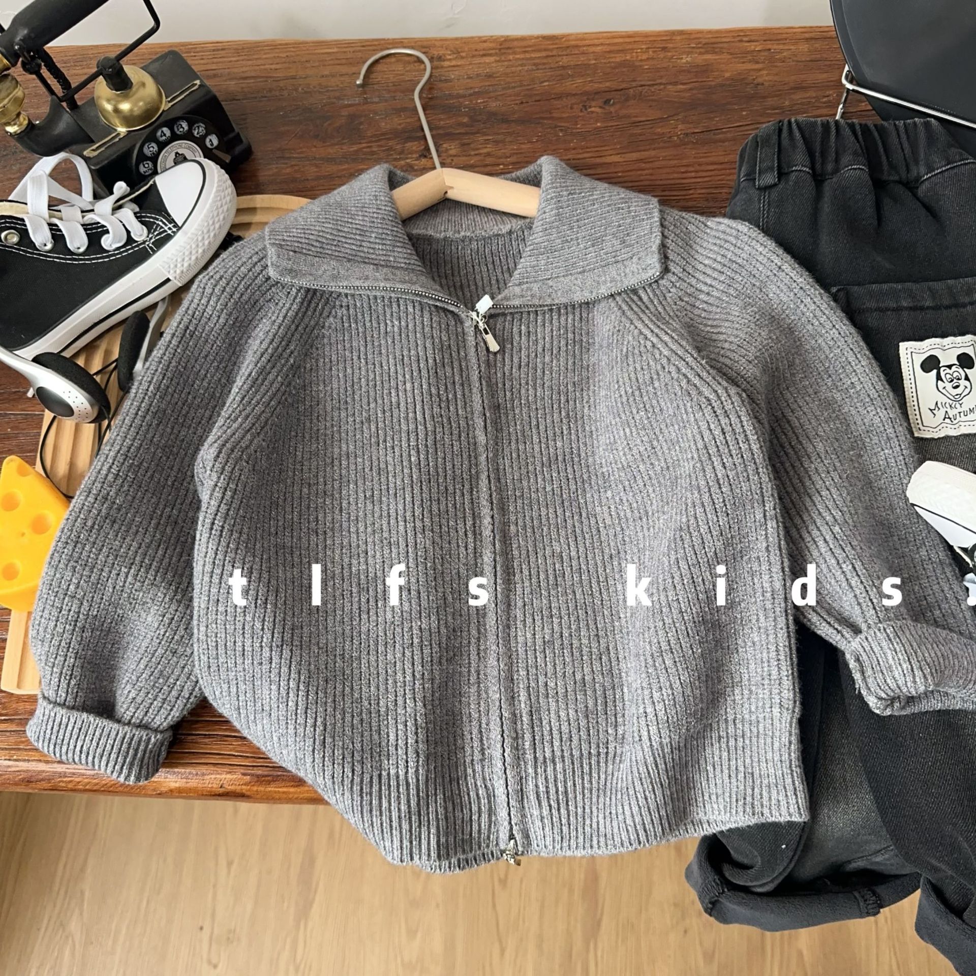 어린이 회색 양방향 지퍼 옷깃 스웨터 가을과 겨울 소프트 왁스 캐주얼 스웨터 소년 소녀를위한 올 매치 풀오버 트렌드스토어 가기