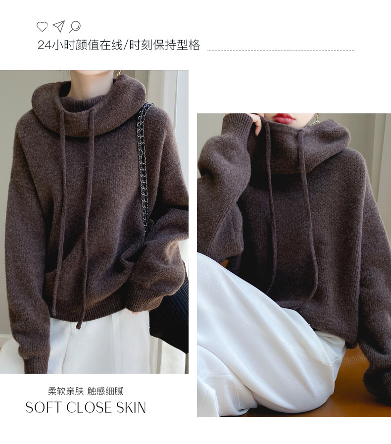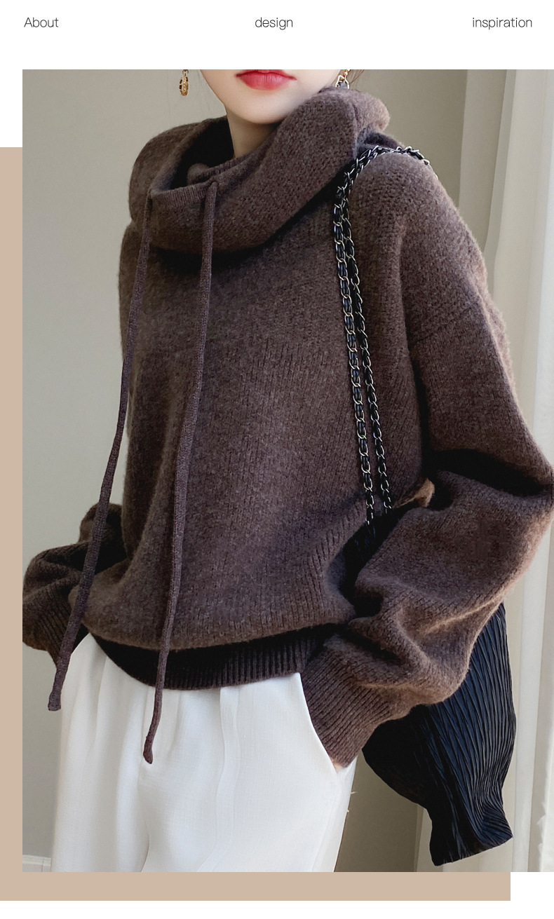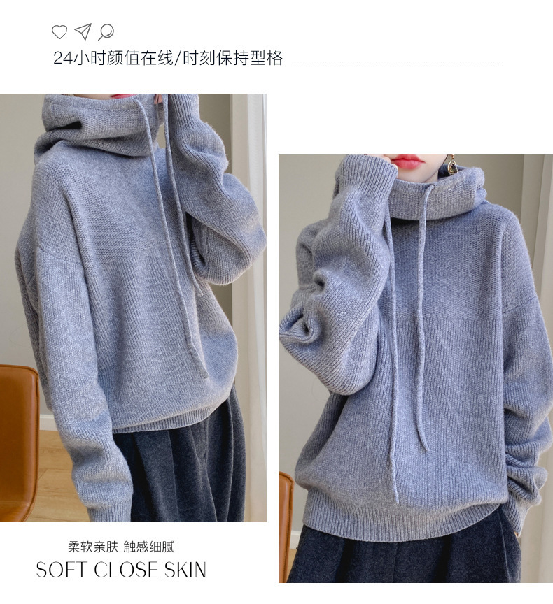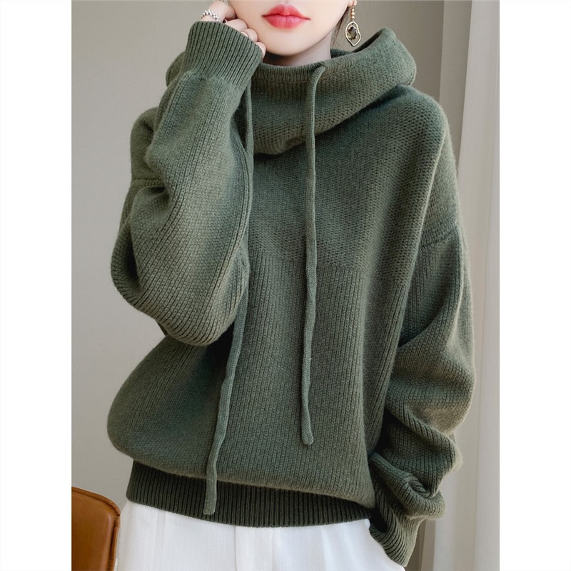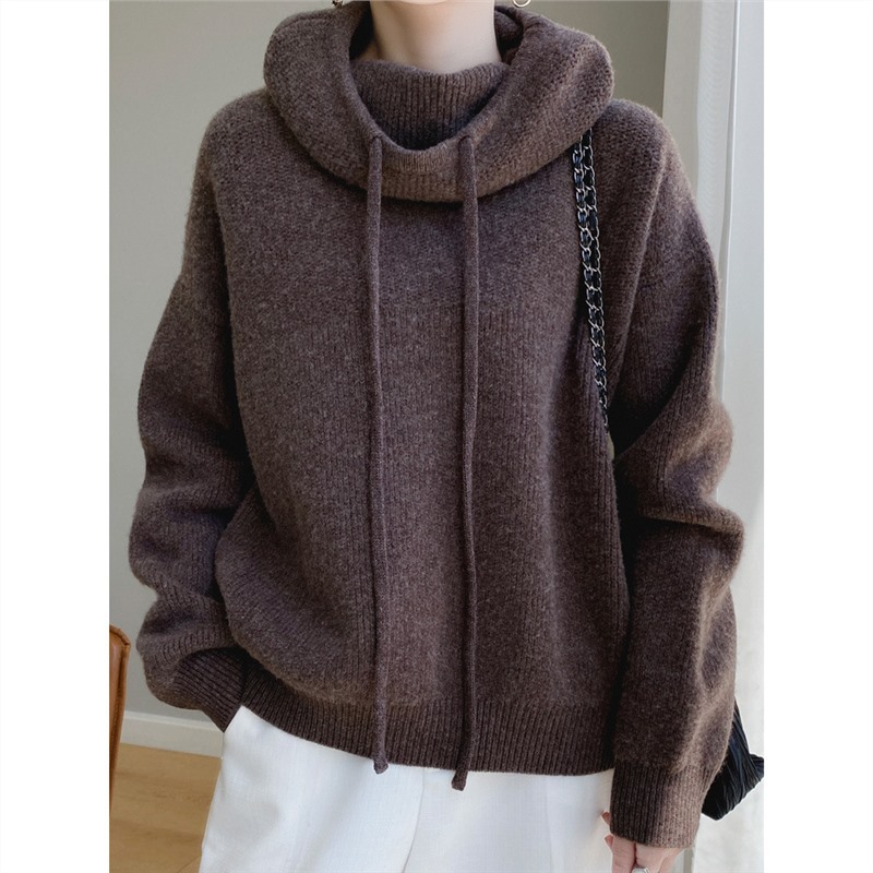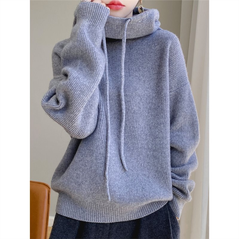 대외 무역 국경 더미 칼라 두꺼운 스웨터 여성의 2024 가을과 겨울 게으른 스타일 느슨한 슬림 풀오버 스웨터 여성스토어 가기