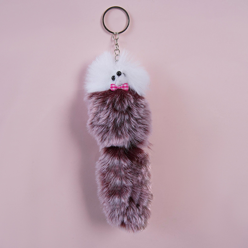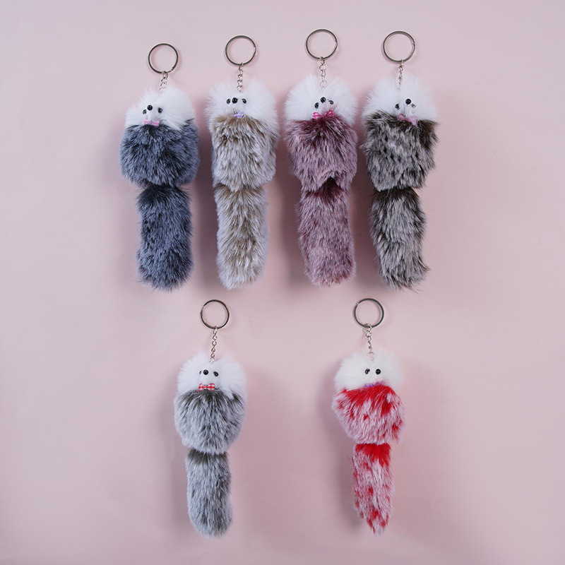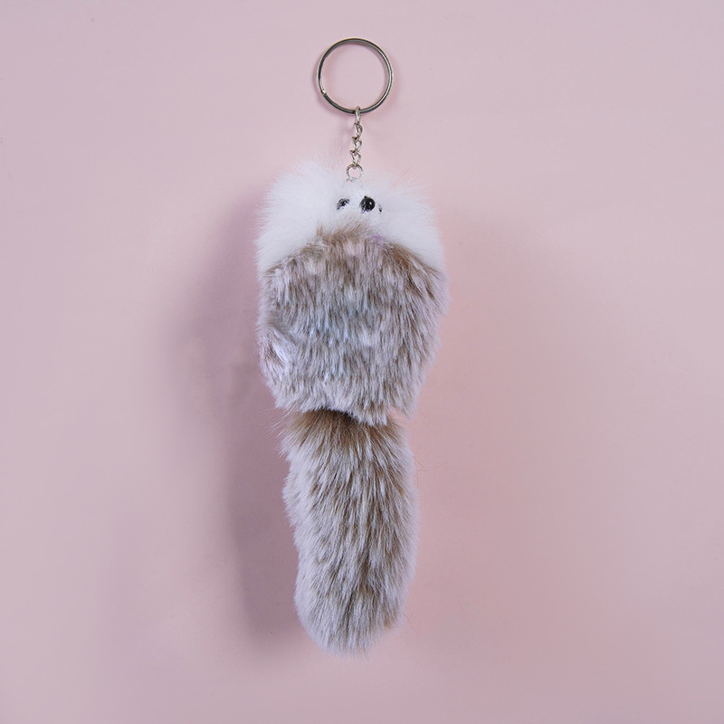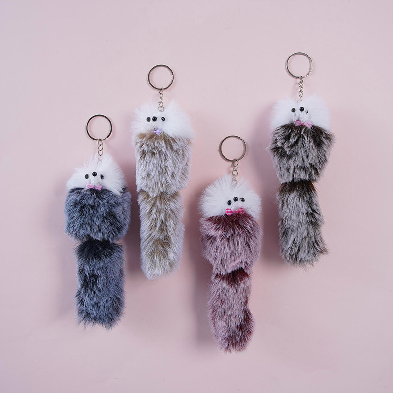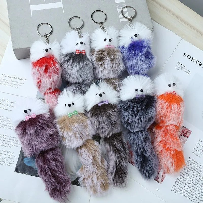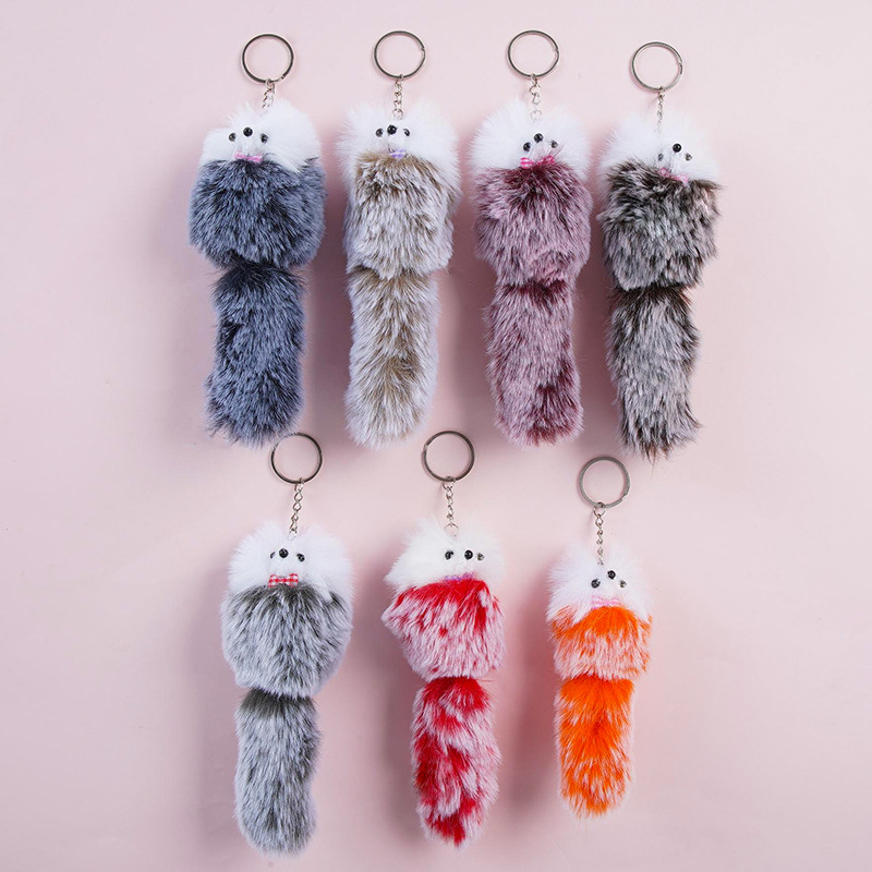 귀여운 크림 컬러 봉제 여우 키 체인 펜던트 키 체인 그물 레드 남성과 여성의 작은 선물 공장 직접 판매