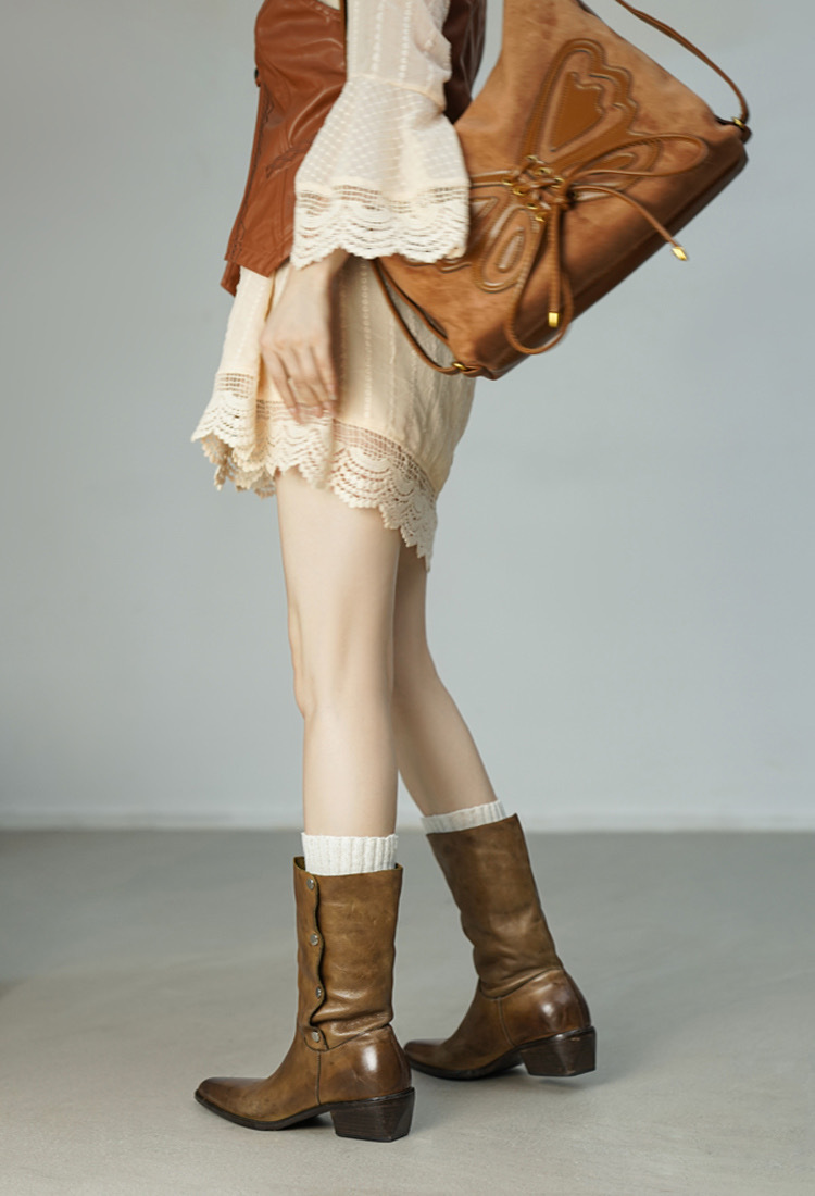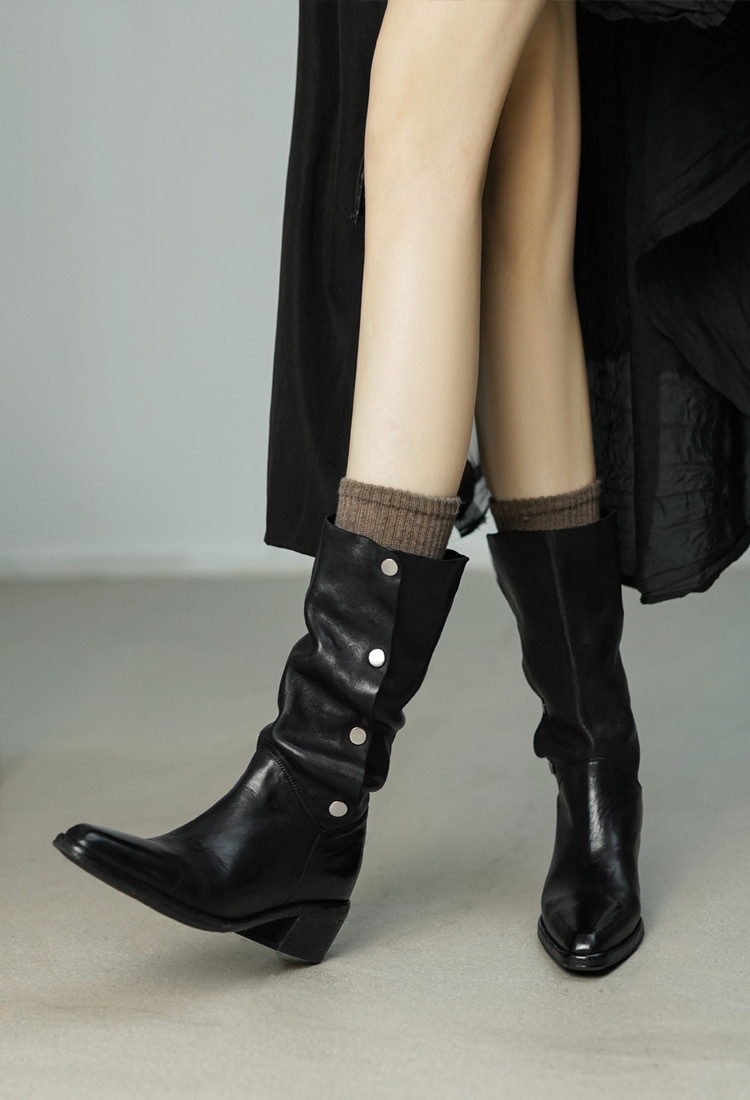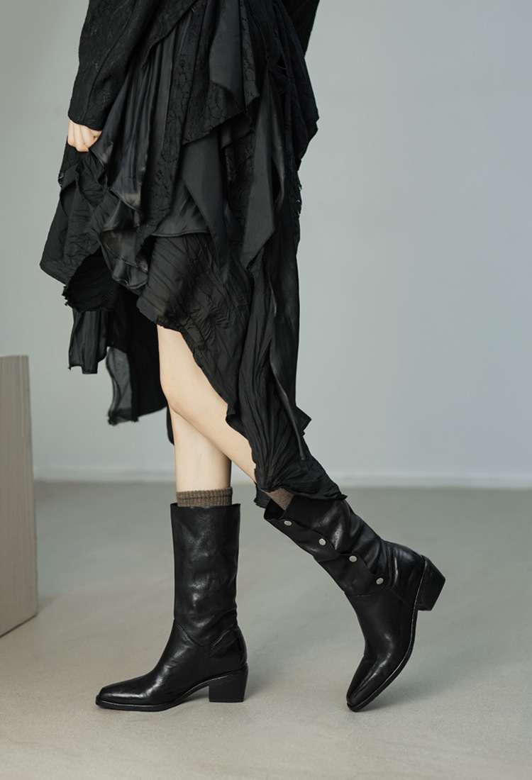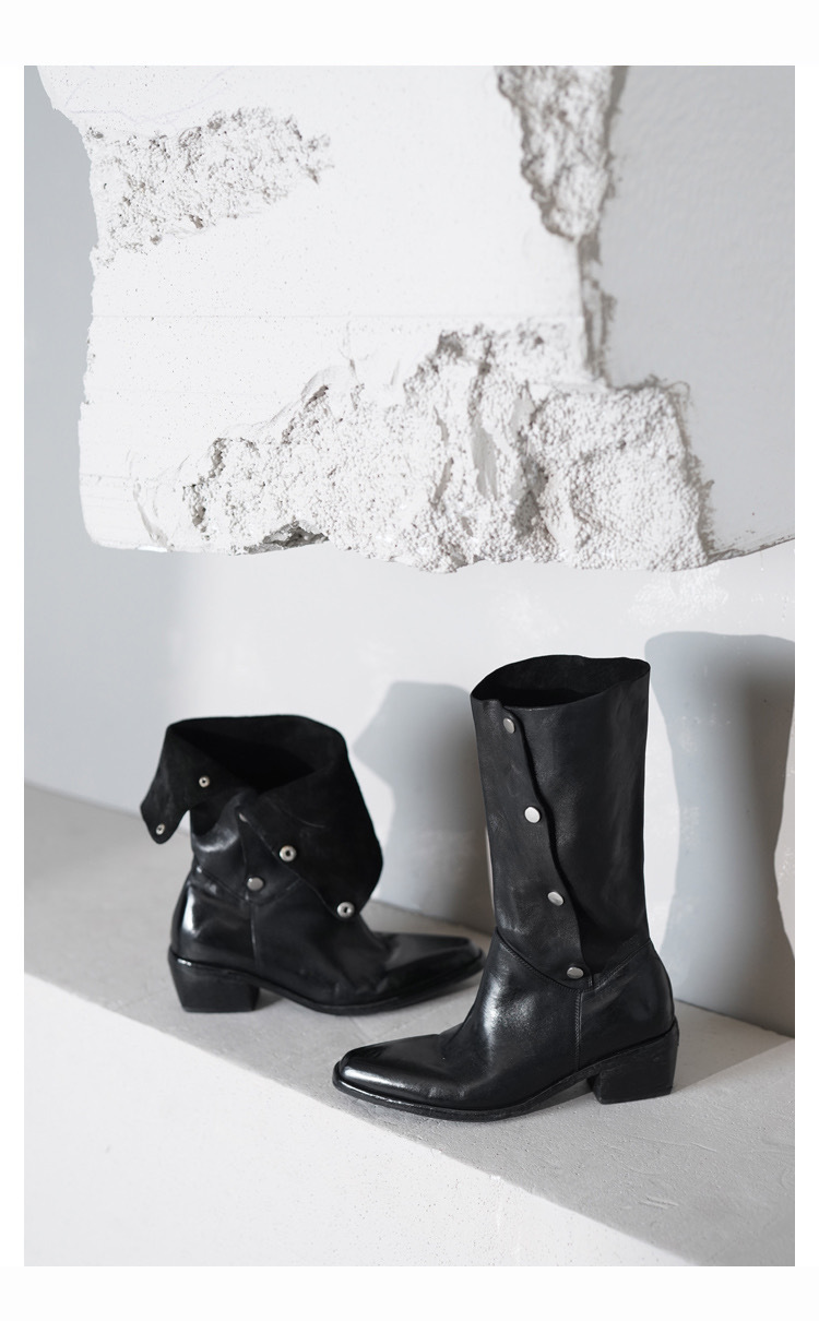 영국 스타일 하이 센스 틈새 옷깃 투웨어 웨스턴 카우보이 부츠 여성 가을 및 겨울 두꺼운 힐 미드 부츠 나이트 부츠