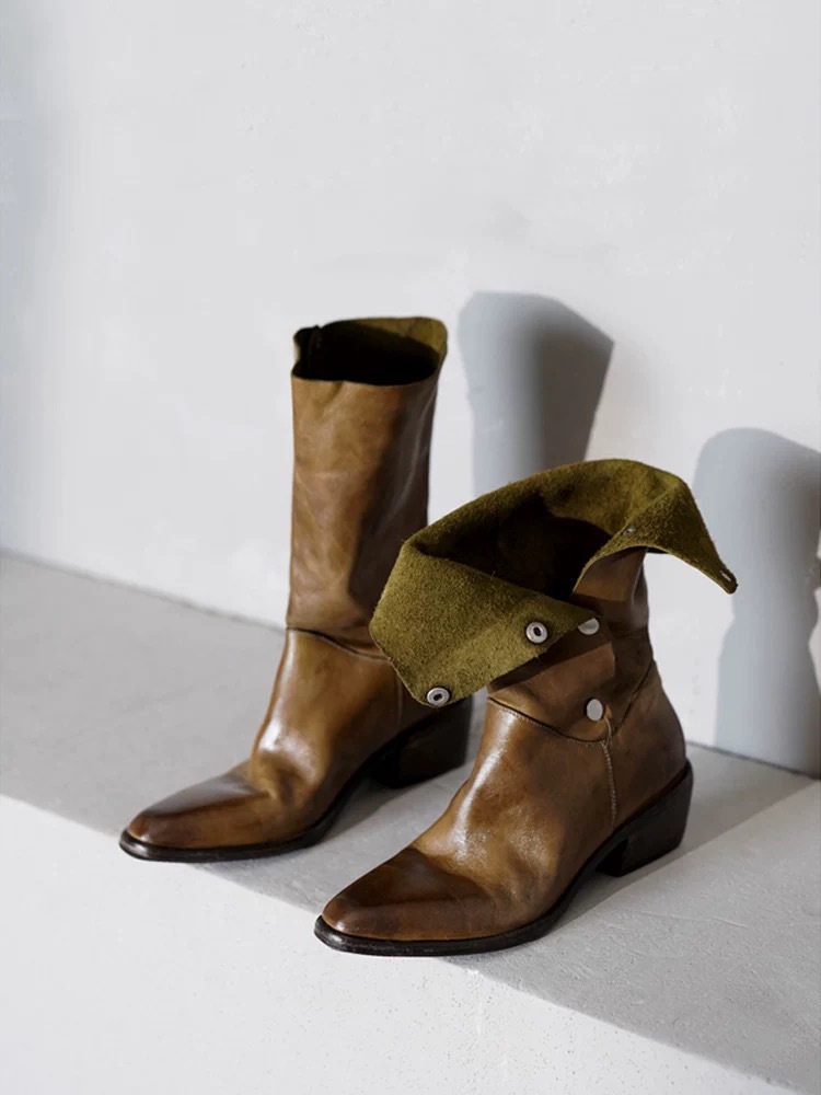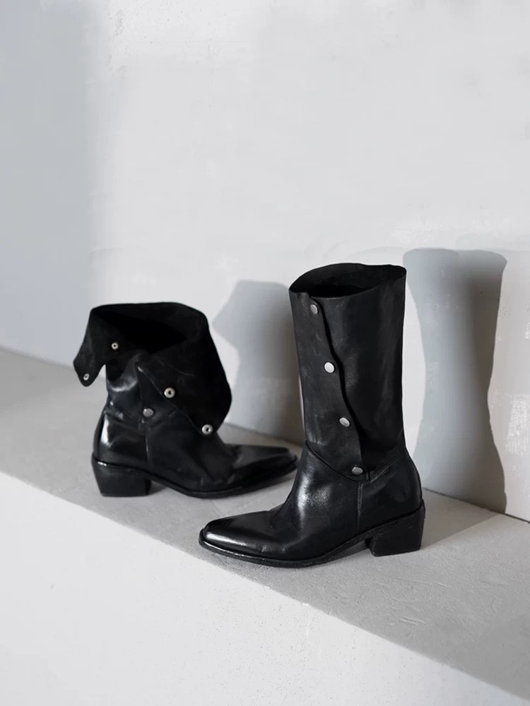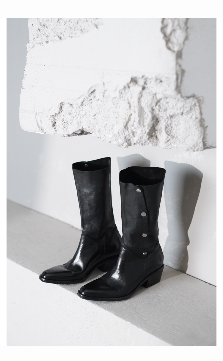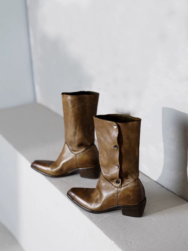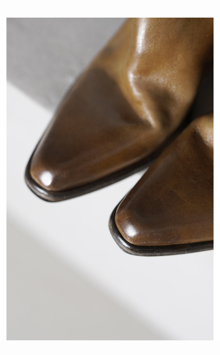 영국 스타일 하이 센스 틈새 옷깃 투웨어 웨스턴 카우보이 부츠 여성 가을 및 겨울 두꺼운 힐 미드 부츠 나이트 부츠