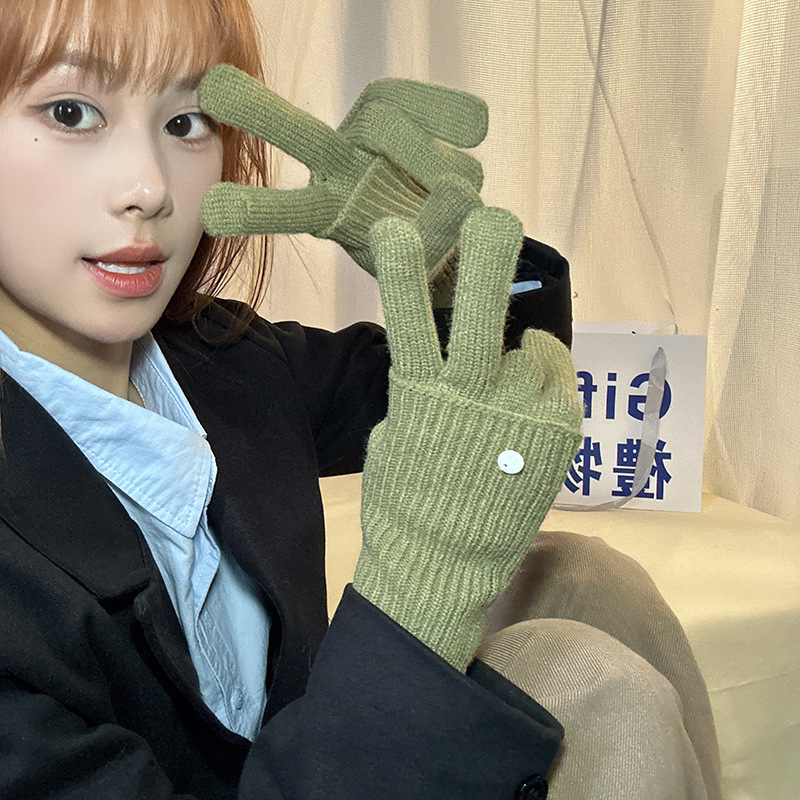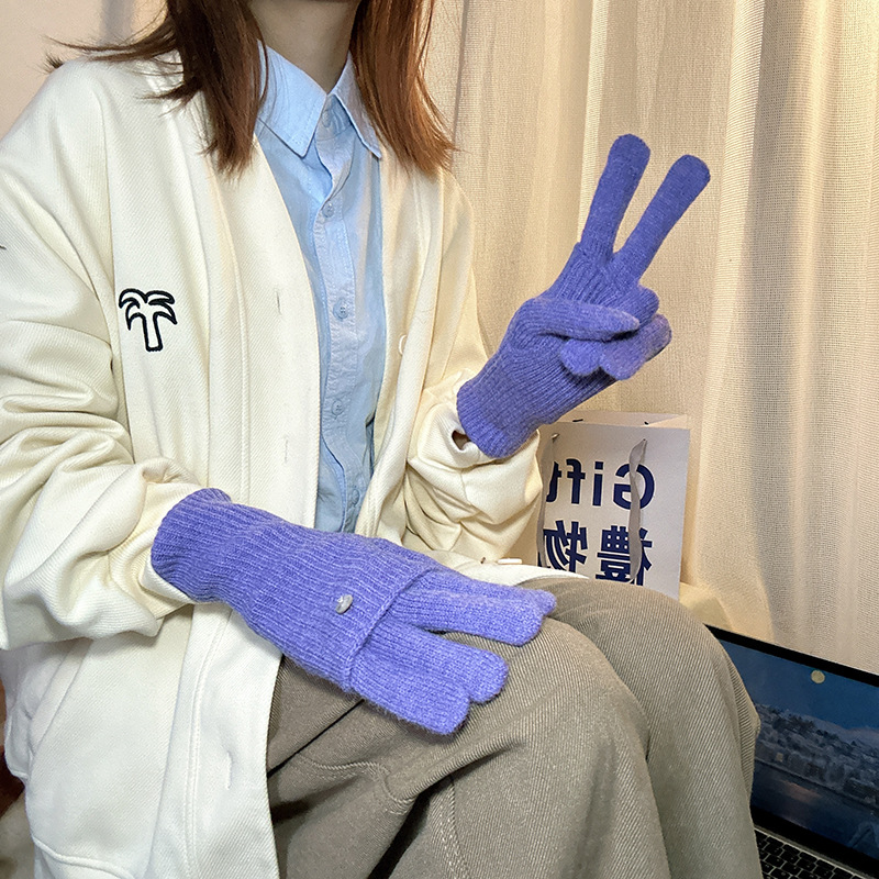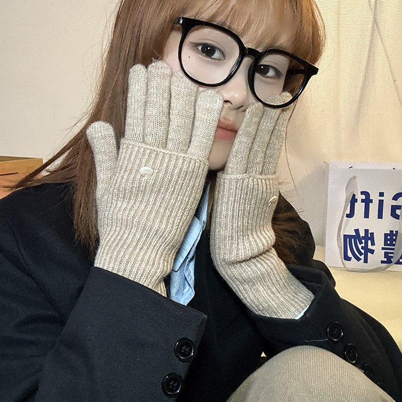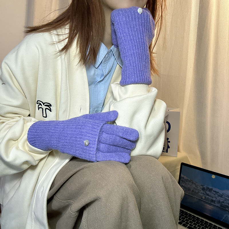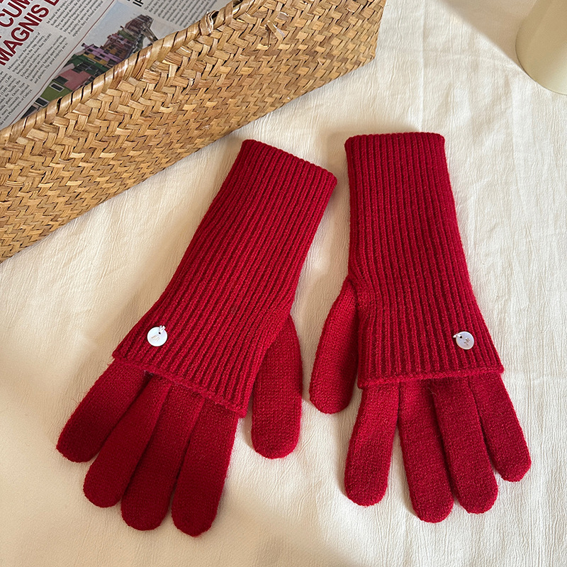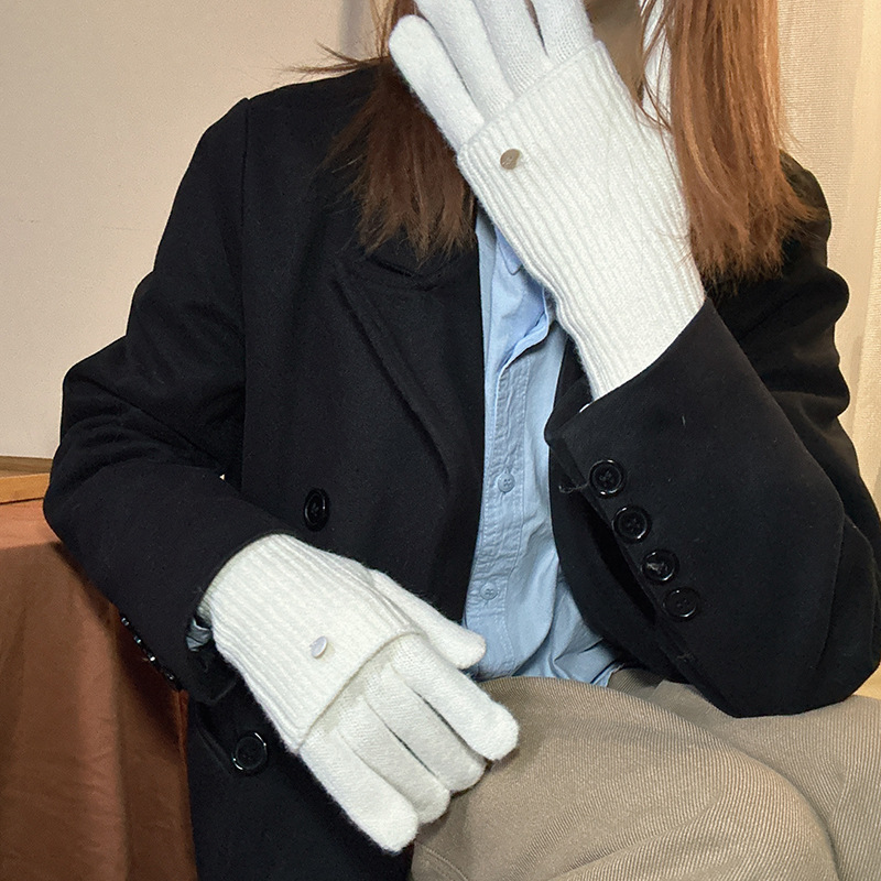 가을과 겨울에 ~ 길이 두께 조절 가능한 장갑 여성의 니트 두꺼운 따뜻한 손가락 터치 스크린 울