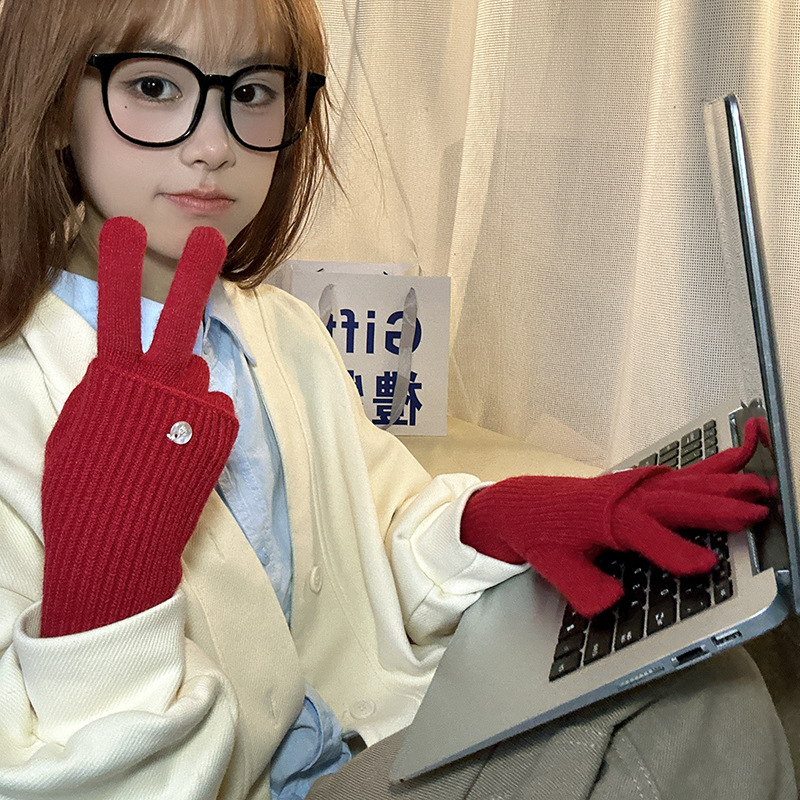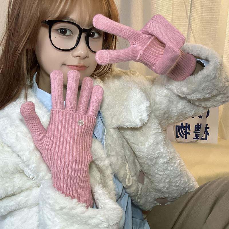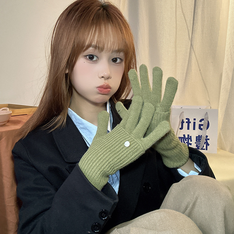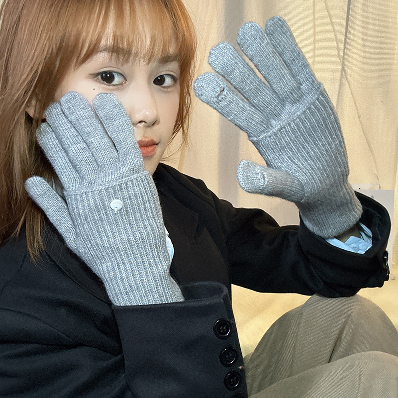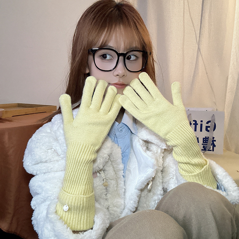 가을과 겨울에 ~ 길이 두께 조절 가능한 장갑 여성의 니트 두꺼운 따뜻한 손가락 터치 스크린 울스토어 가기