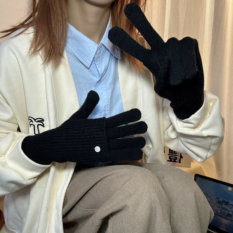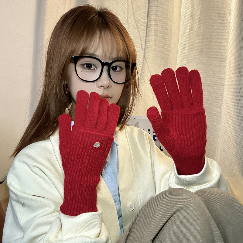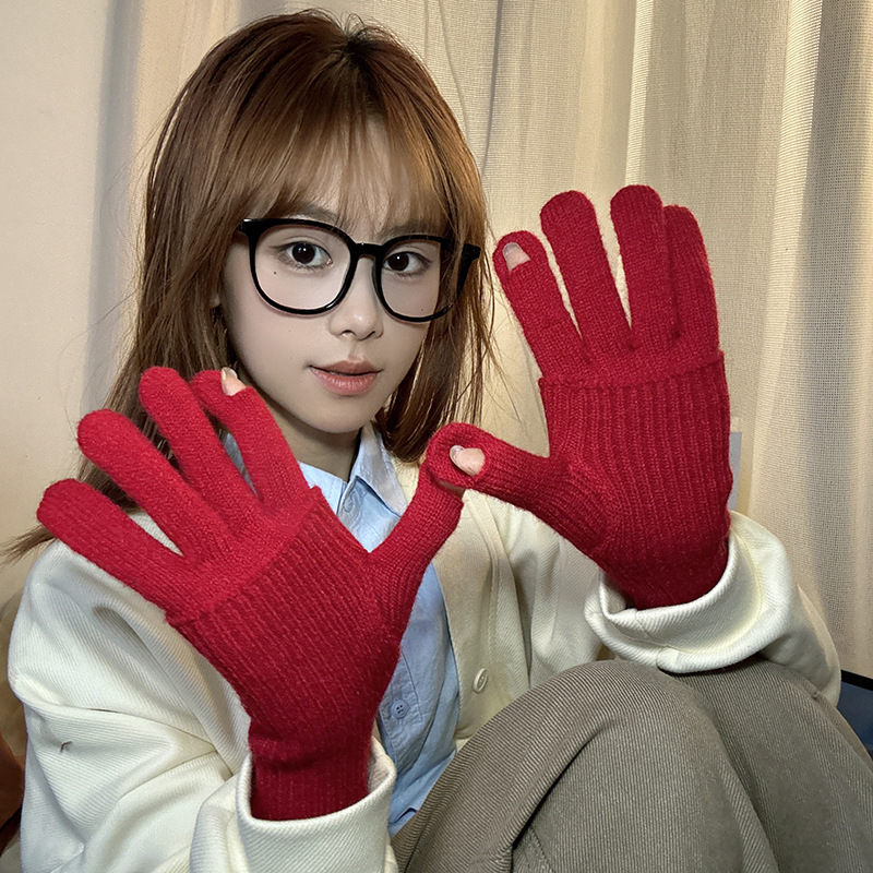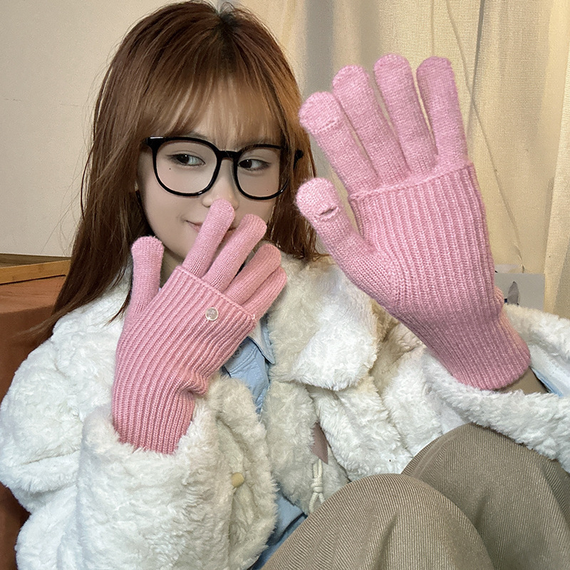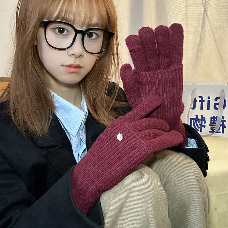 가을과 겨울에 ~ 길이 두께 조절 가능한 장갑 여성의 니트 두꺼운 따뜻한 손가락 터치 스크린 울스토어 가기
