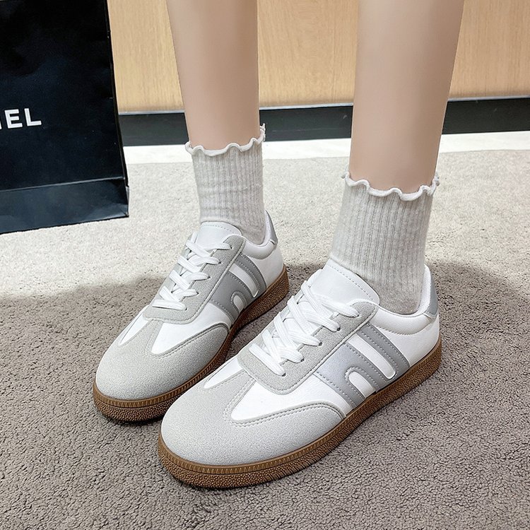 대외 무역 작은 흰색 신발 2024 가을과 겨울 새로운 둥근 머리 색상 일치 플러스 사이즈 여성 신발 포레스트 검프 신발 복고풍 트렌드 캐주얼 신발 여성스토어 가기