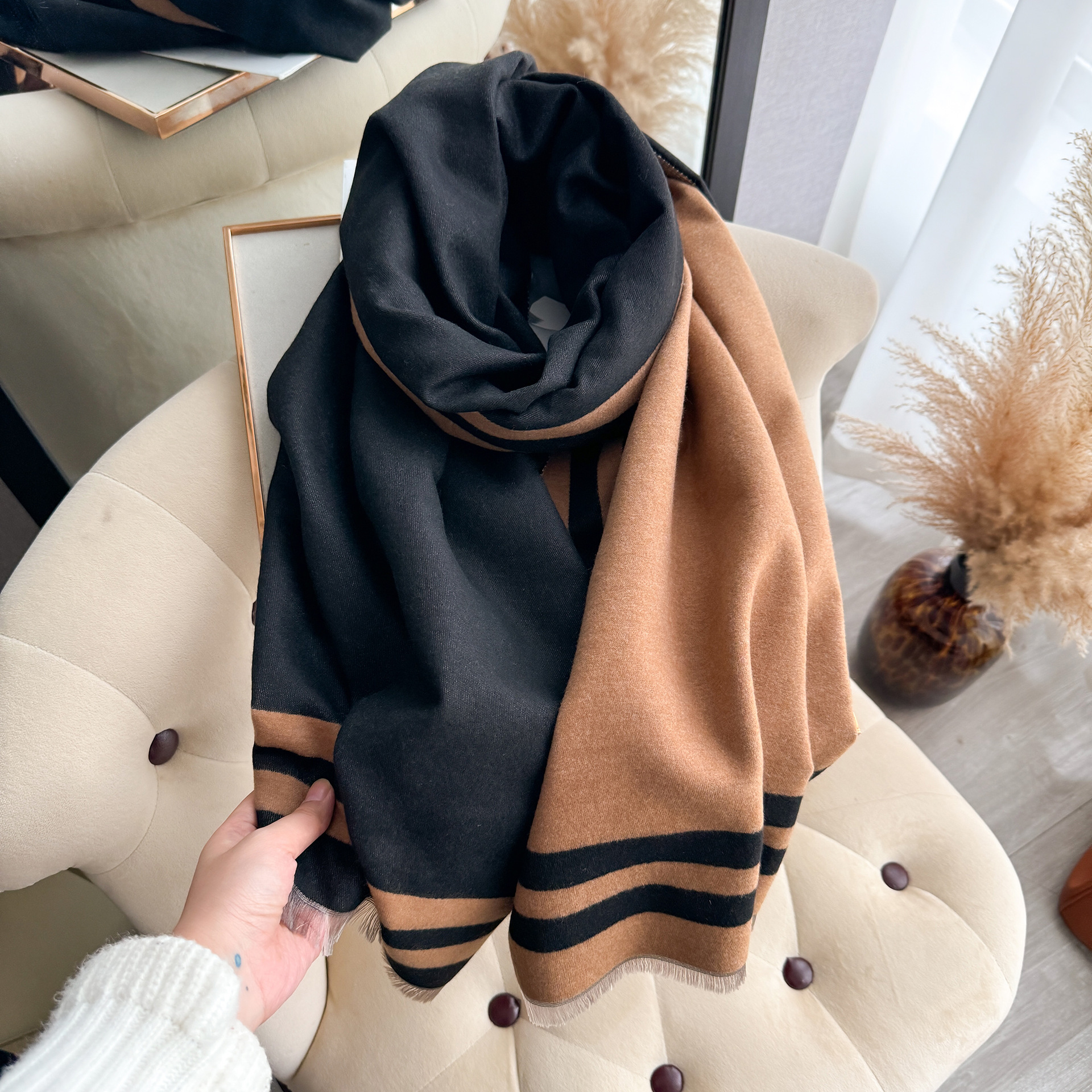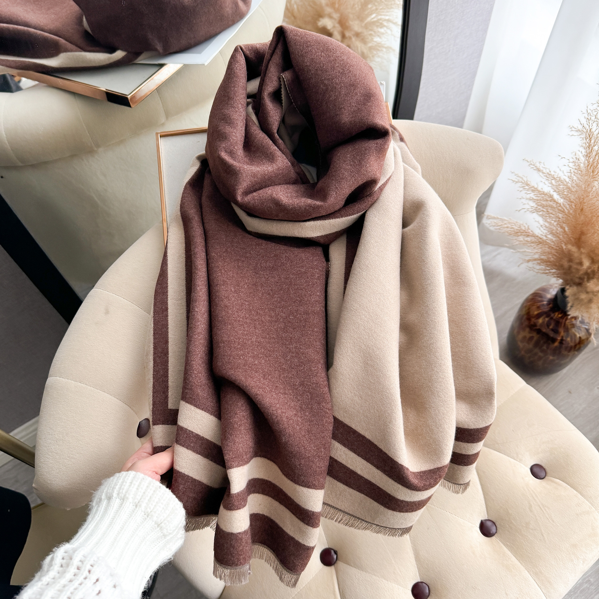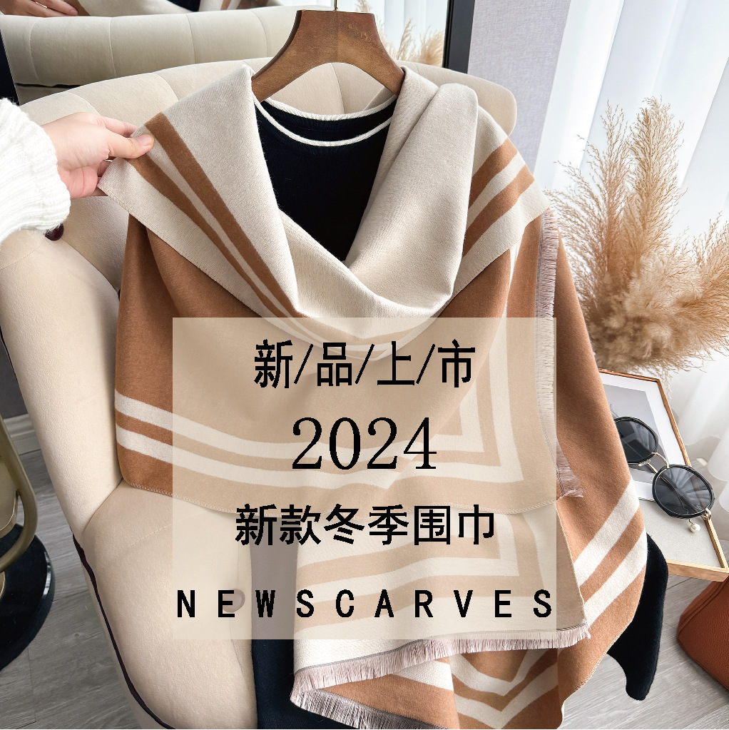 가을과 겨울 간단한 부드러운 자카드 두꺼운 따뜻한 스카프 여성의 우아한 올 매치 양면 대비 색상 목도리 방탄 스카프스토어 가기