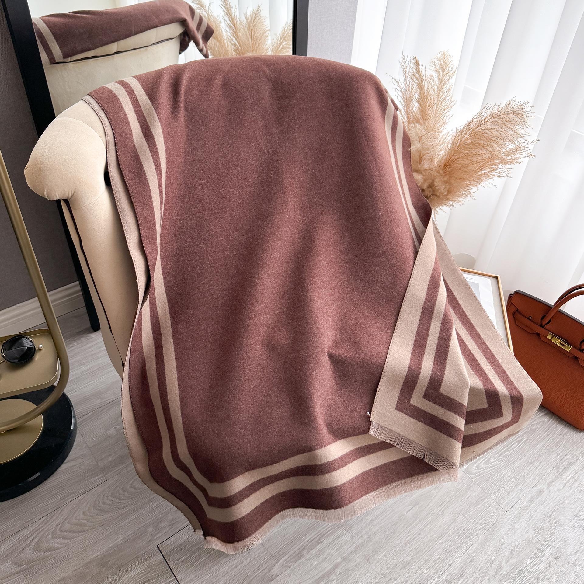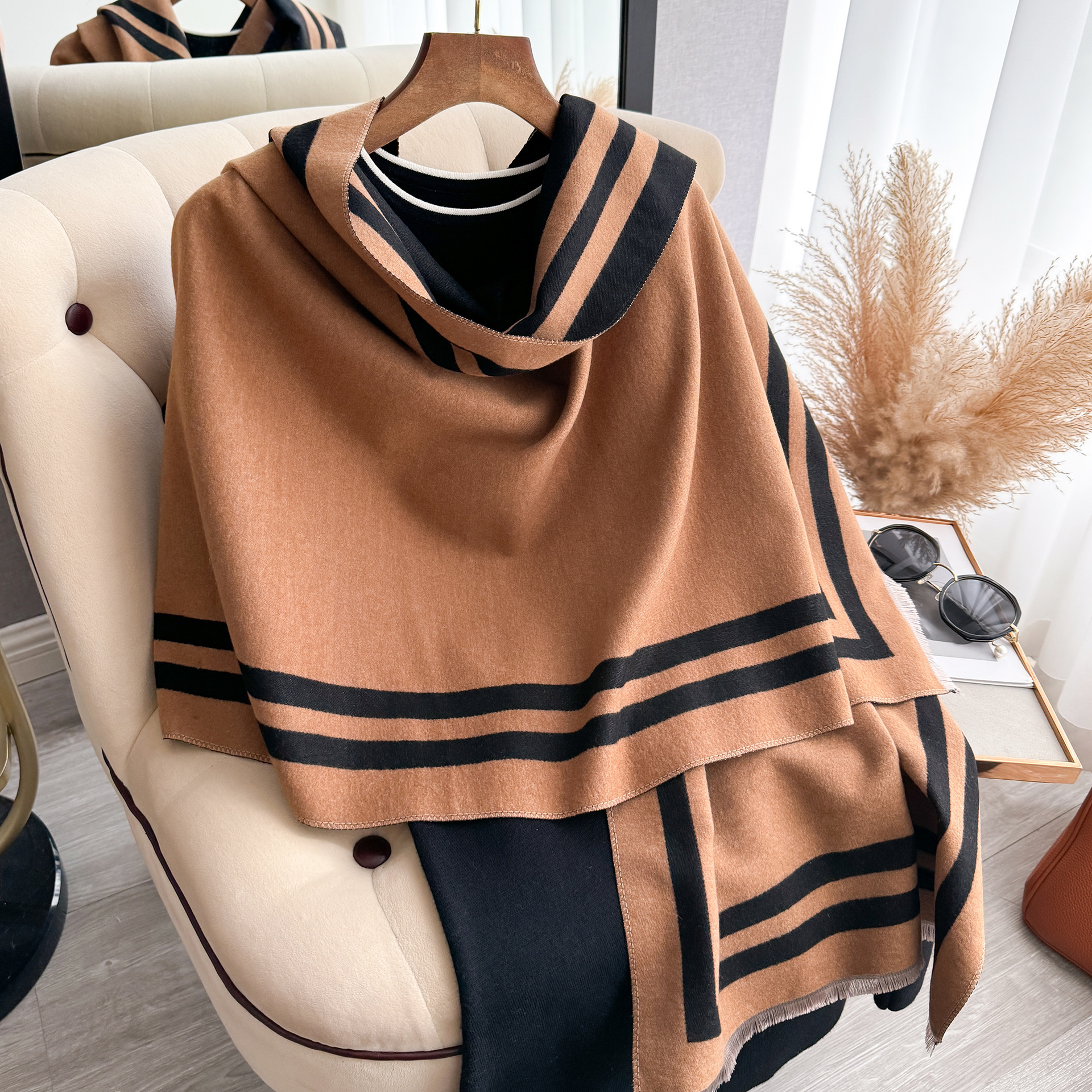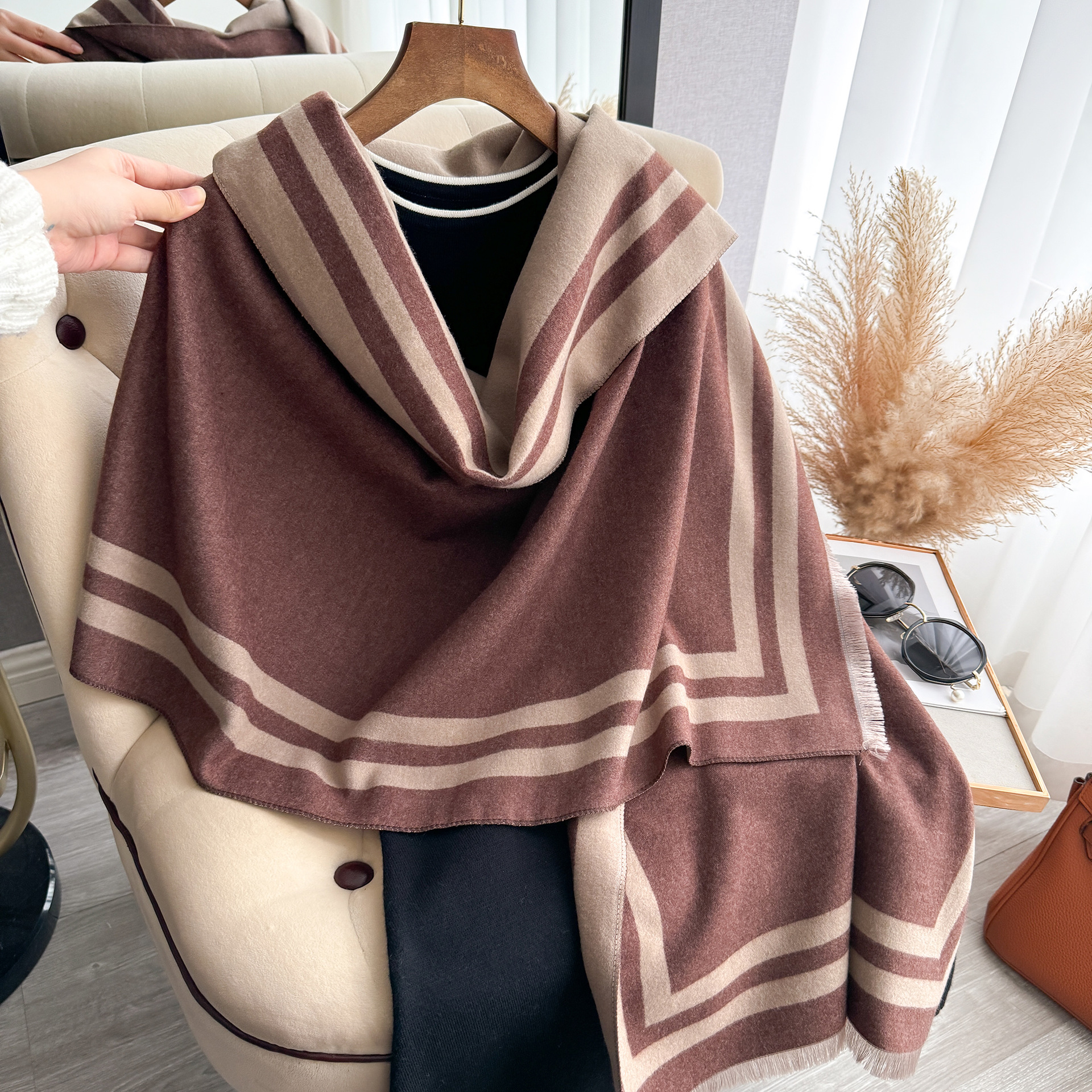가을과 겨울 간단한 부드러운 자카드 두꺼운 따뜻한 스카프 여성의 우아한 올 매치 양면 대비 색상 목도리 방탄 스카프스토어 가기