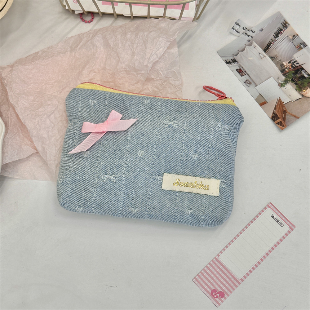 410211 한국 수 놓은 활 데님 동전 지갑 열쇠 저장 가방 카드 가방 작은 마무리스토어 가기