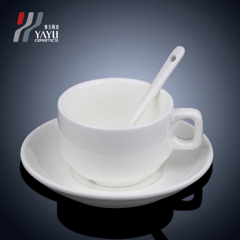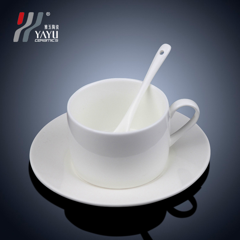 고급스러운 창의적인 도매 세라믹 커피 컵과 접시 세트 가정용 식기 간단한 순수한 흰색 대외 무역 선물 사무실