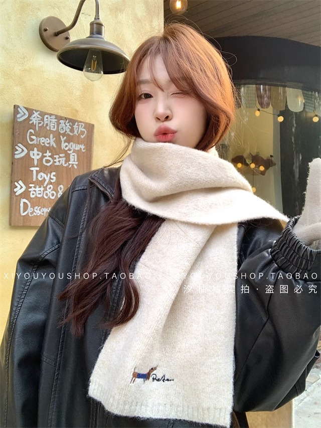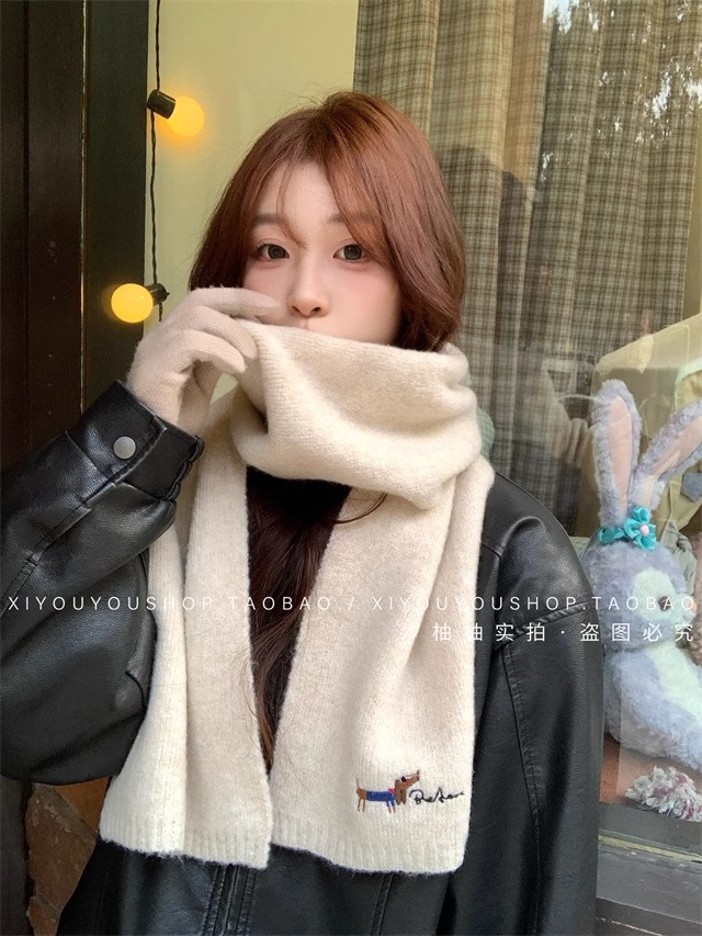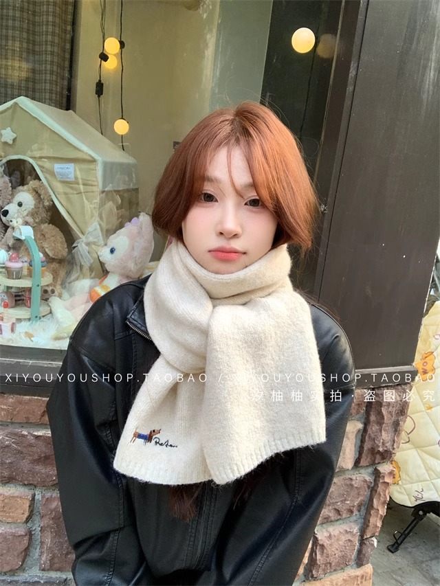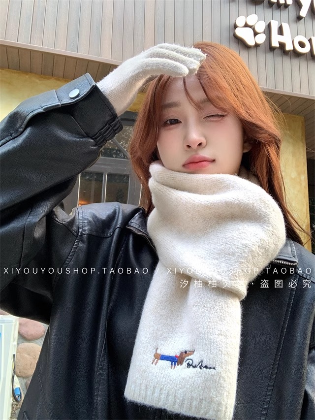 2024 개 자수 양모 니트 스카프 여성의 가을과 겨울 따뜻한 올 매치 학생 커플 울 목 남성 패션스토어 가기