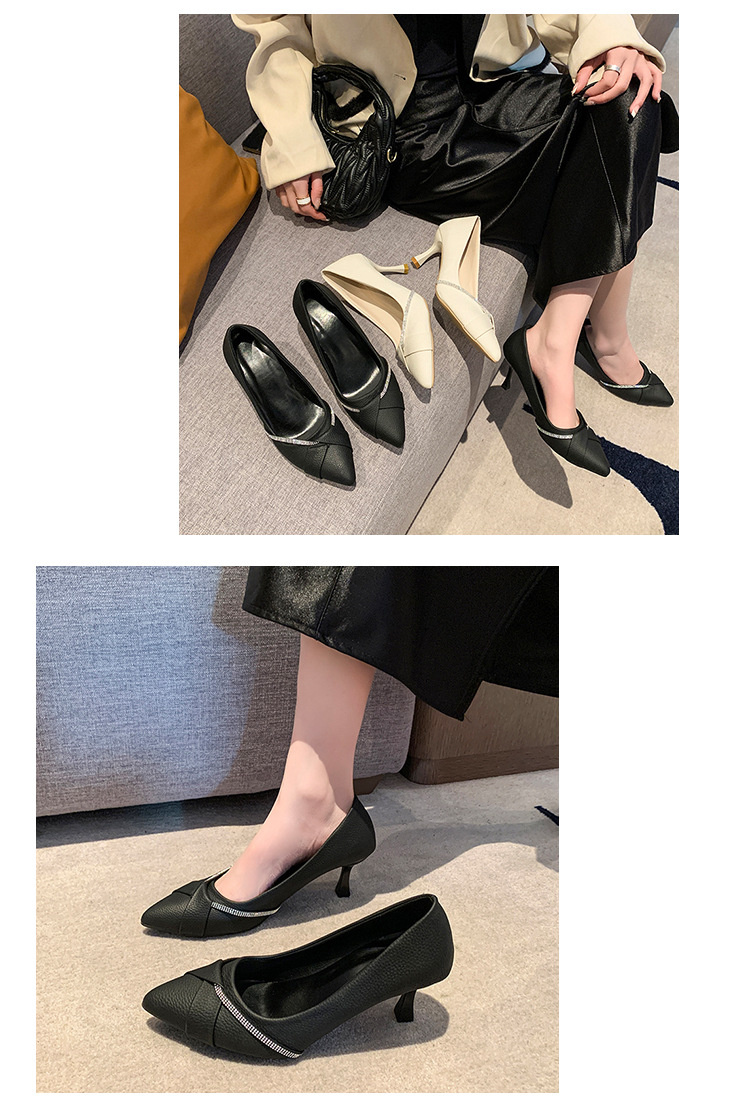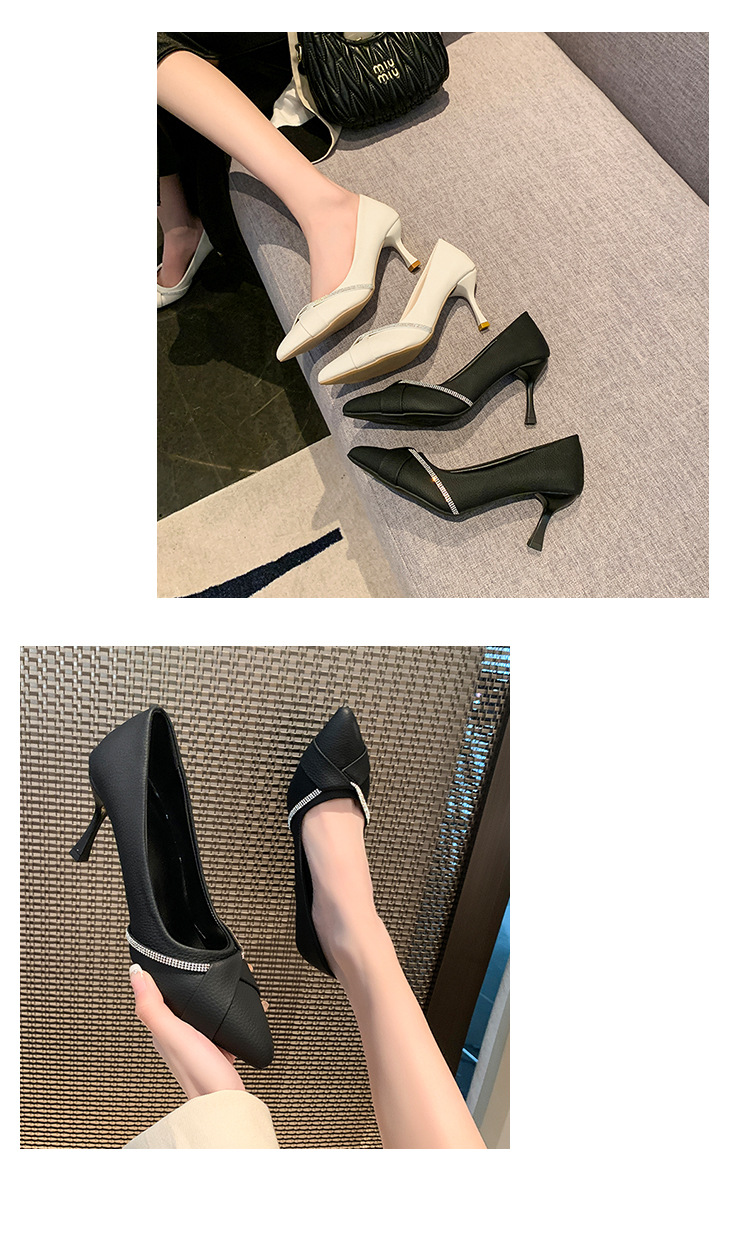 다재다능한 인터넷 연예인 신발 2025 봄 여름 새로운 섹시한 스틸레토 뾰족한 발가락 라인스톤 펌프스 여성용 하이힐