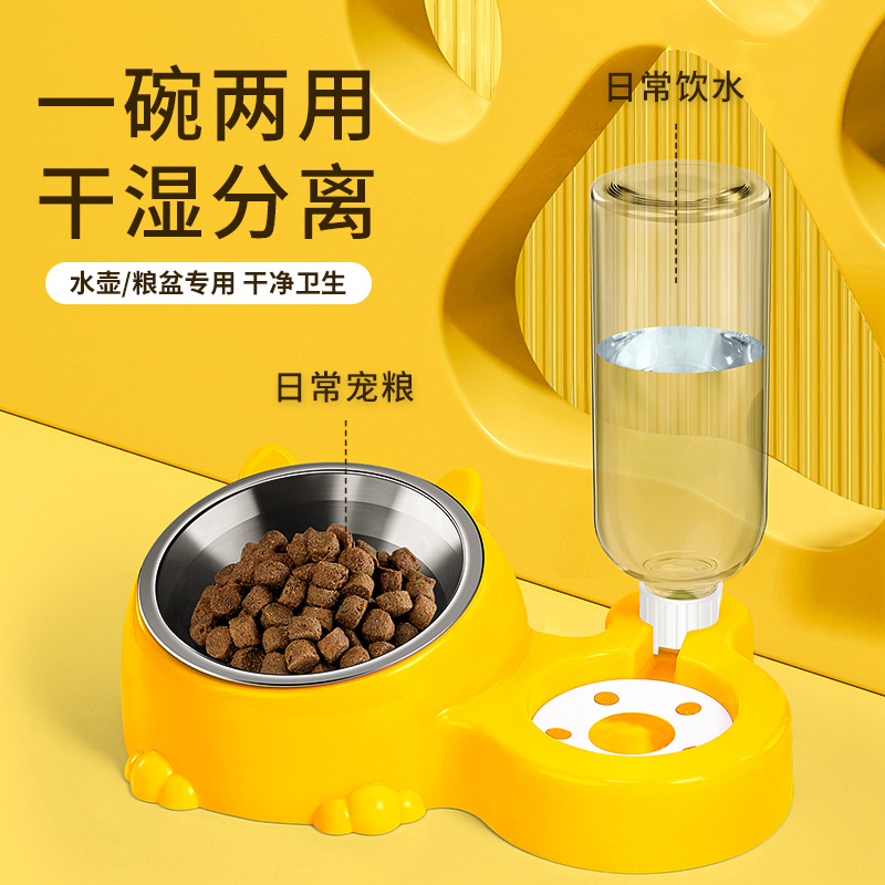 고양이 그릇 자동 물 디스펜서 새끼 고양이 마시는 물 먹는 통합 스테인리스 쌀 분지 고양이 용품 쌀 그릇
