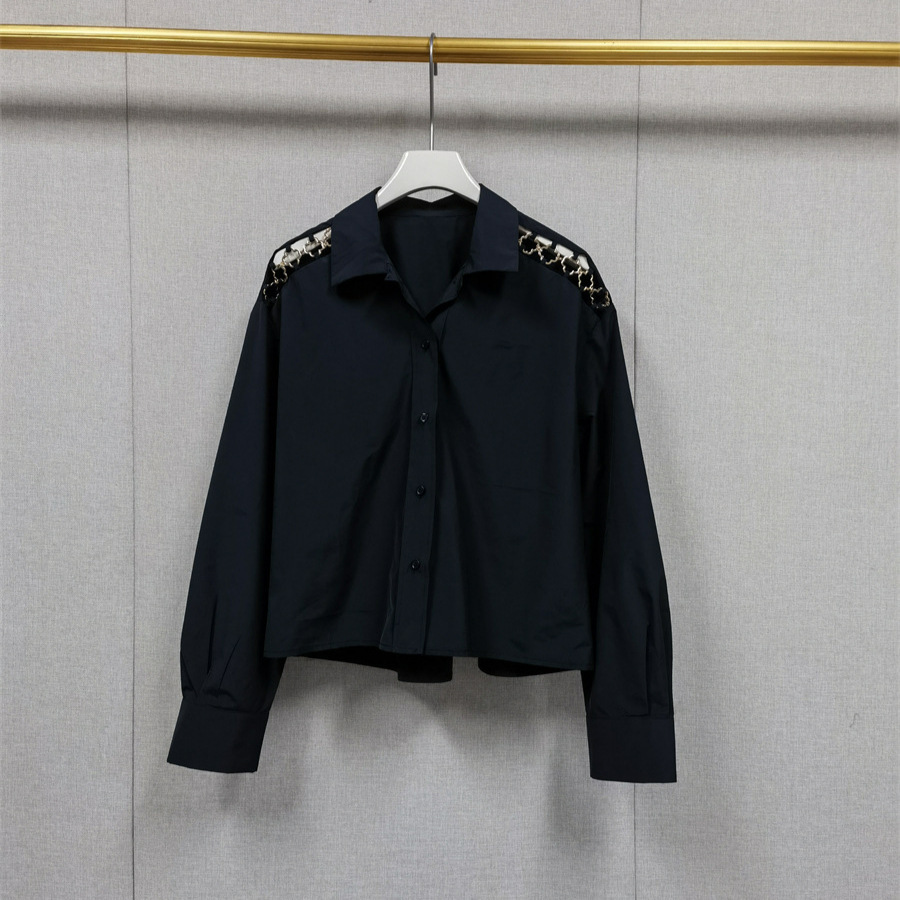 프랑스 틈새 2024 초가을 새 어깨 금속 중공 장식 단색 긴 소매 느슨한 셔츠스토어 가기
