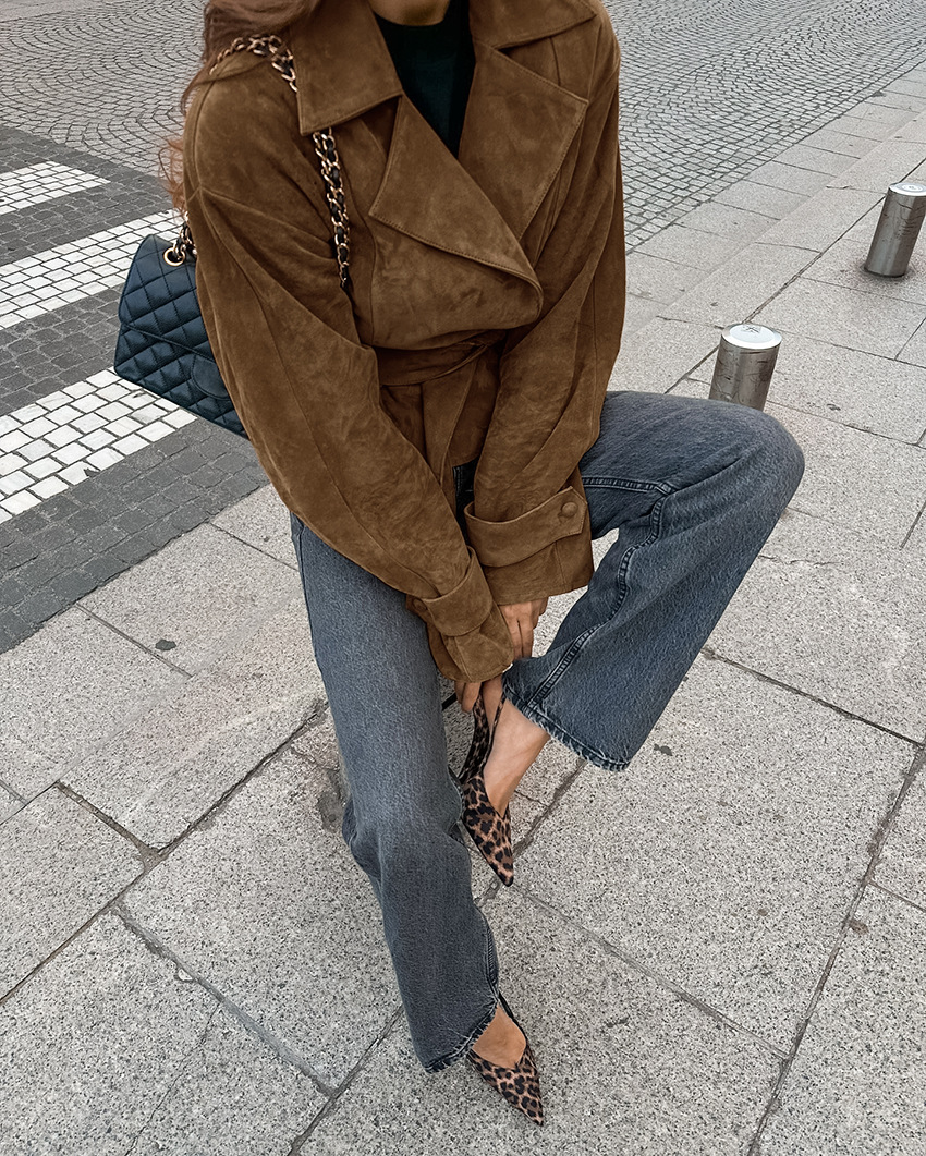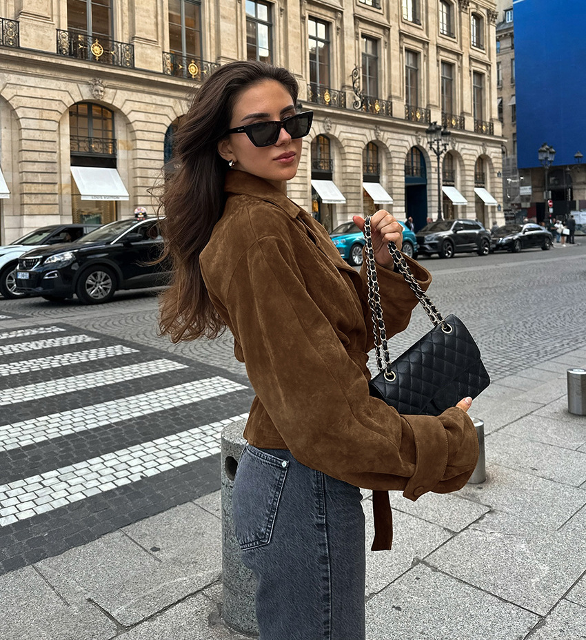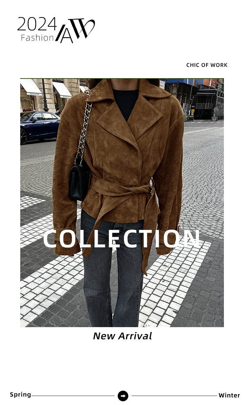 프렌치 스웨이드 슈트 칼라 캐주얼 더블 브레스트 코트 2025 유럽과 미국의 가을 겨울 패션 신상 반투명 벨벳 코트스토어 가기