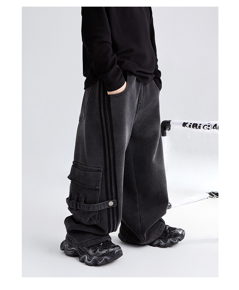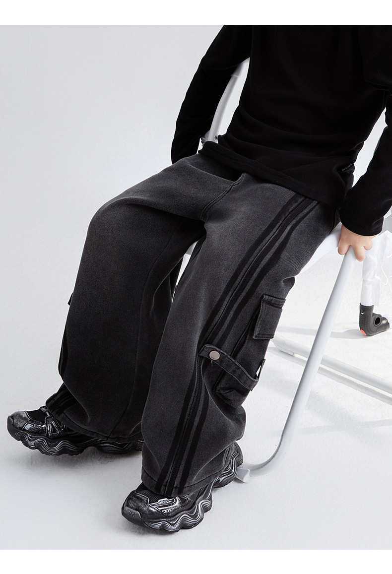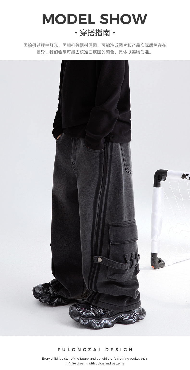 FULONGZAI 부모-자식 아동복 봄, 가을, 겨울 소년 소녀용 새로운 스타일 중대형 아동용 벨벳 두꺼운 패션 긴 바지