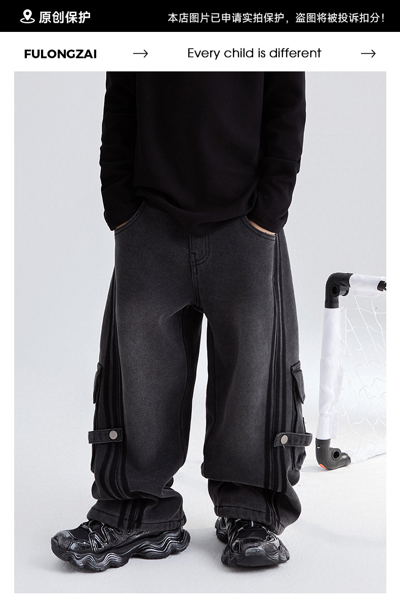 FULONGZAI 부모-자식 아동복 봄, 가을, 겨울 소년 소녀용 새로운 스타일 중대형 아동용 벨벳 두꺼운 패션 긴 바지스토어 가기