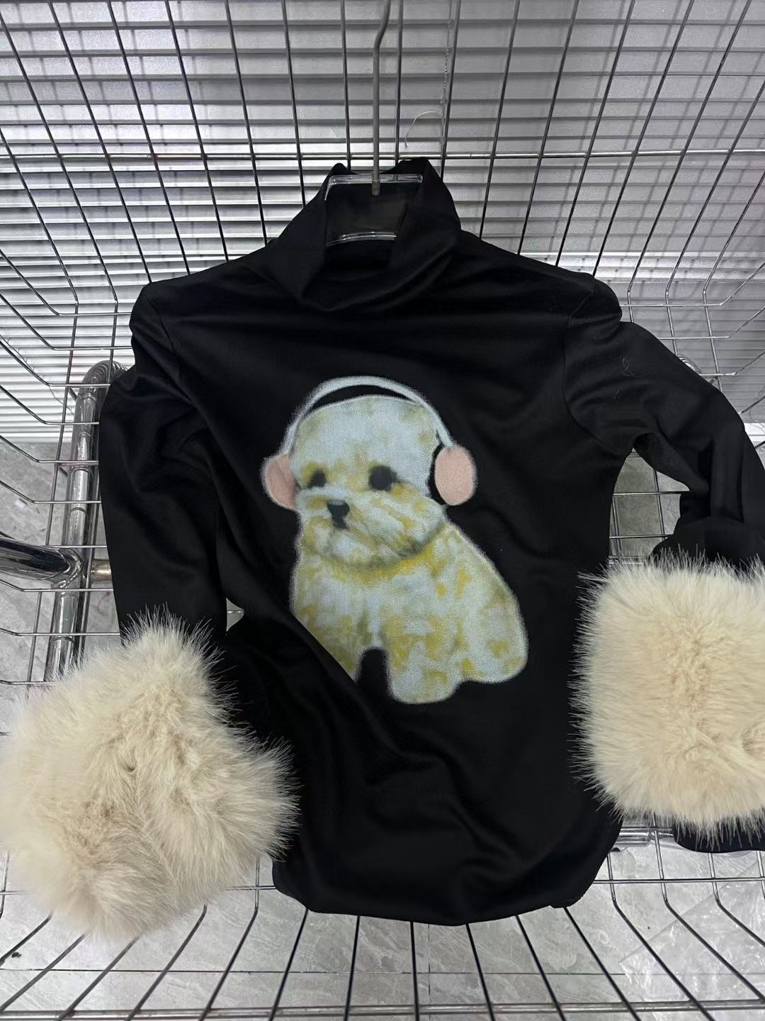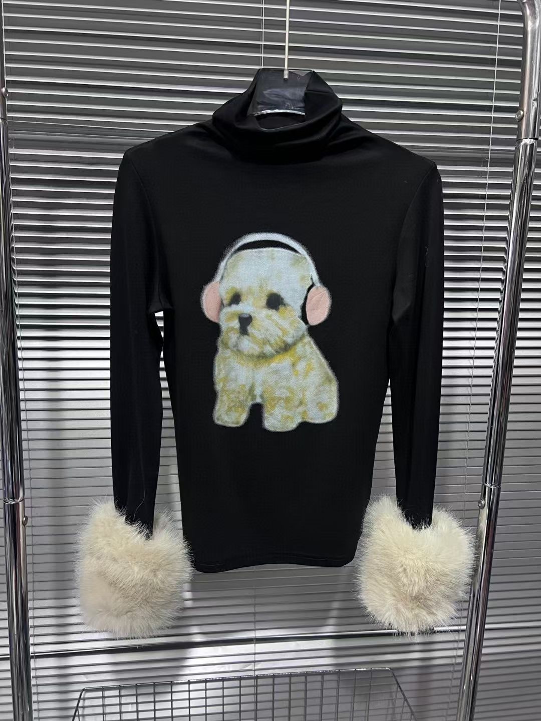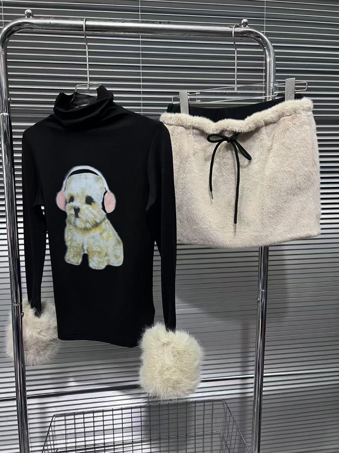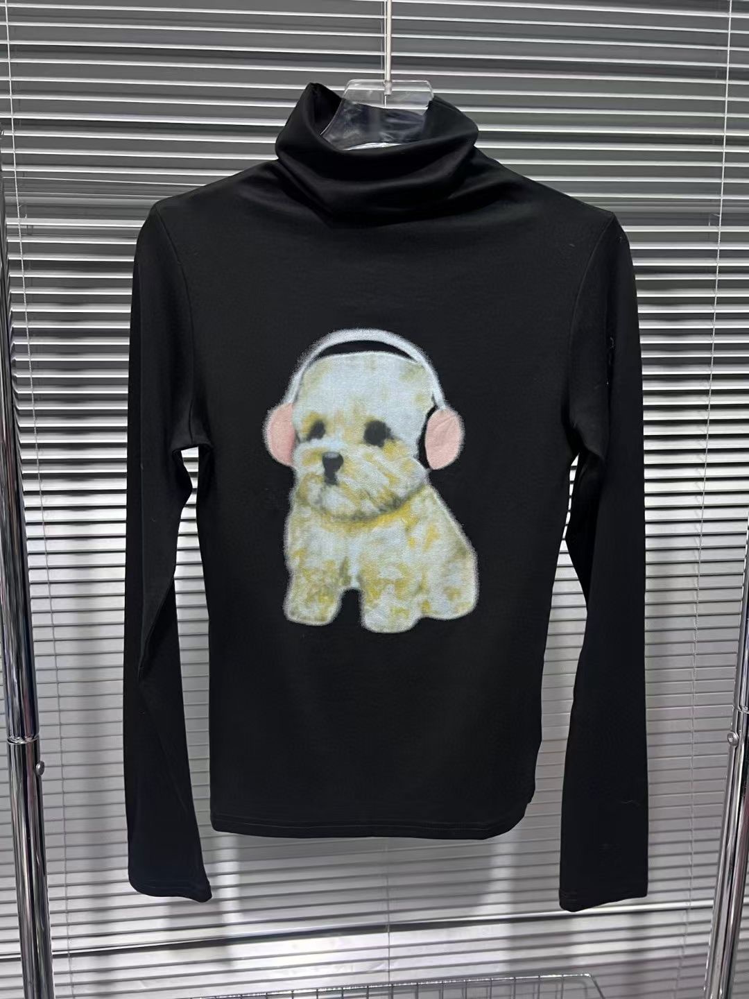 달콤한 향신료 소녀 귀여운 개 인쇄 높은 목 긴 소매 티셔츠 여성의 가을 봉제 엉덩이 스커트 투피스 세트