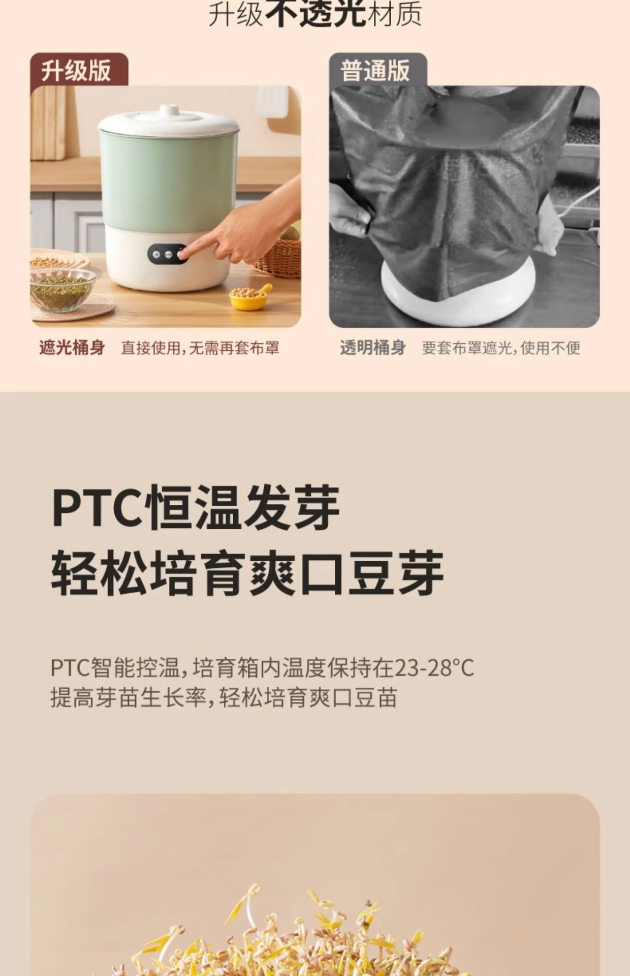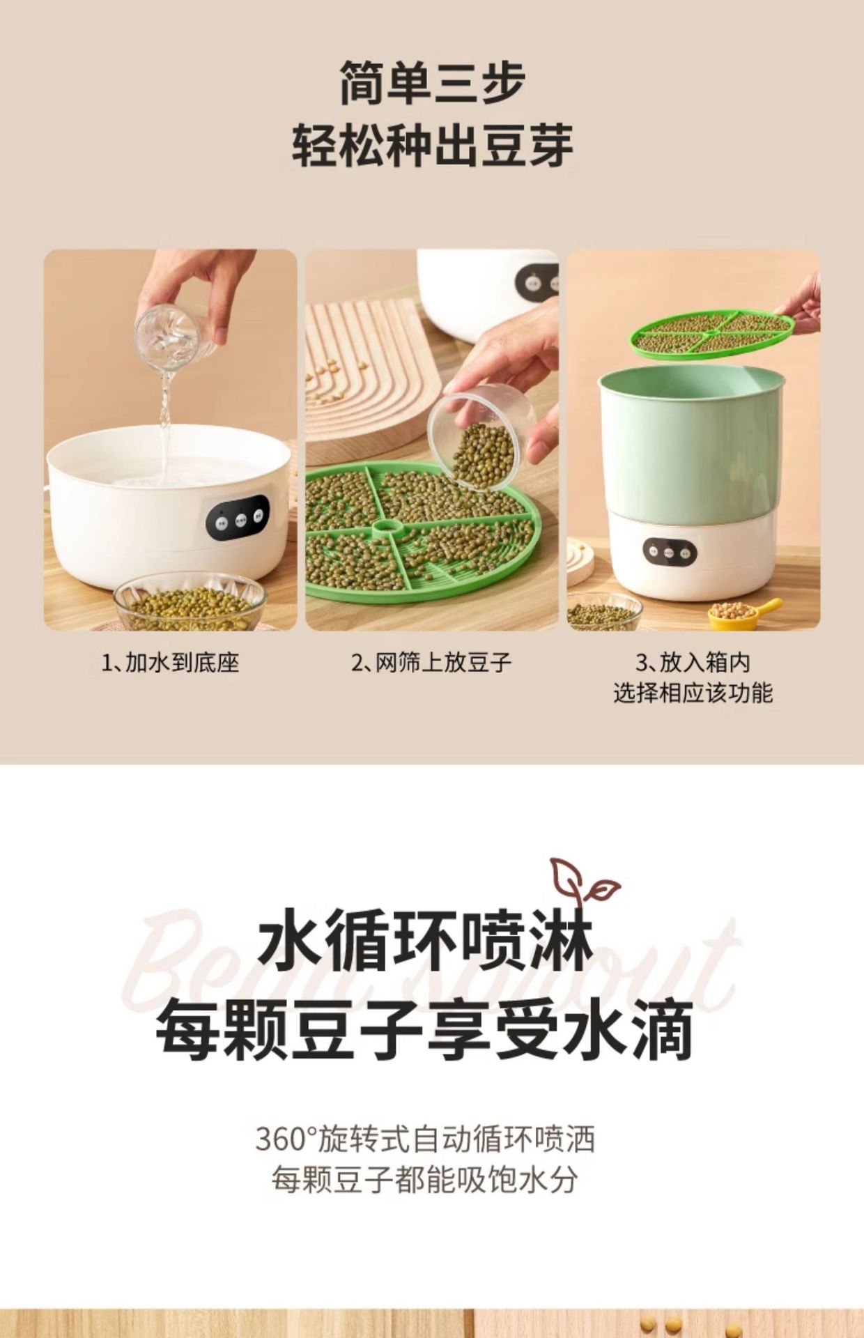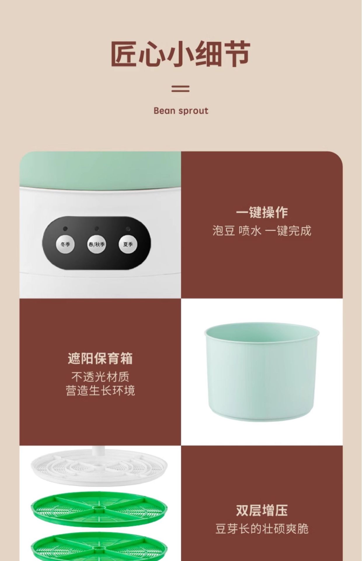 콩 콩나물 기계 자동 가정용 지능형 콩나물 기계 대용량 발아 기계 수제 작은 녹두 새싹 묘목 관개 냄비스토어 가기