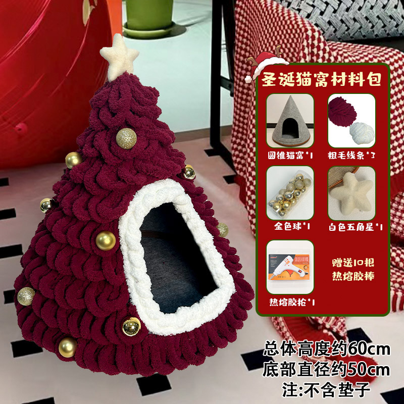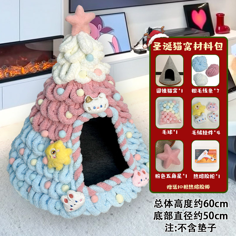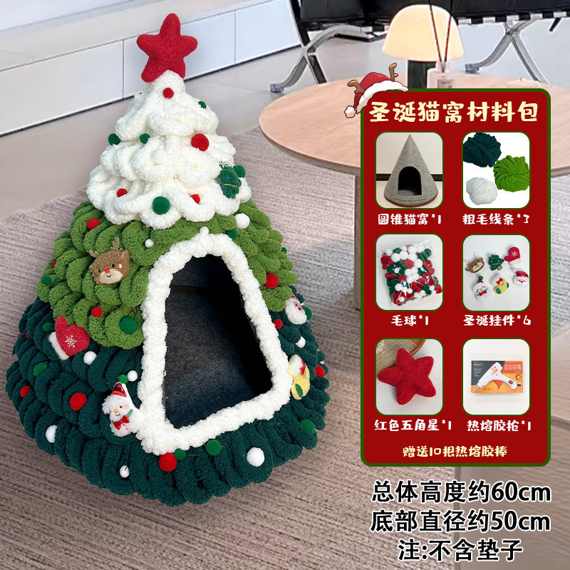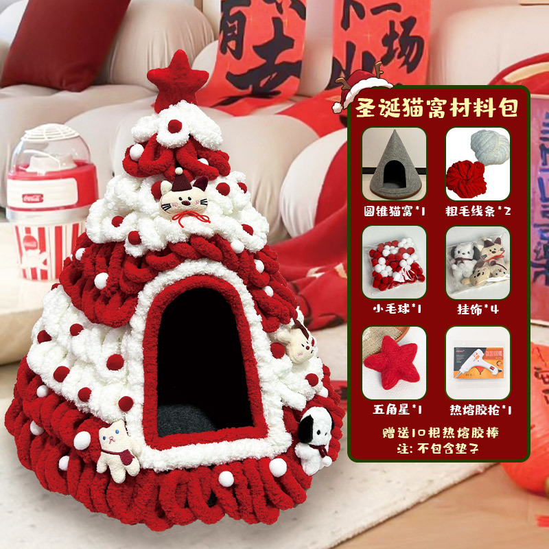 크리스마스 고양이집 강아지집 고양이 빌라 고양이집 펠트 하우스 애완용품 겨울 매트 나무 구멍 겨울 DIY스토어 가기