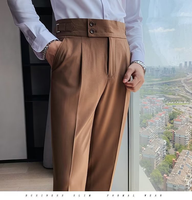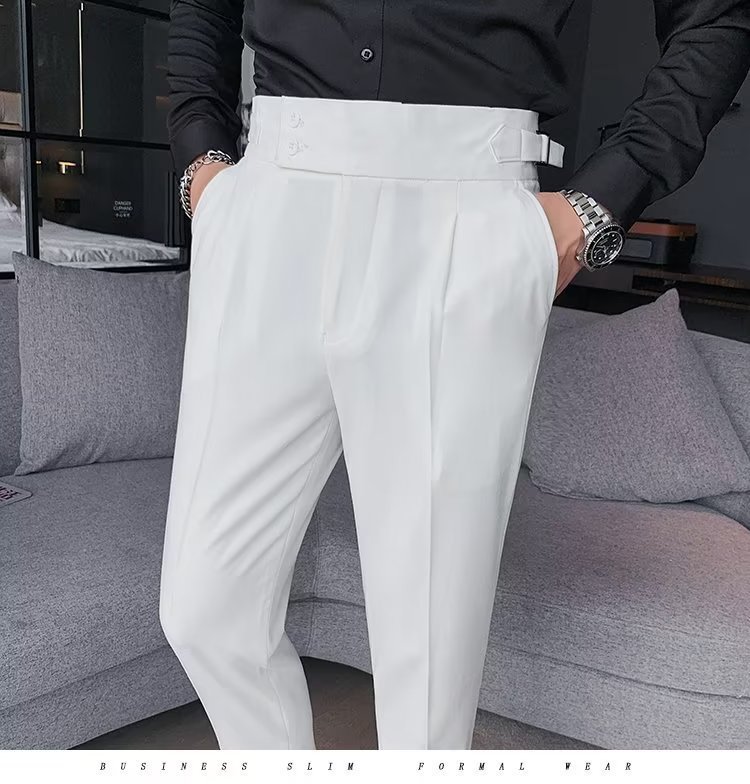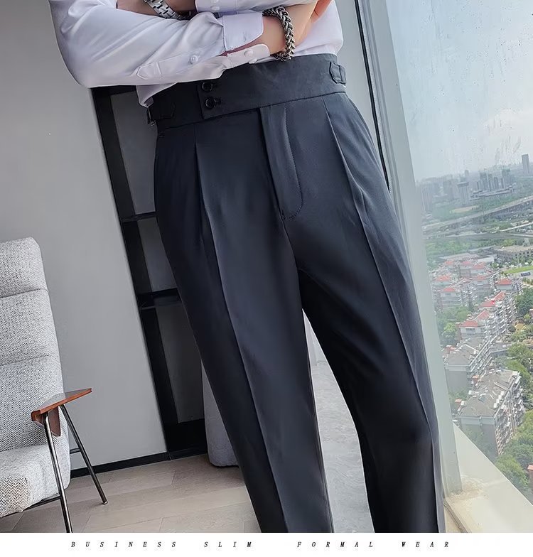 나폴리 바지 남성 한국식 슬림 핏 슬리퍼 가을 빈티지 하이 허리 비즈니스 솔리드 컬러 스트레이트 캐주얼 바지
