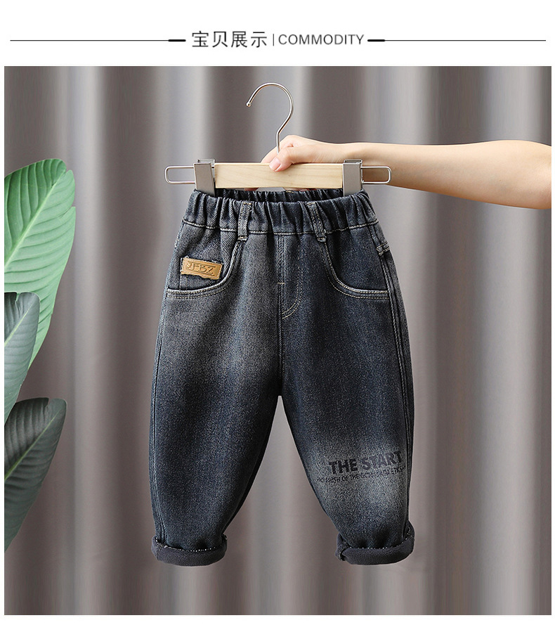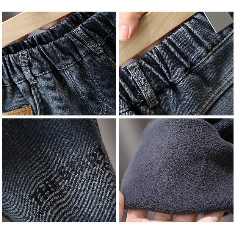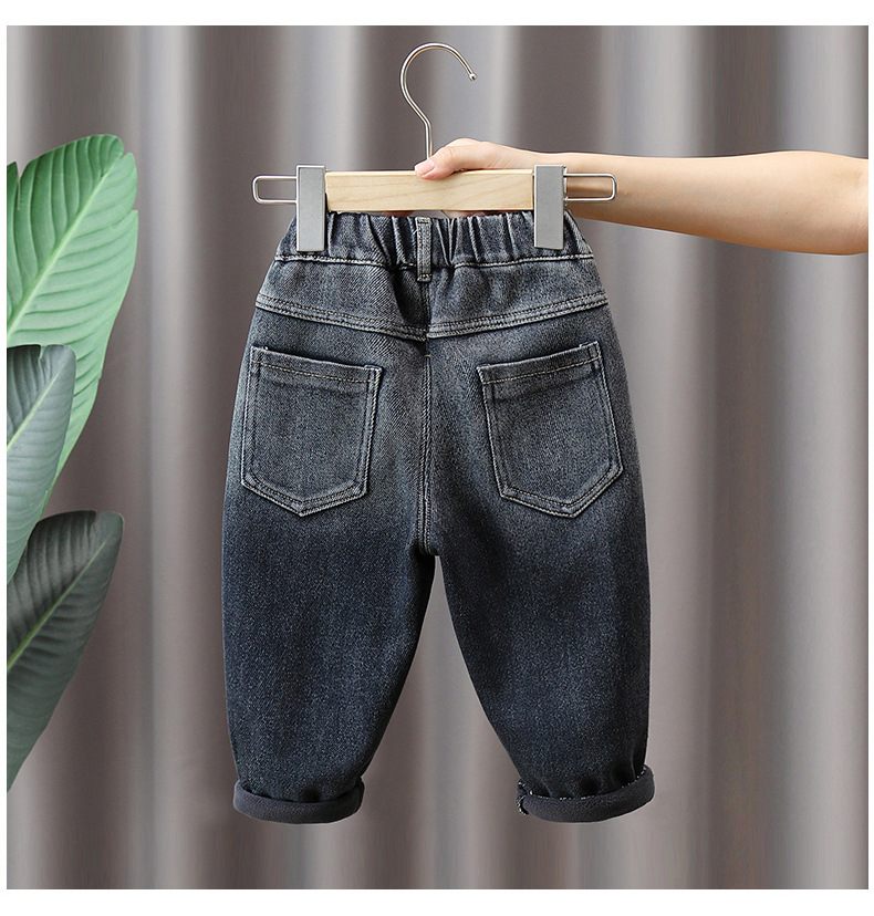소년의 겨울 기모 바지 2024 새로운 어린이 원피스 양털 청바지 두꺼운 아기 따뜻한 면 바지 서양식스토어 가기