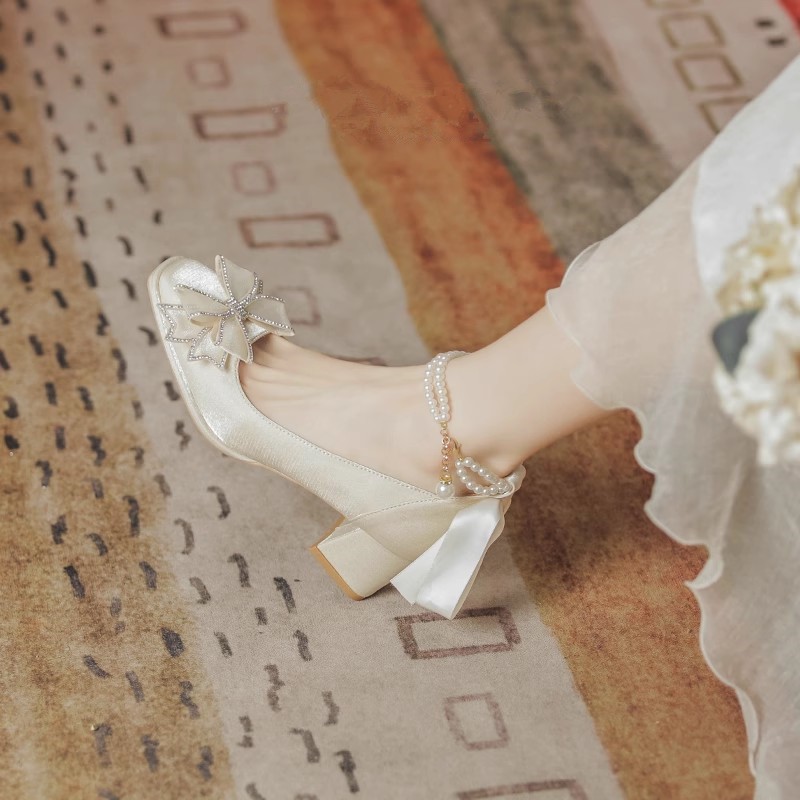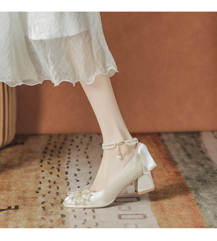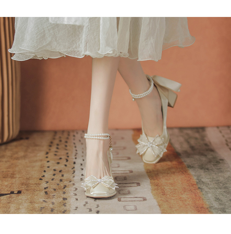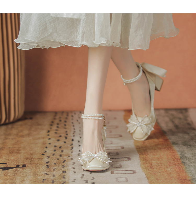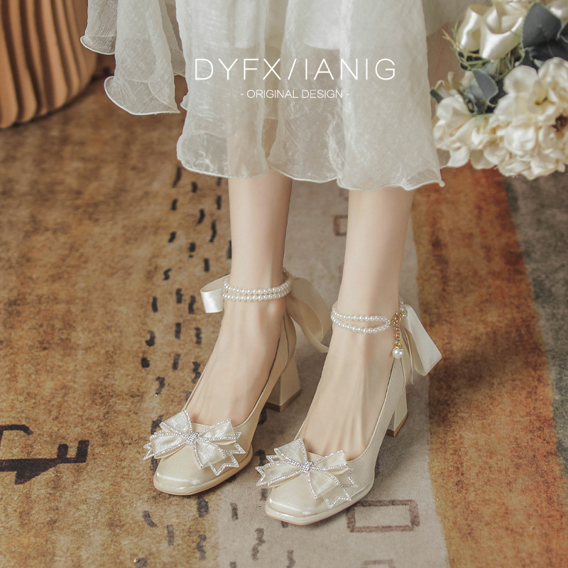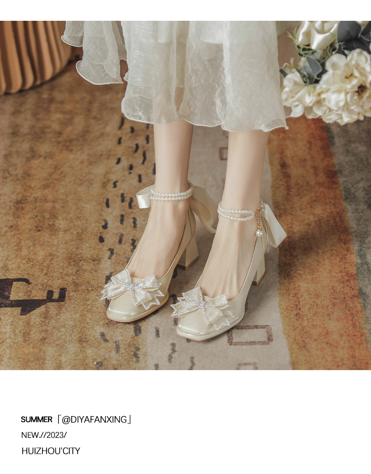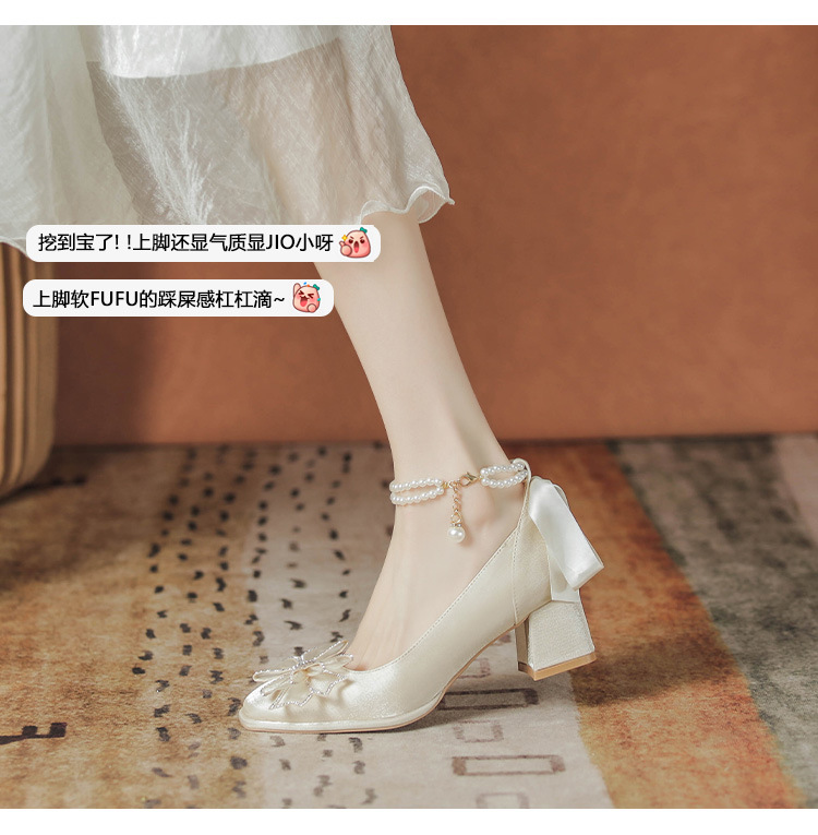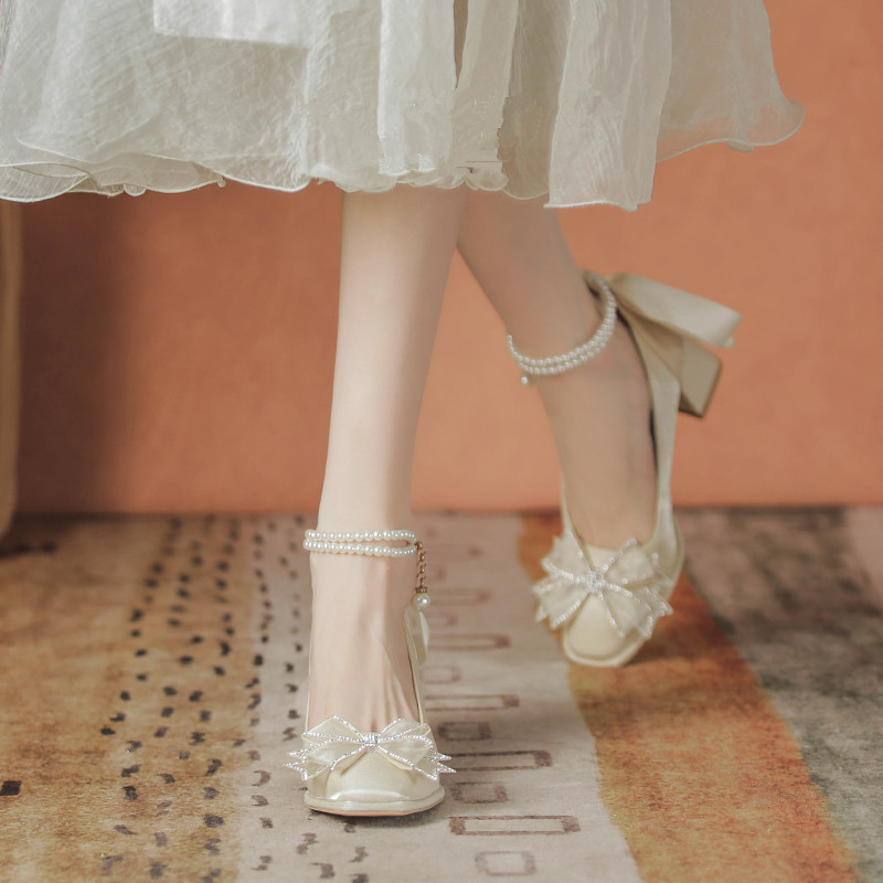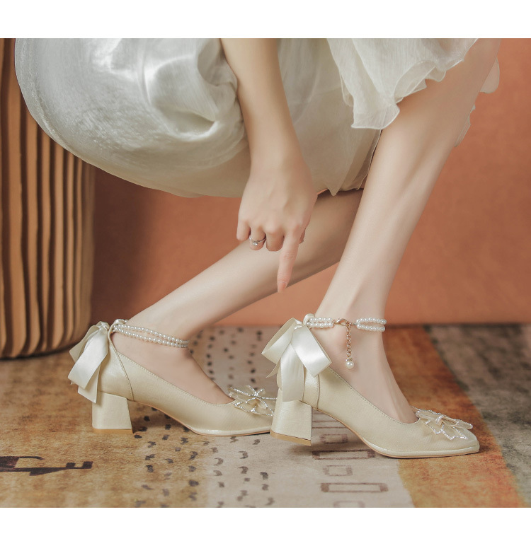 페어리 스타일 두꺼운 힐 스퀘어 헤드 방수 플랫폼 여성용 하이힐 싱글 레이어 신발 프랑스 스타일 메리 제인 원피스 신부 들러리 신발 매일 착용