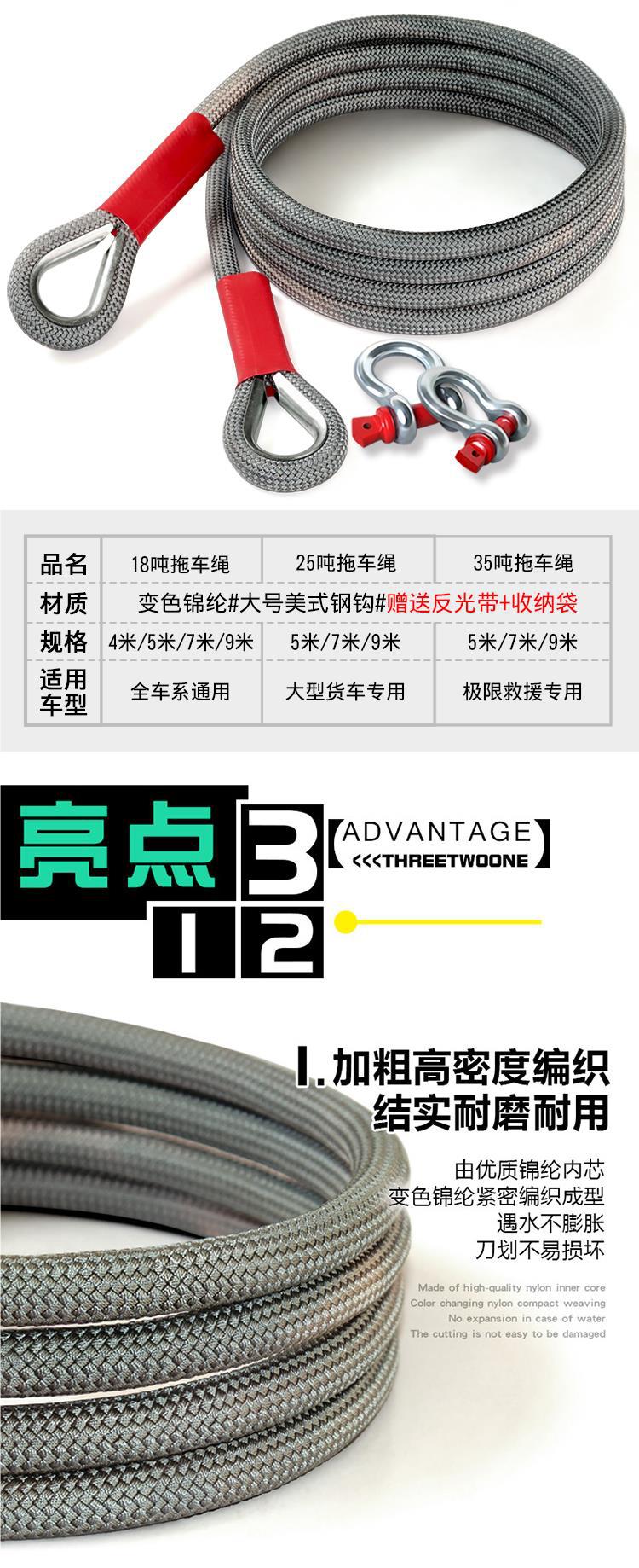• 7.18m 톤 [대형 미국식 강철 후크 + 반사 테이프 + 보관 가방] 모든 자동차 시리즈용 범용