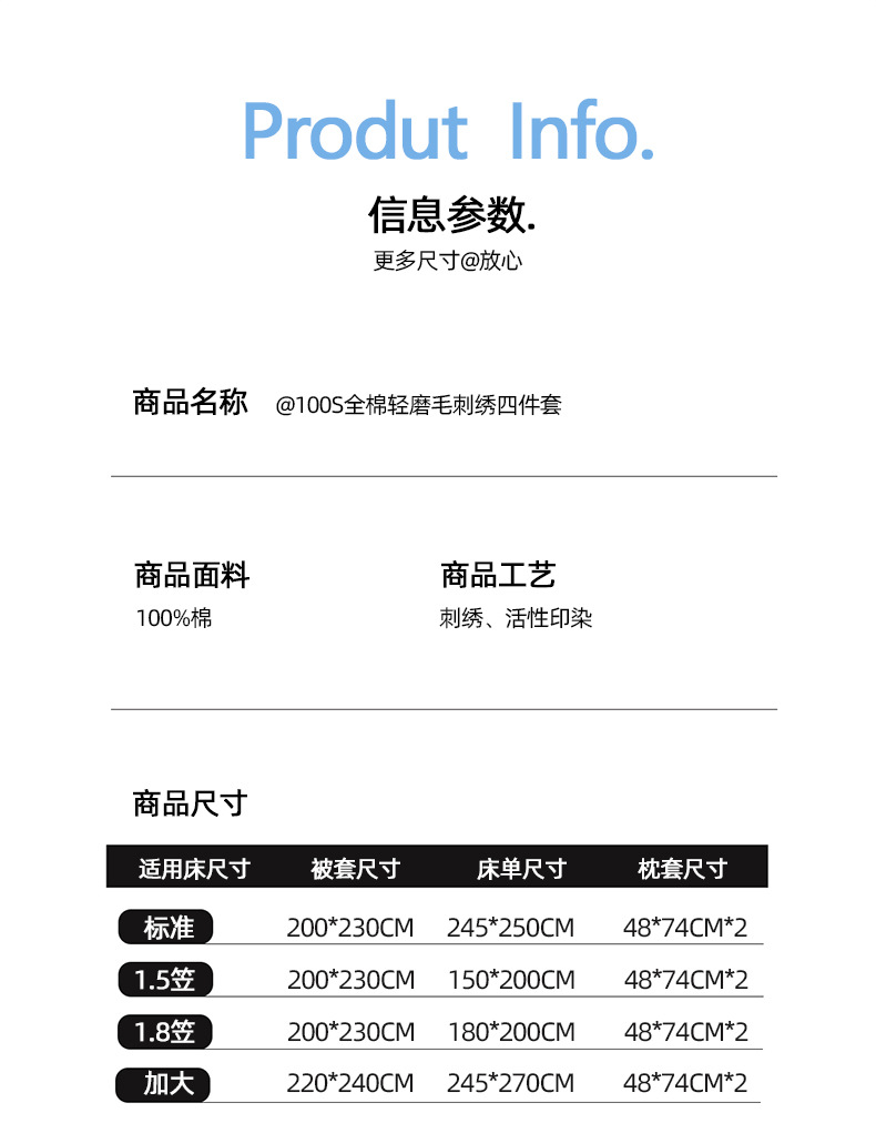 • 1.8m 매트리스 커버 4개 세트: 이불 커버 200*230cm, 매트리스 커버 180*200cm, 베갯잇 48*74cm 한 쌍