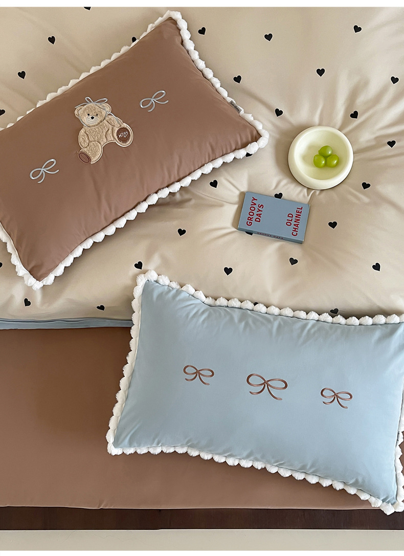 Ins Han Feng 100 pts 샌딩 코튼 4 피스 세트 두꺼운 그림 자수 인쇄 된 소녀의 심장 퀼트 커버 침구 클래스 A