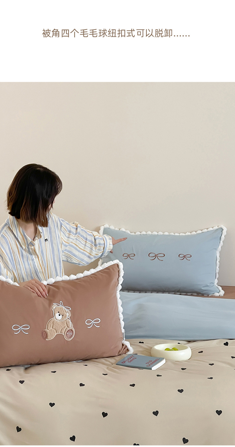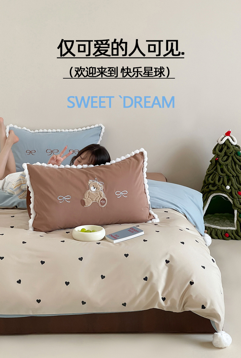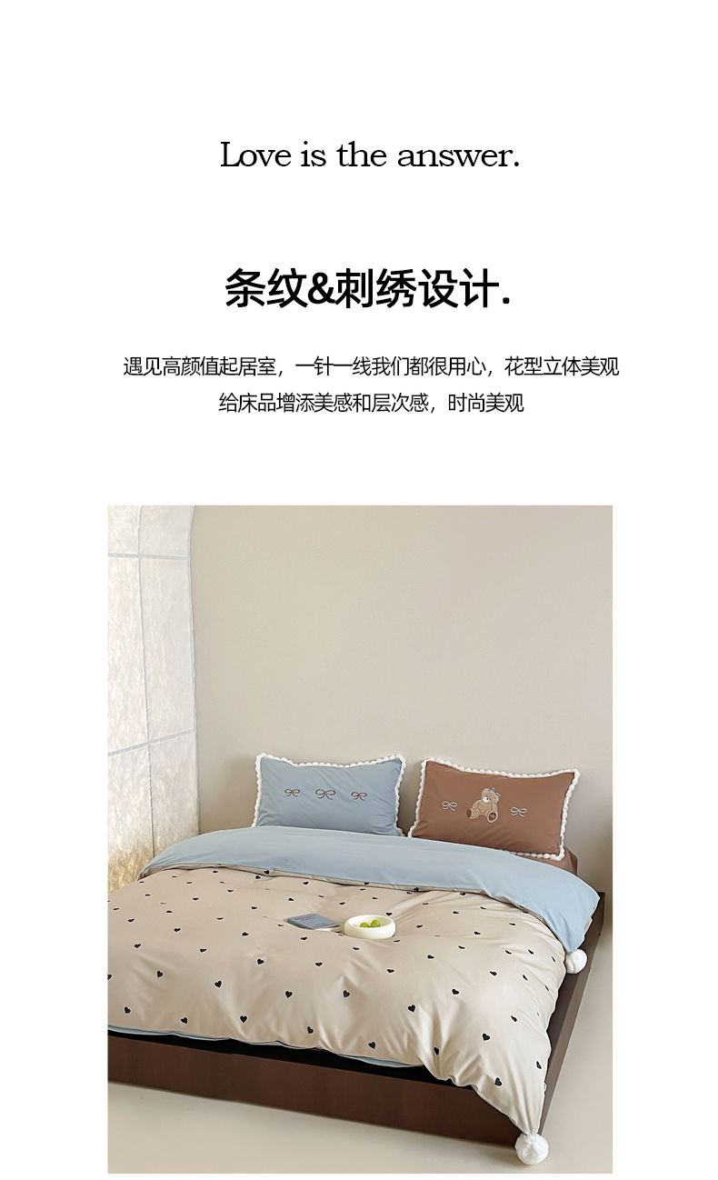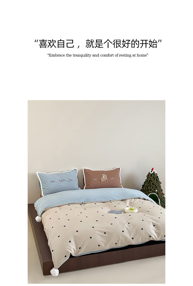 Ins Han Feng 100 pts 샌딩 코튼 4 피스 세트 두꺼운 그림 자수 인쇄 된 소녀의 심장 퀼트 커버 침구 클래스 A스토어 가기