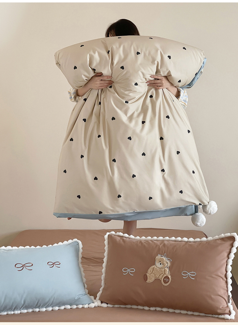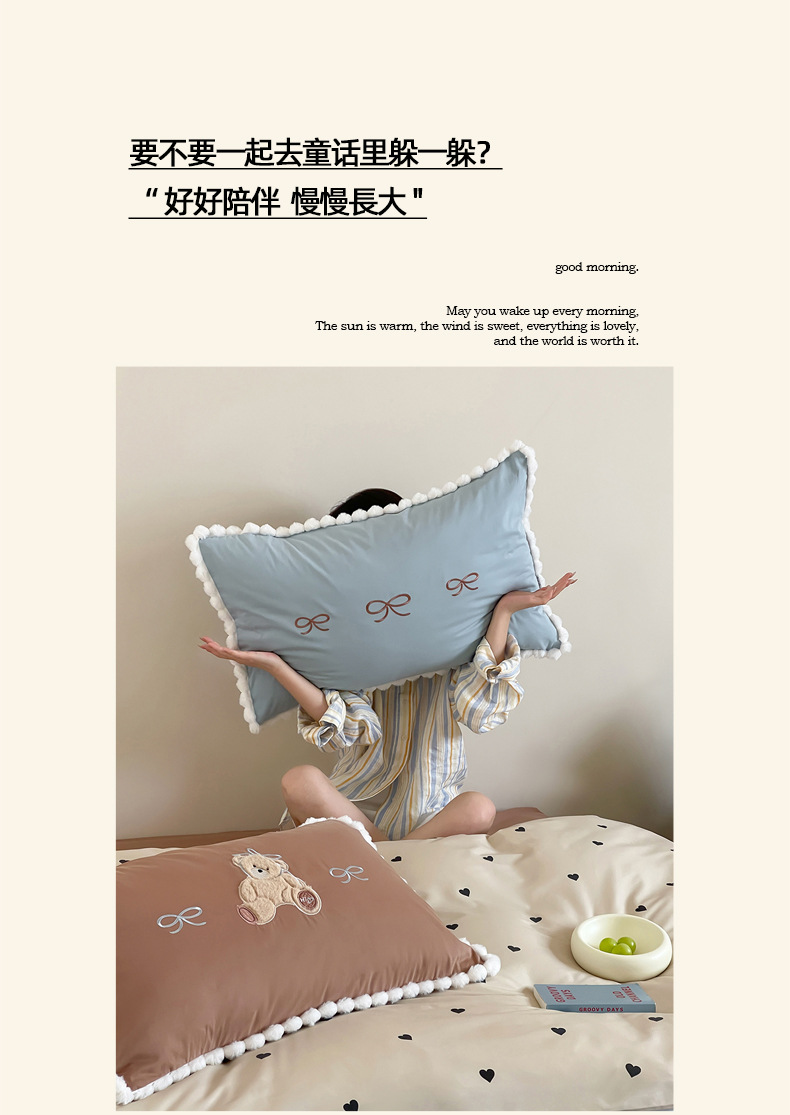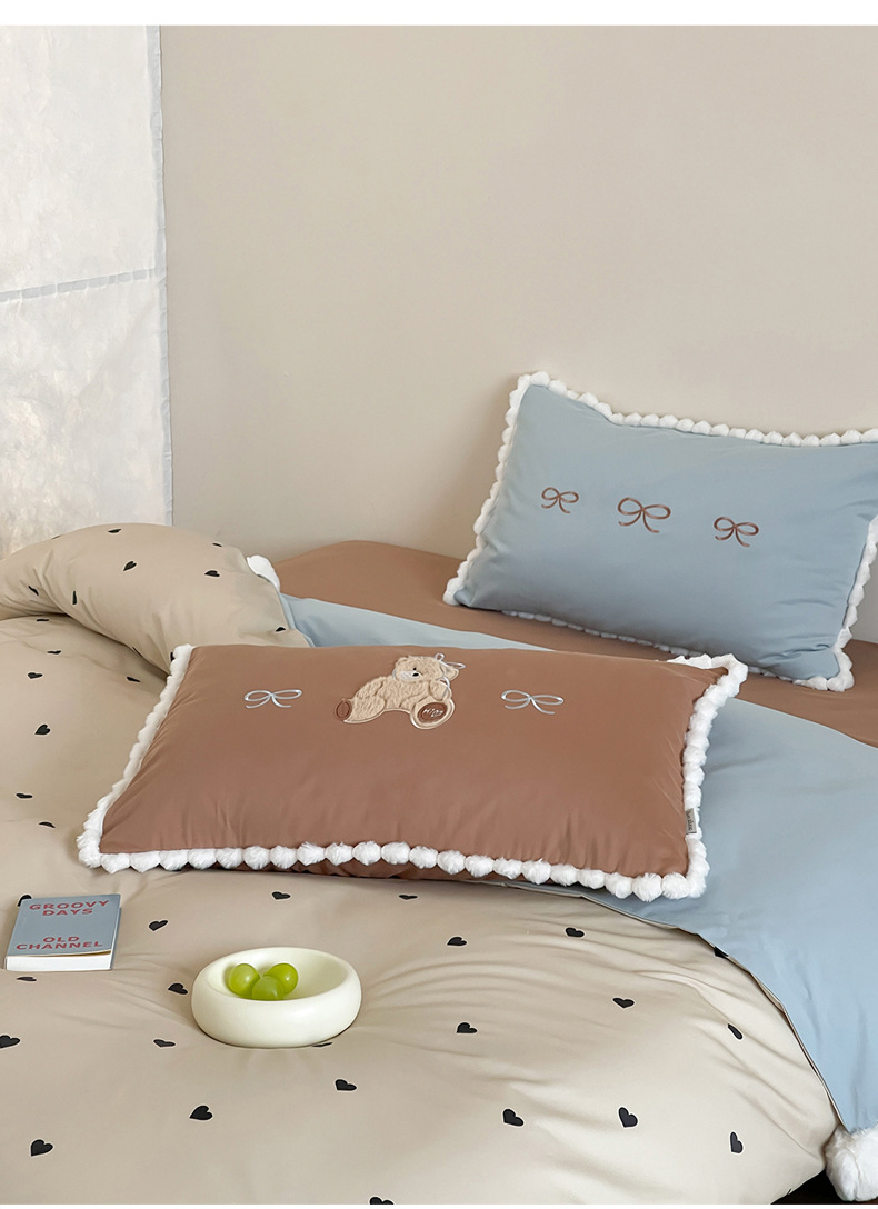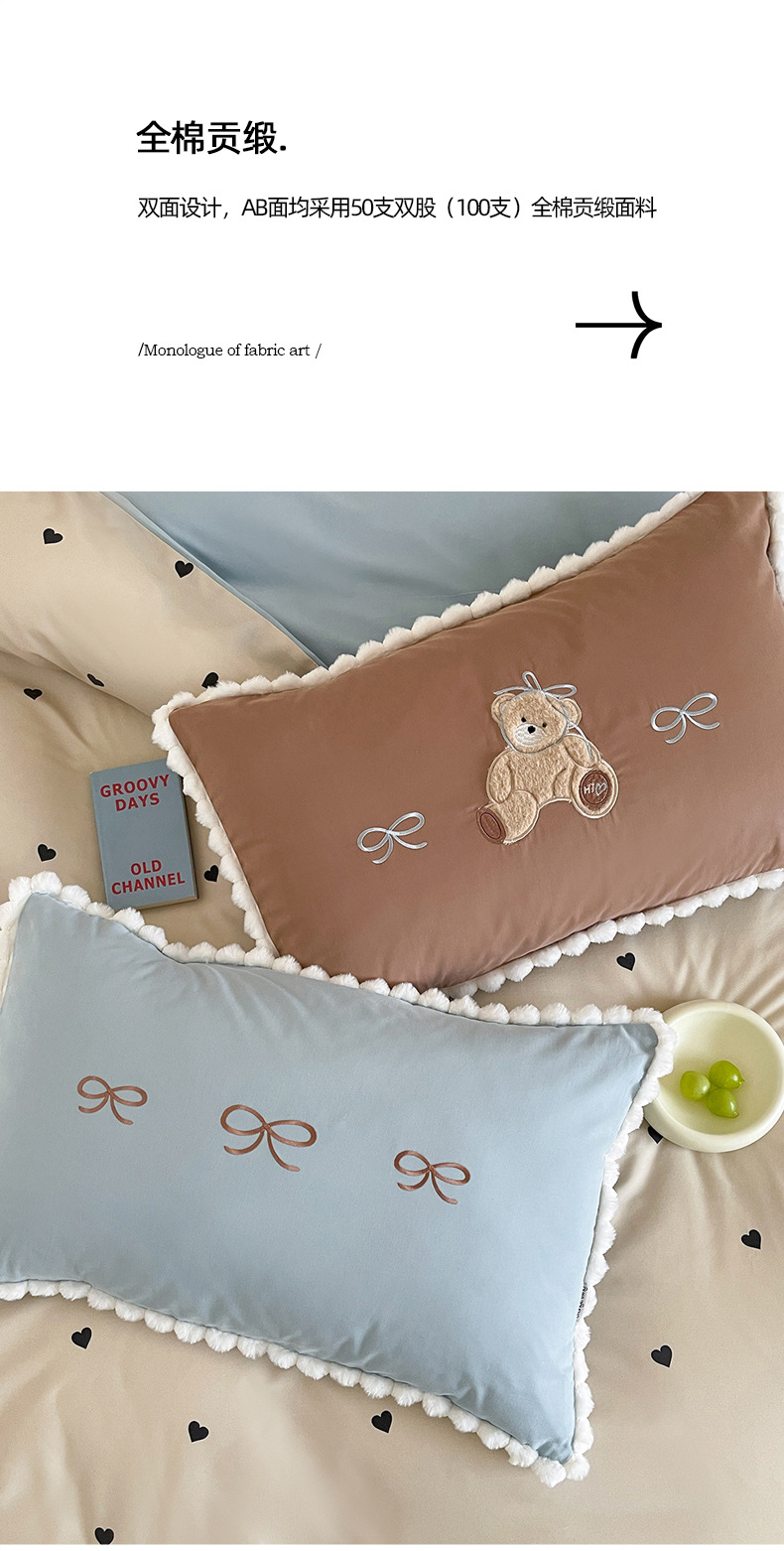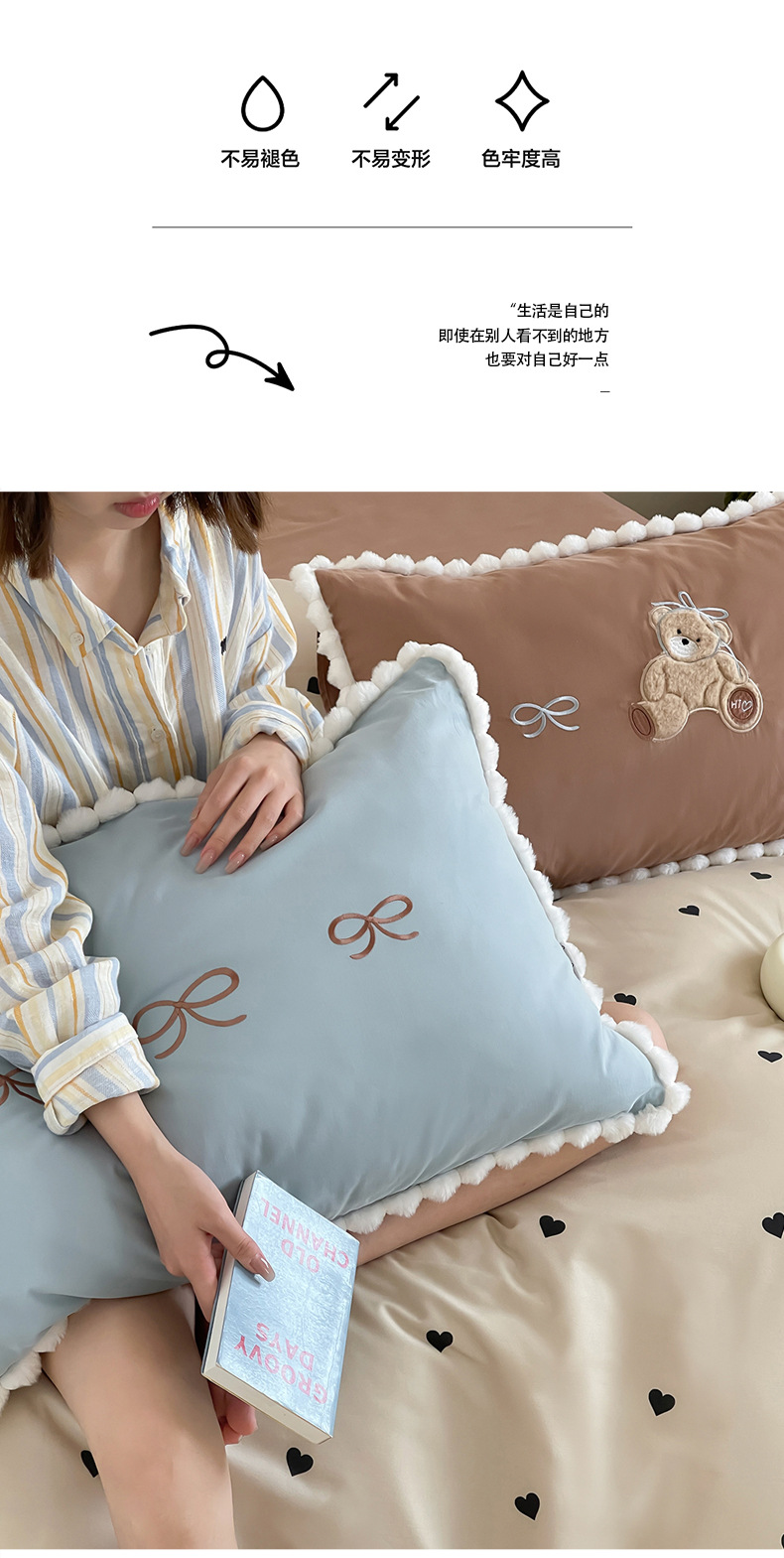 Ins Han Feng 100 pts 샌딩 코튼 4 피스 세트 두꺼운 그림 자수 인쇄 된 소녀의 심장 퀼트 커버 침구 클래스 A스토어 가기