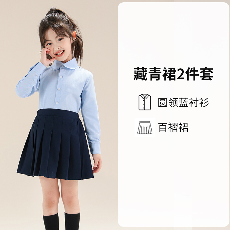 어린이 대학 스타일 주름 치마 세트 소녀의 봄과 가을 긴 소매 블루 셔츠 초등학교 소녀의 공연 원피스