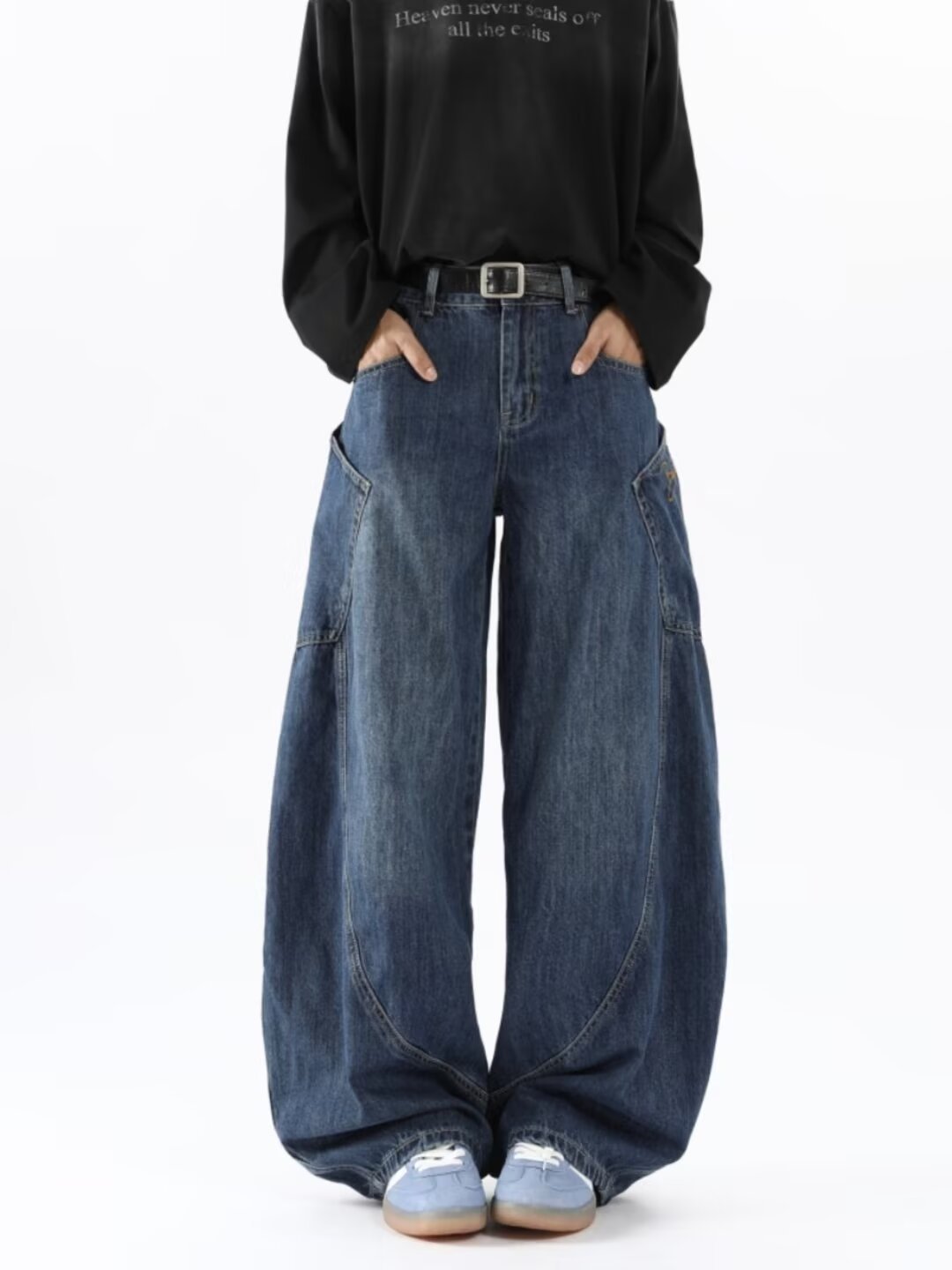 블루 마체 테 청바지 남자 가을 새로운 느슨한 넓은 다리 캐주얼 패션 트렌드 올 매치 바지 긴 국경스토어 가기
