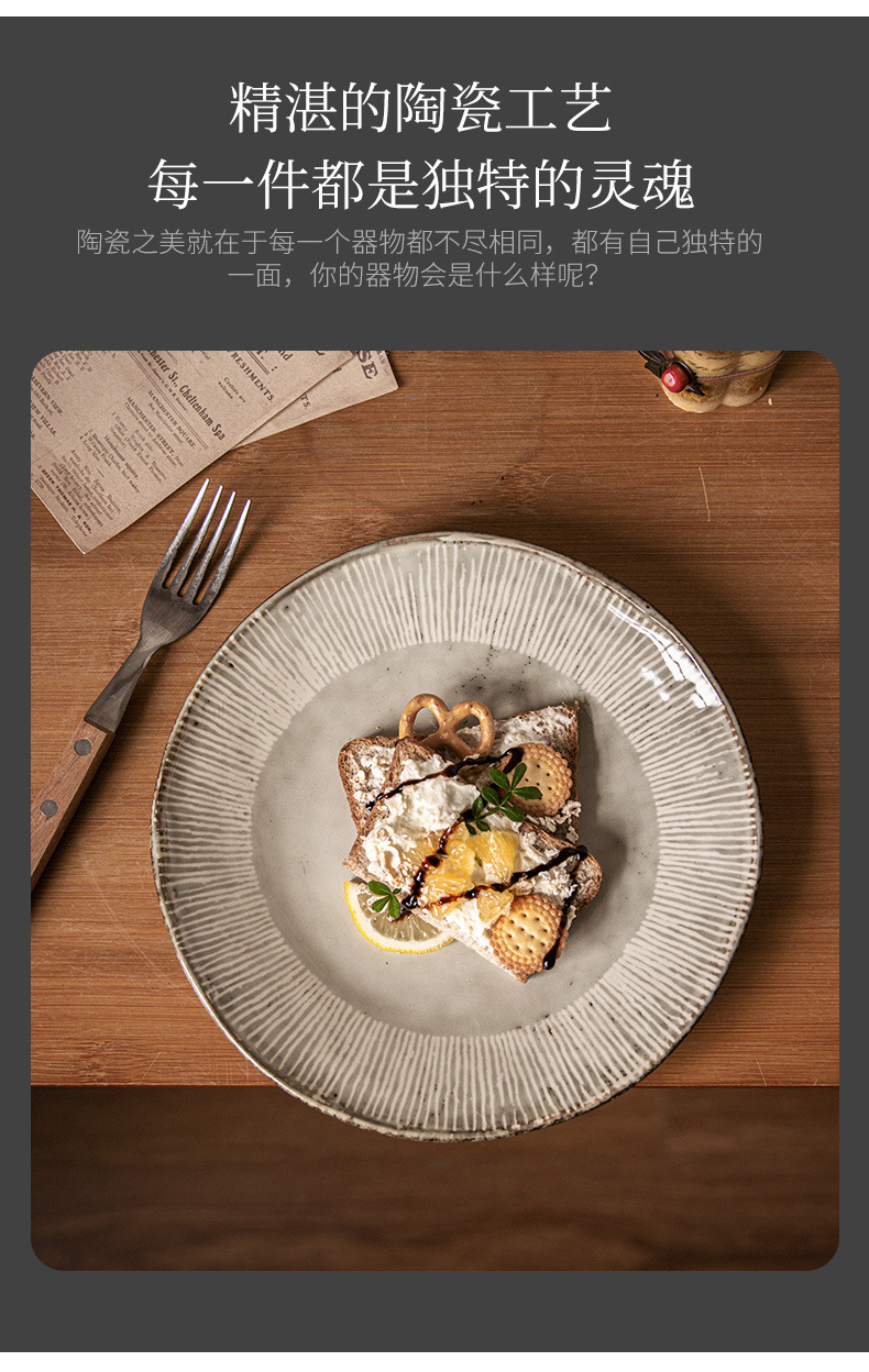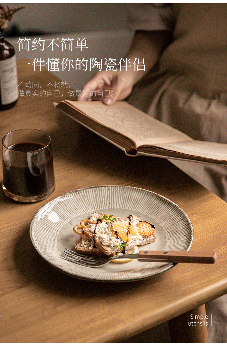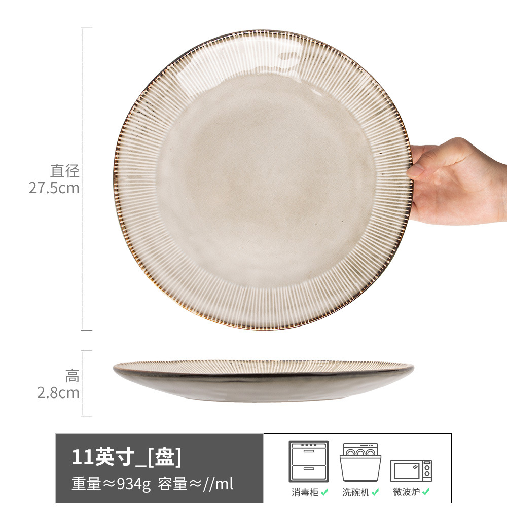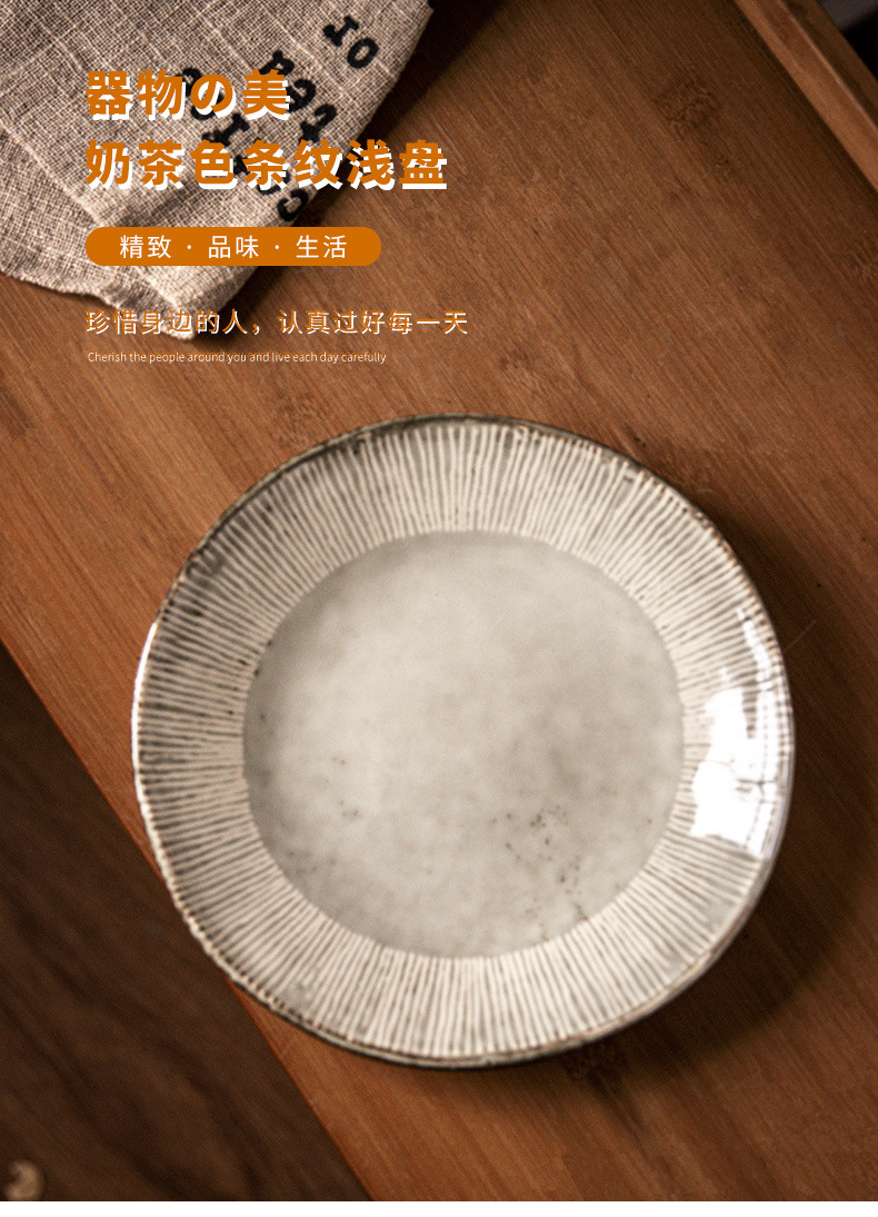 창조적 인 줄무늬 세라믹 얕은 접시 일본 스타일 복고풍 스타일 가정용 라운드 식기 플레이트 샐러드 Psta 플레이트