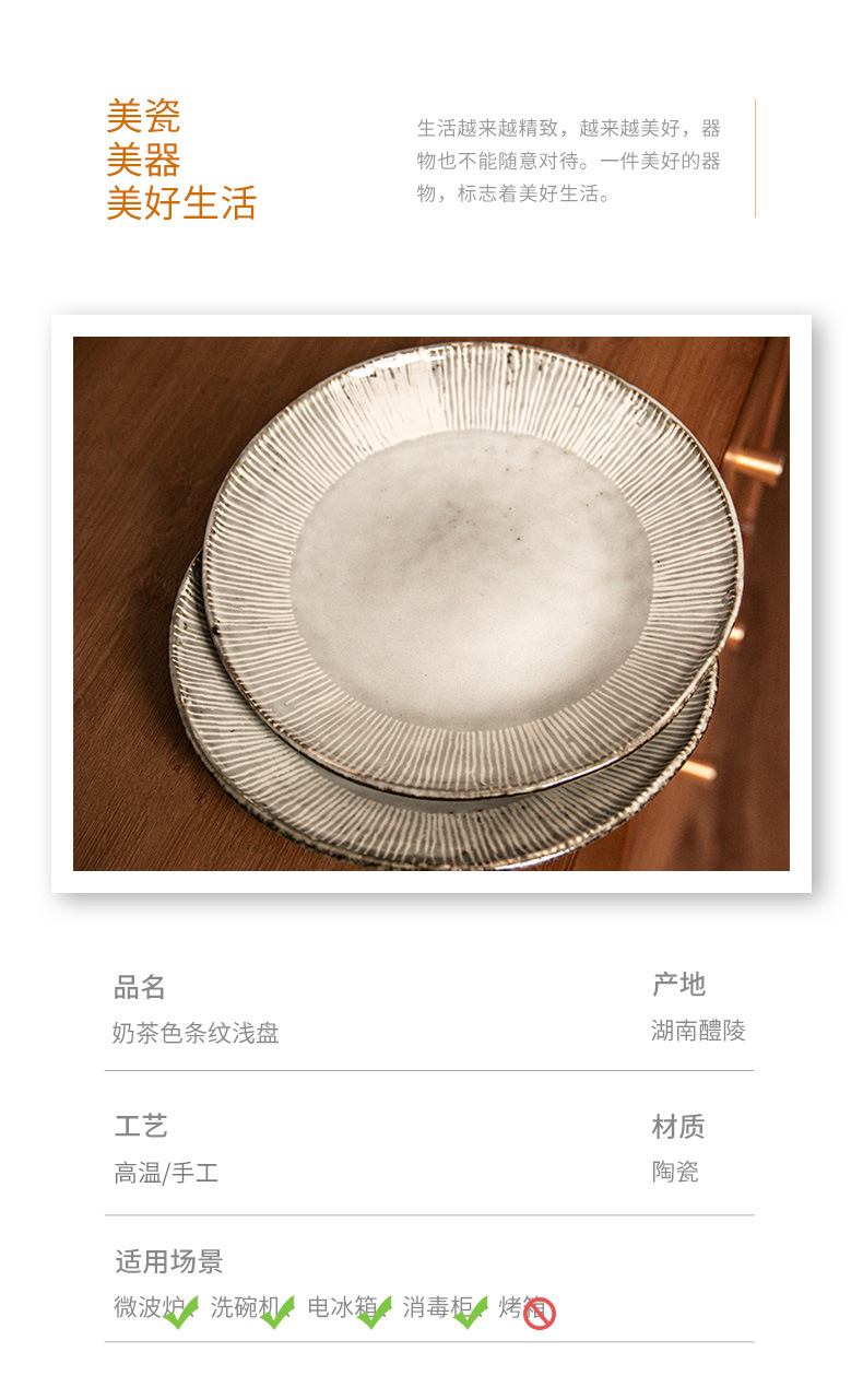 • 밀크티 컬러 스트라이프 얕은 접시 8.6inch (약간 불량)