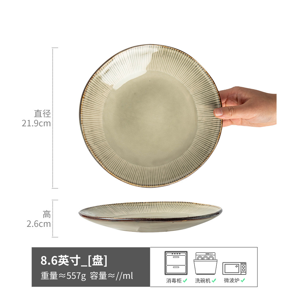 창조적 인 줄무늬 세라믹 얕은 접시 일본 스타일 복고풍 스타일 가정용 라운드 식기 플레이트 샐러드 Psta 플레이트스토어 가기