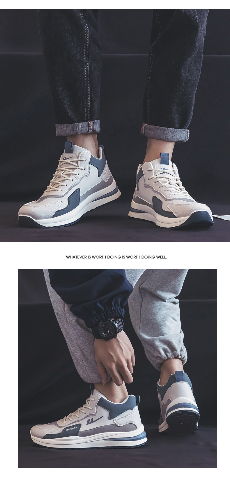 • 블랙 앤 그레이 가죽 미드탑 가을, 겨울 스타일